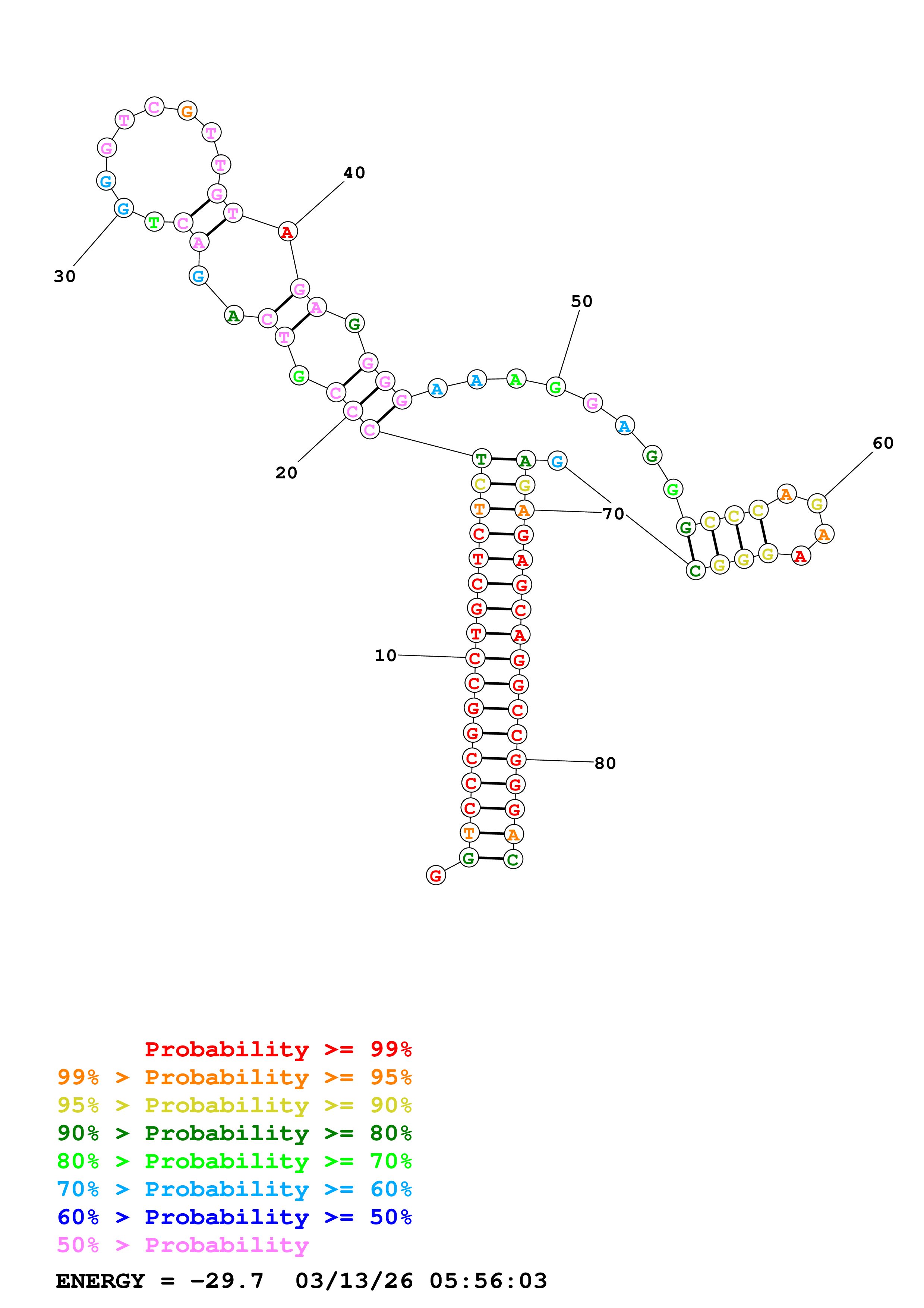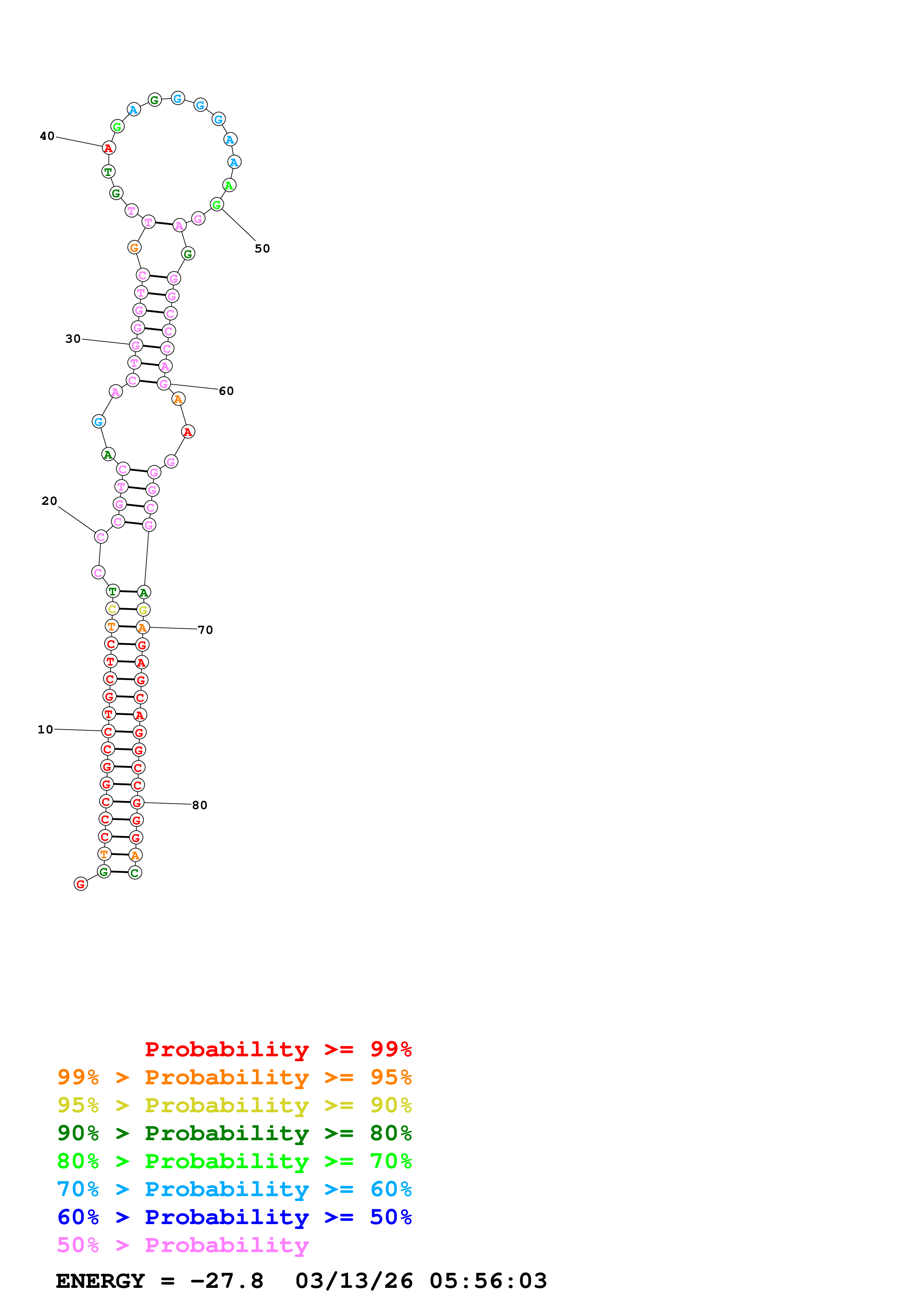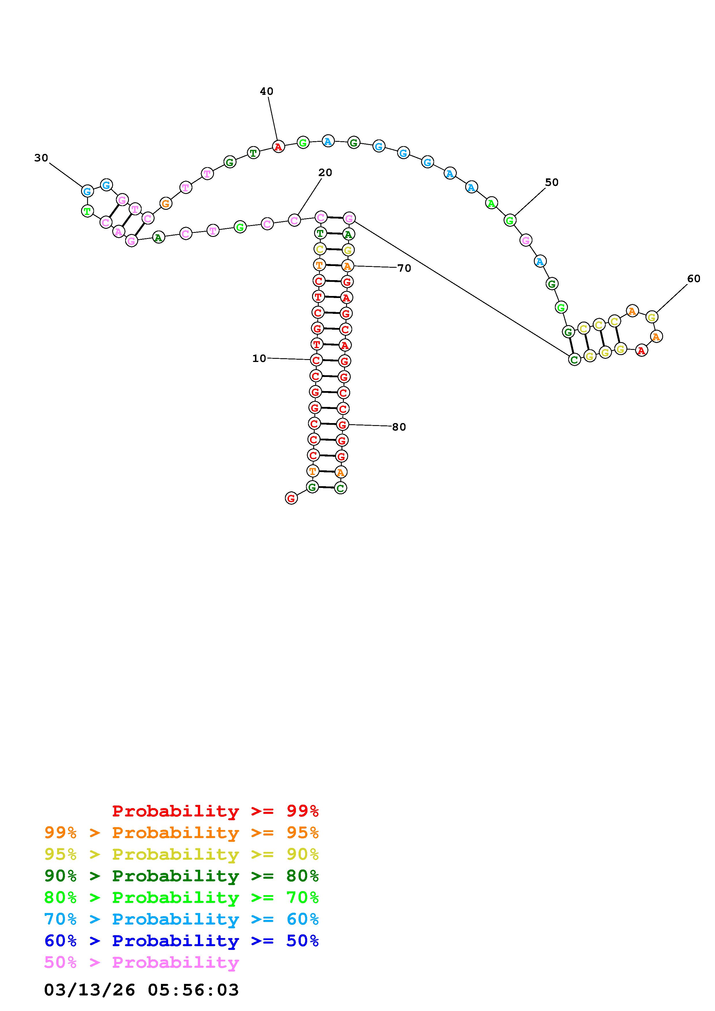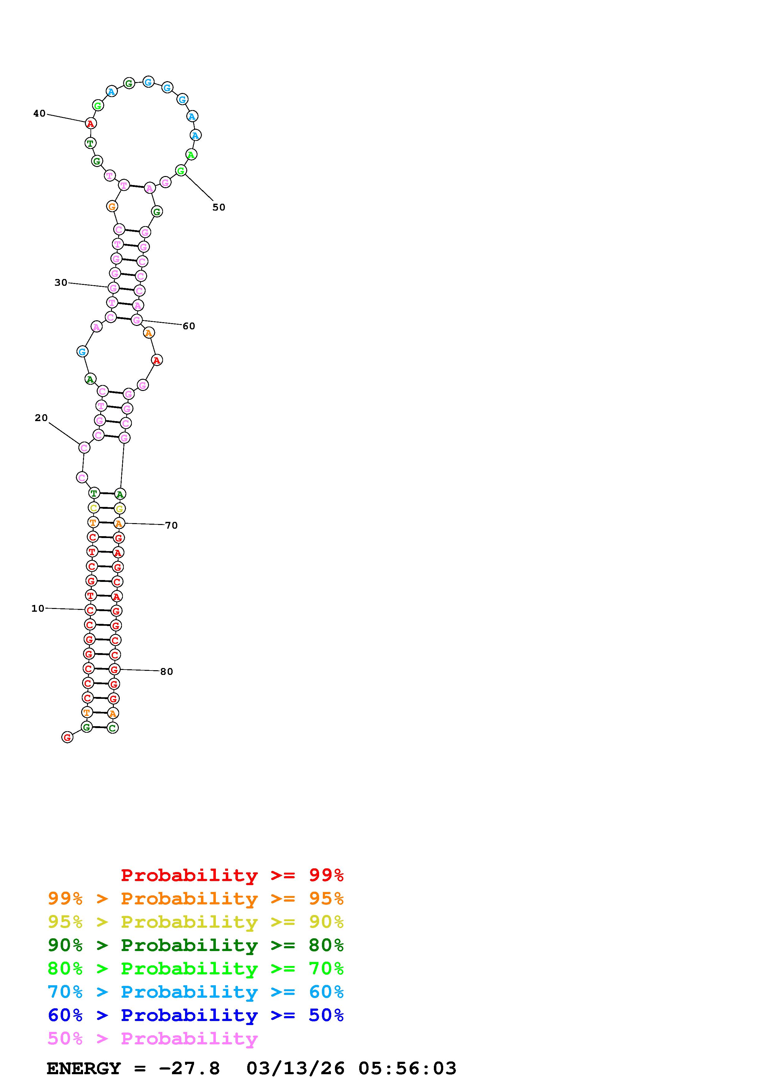 Fold Predict1.fasta Fold.ct --DNA --loop 30 --maximum 20 --percent 10 --temperature 310.15 --window 3