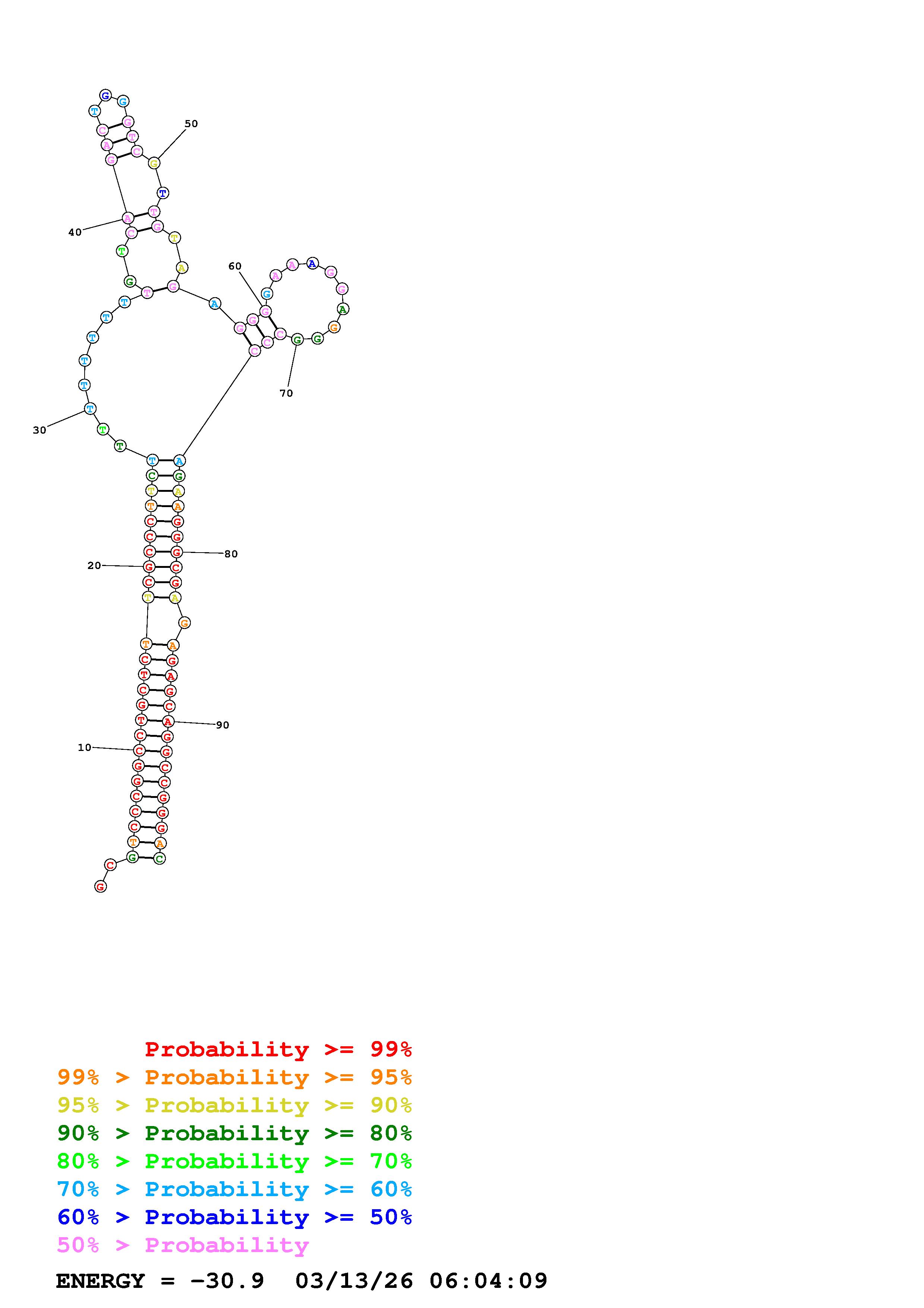 Fold Predict1.fasta Fold.ct --DNA --loop 30 --maximum 20 --percent 10 --temperature 310.15 --window 3