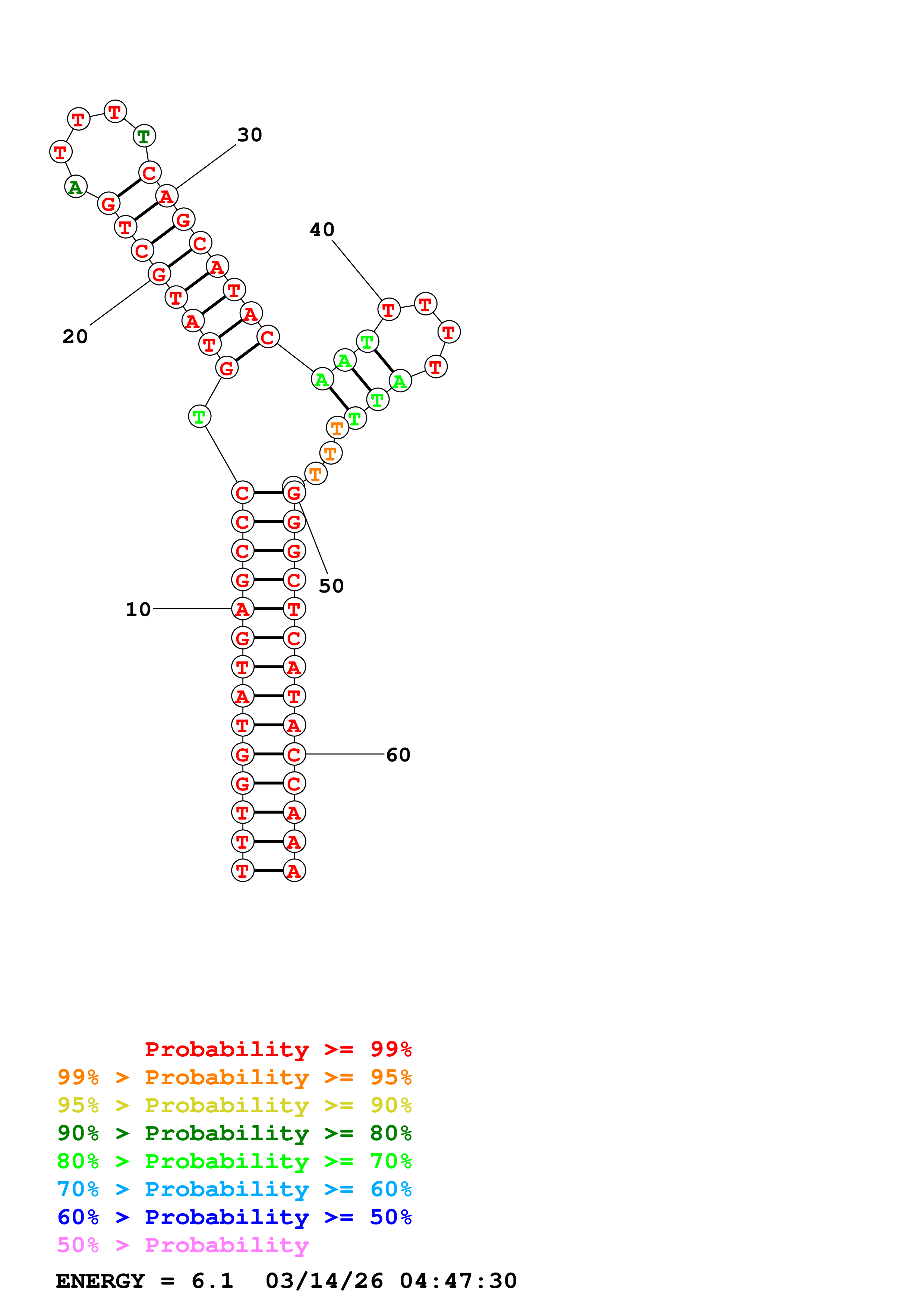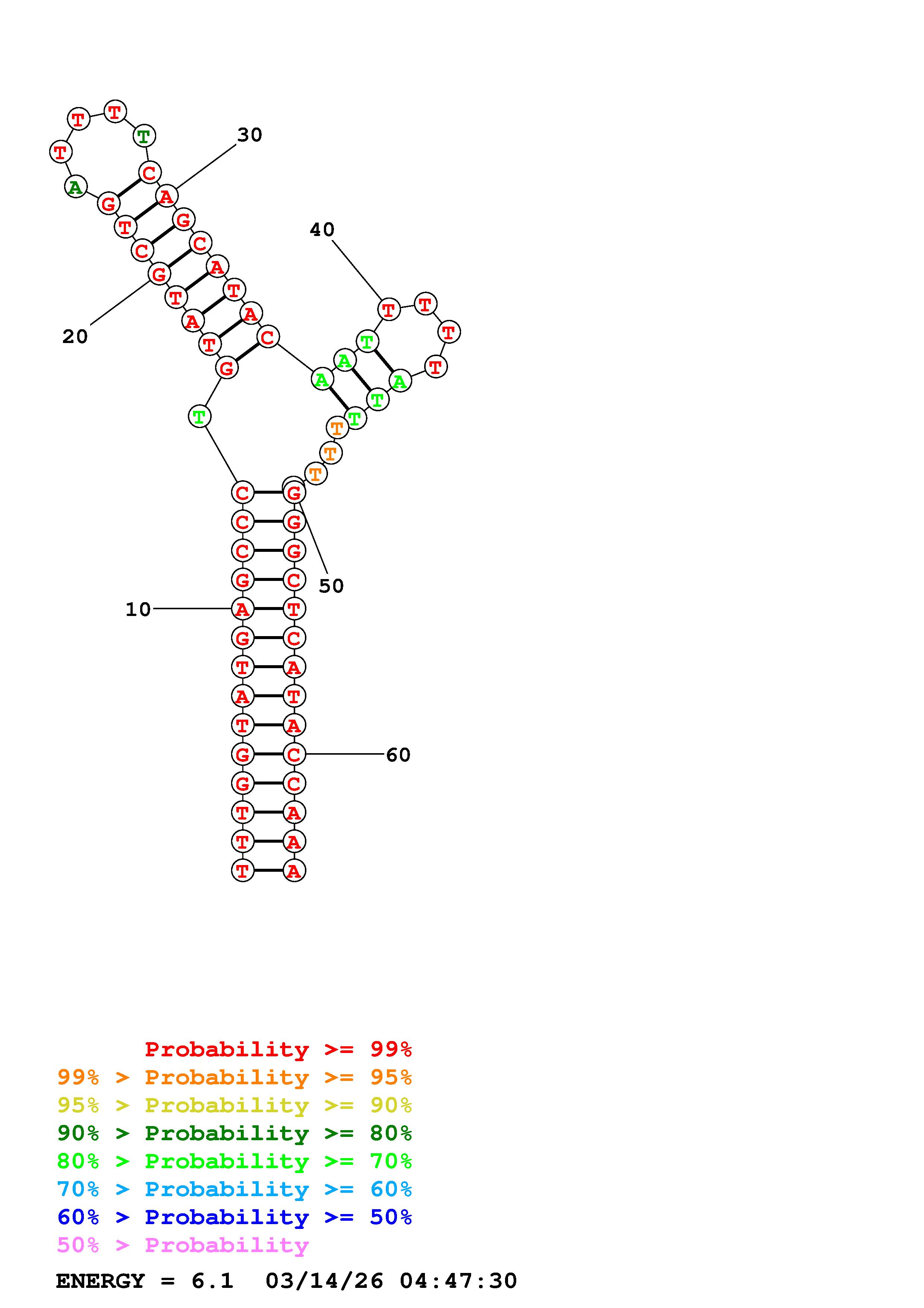 Fold Predict1.fasta Fold.ct --DNA --loop 30 --maximum 20 --percent 10 --temperature 230 --window 3