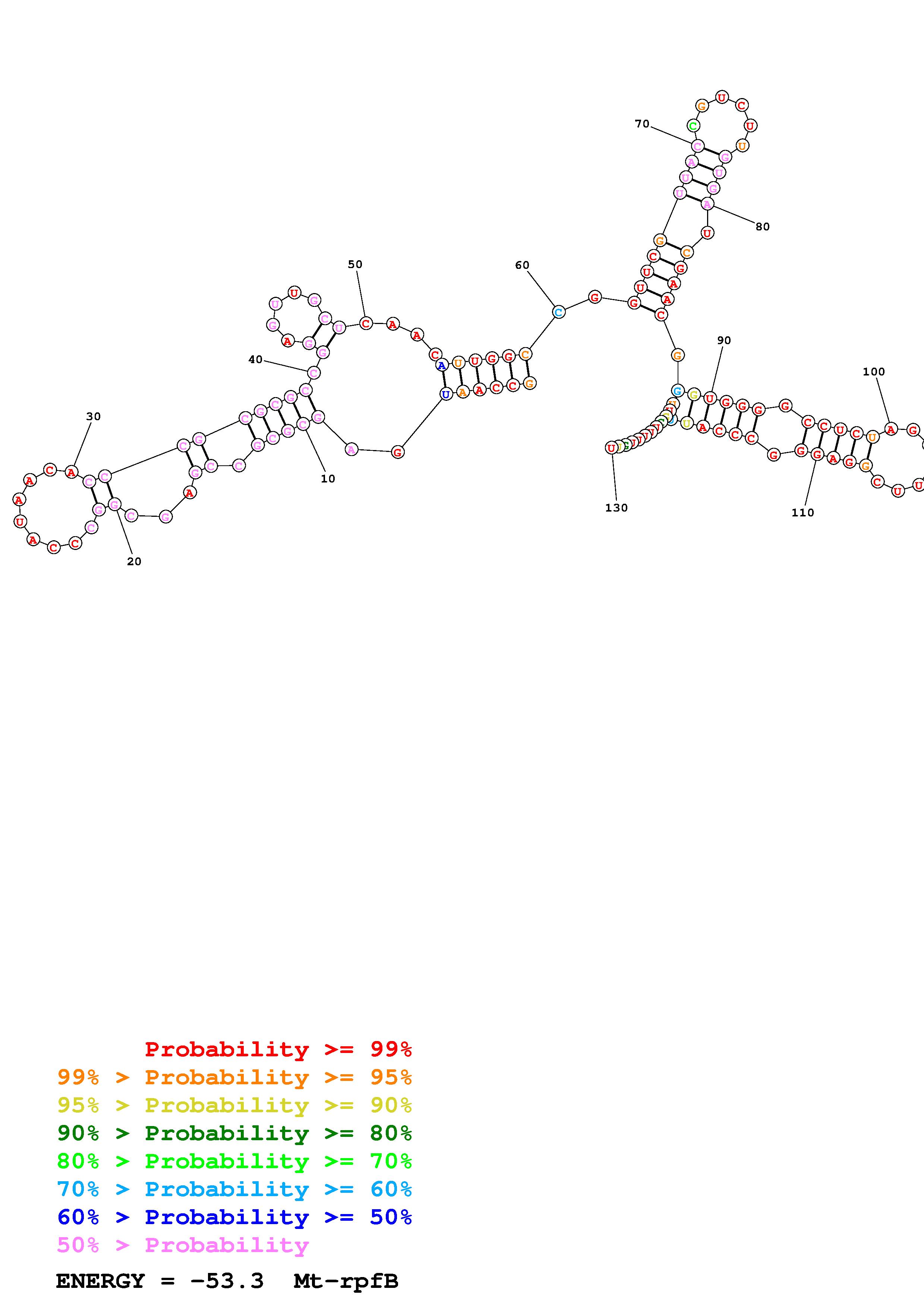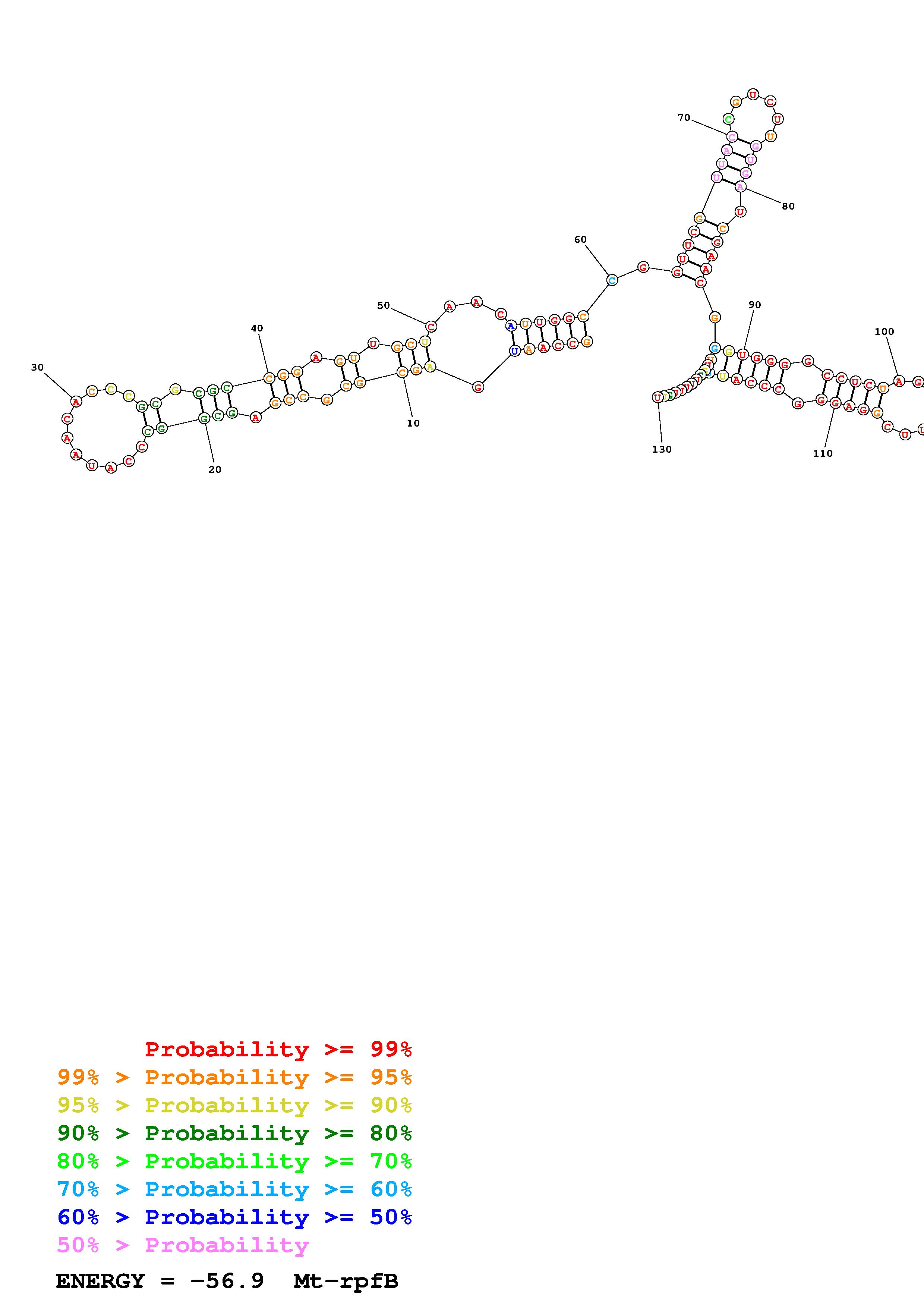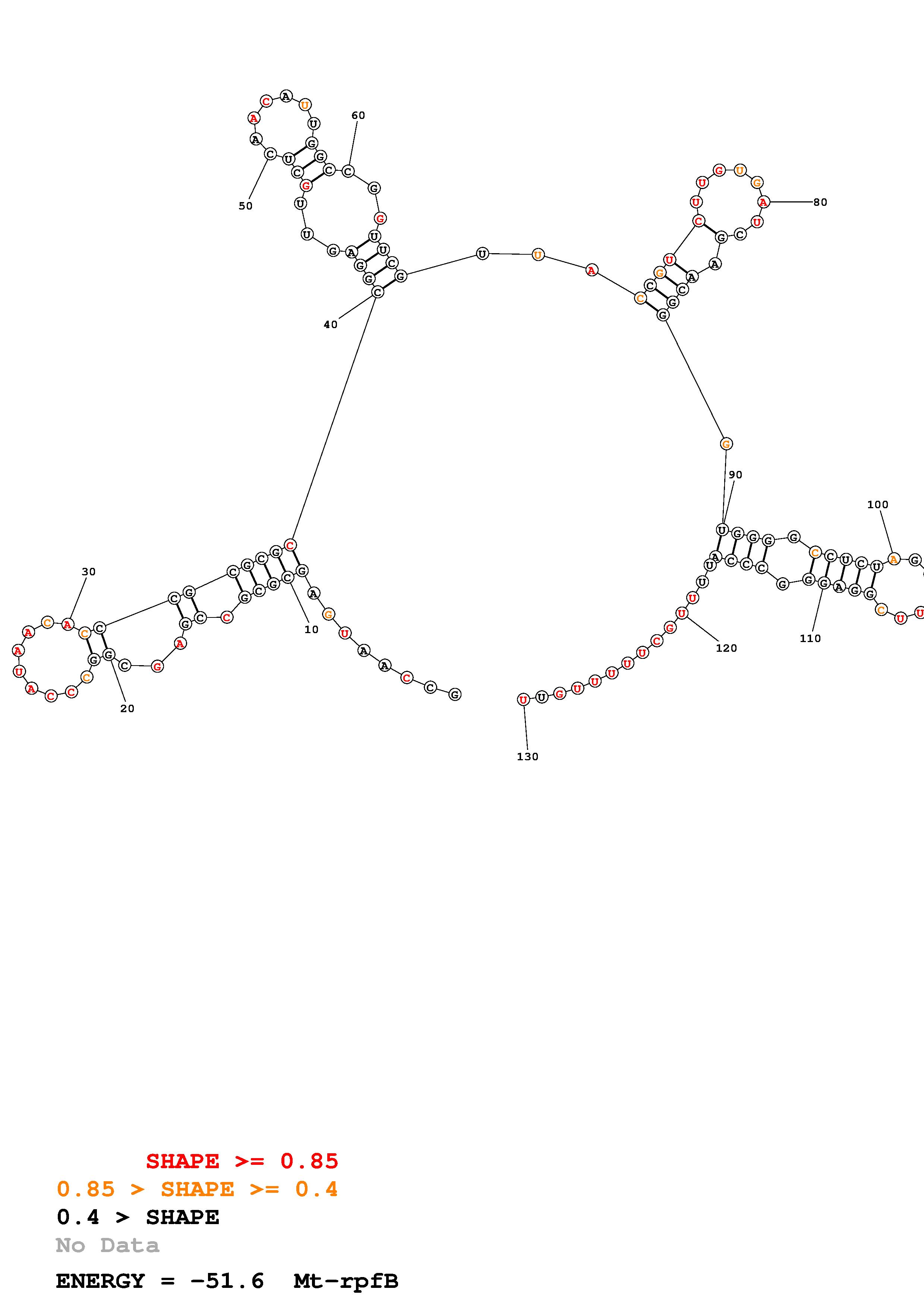 Fold Mt_rpfB_noLinker.fa Fold.ct --constraint for_P1_7_H37Rv_rpfB_Ado_constraints_2024_05_21_copy.txt --loop 30 --maximum 20 --percent 10 --SHAPE Mt_rpfB.RNAonly.len130.shape --SHAPEintercept -0.3 --SHAPEslope 1.1 --temperature 310.15 --window 3