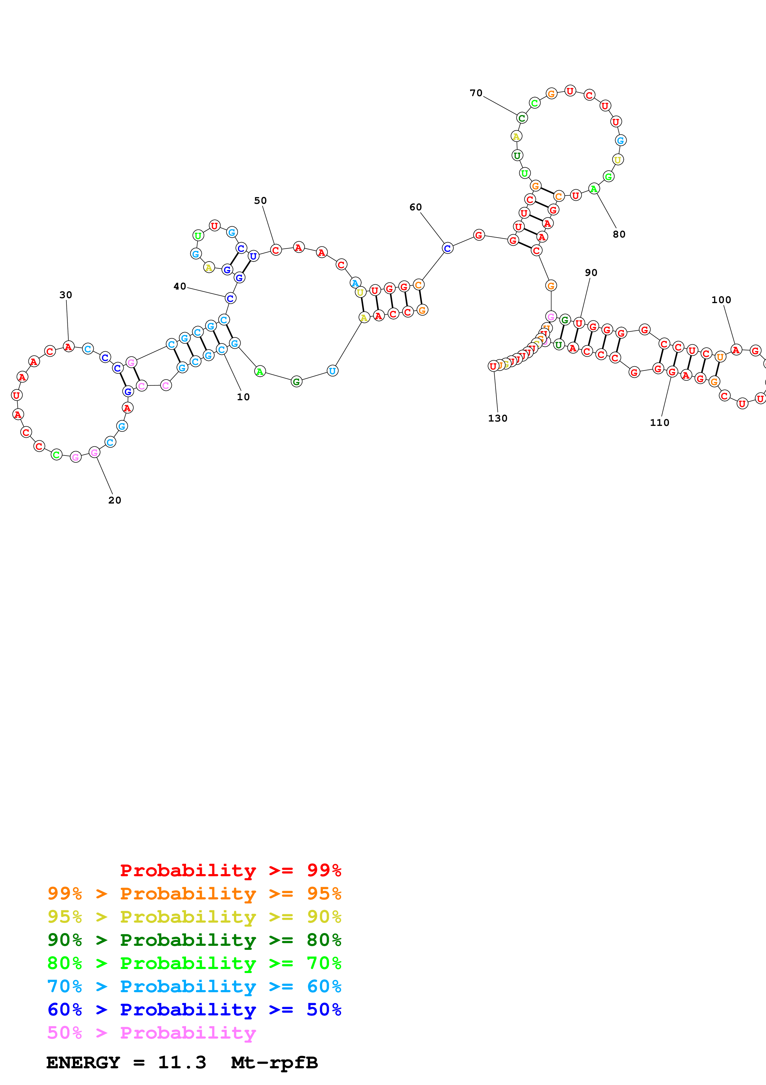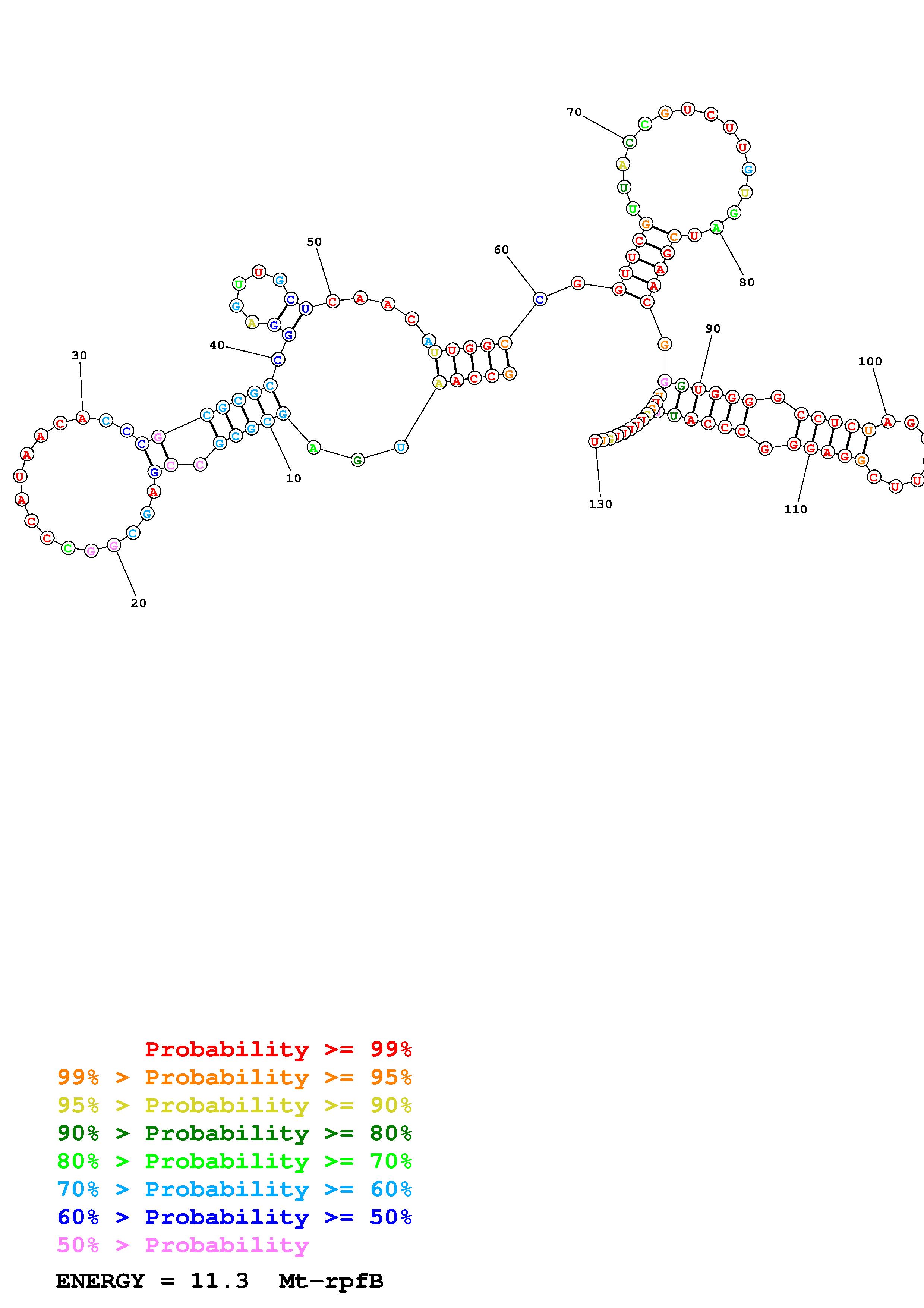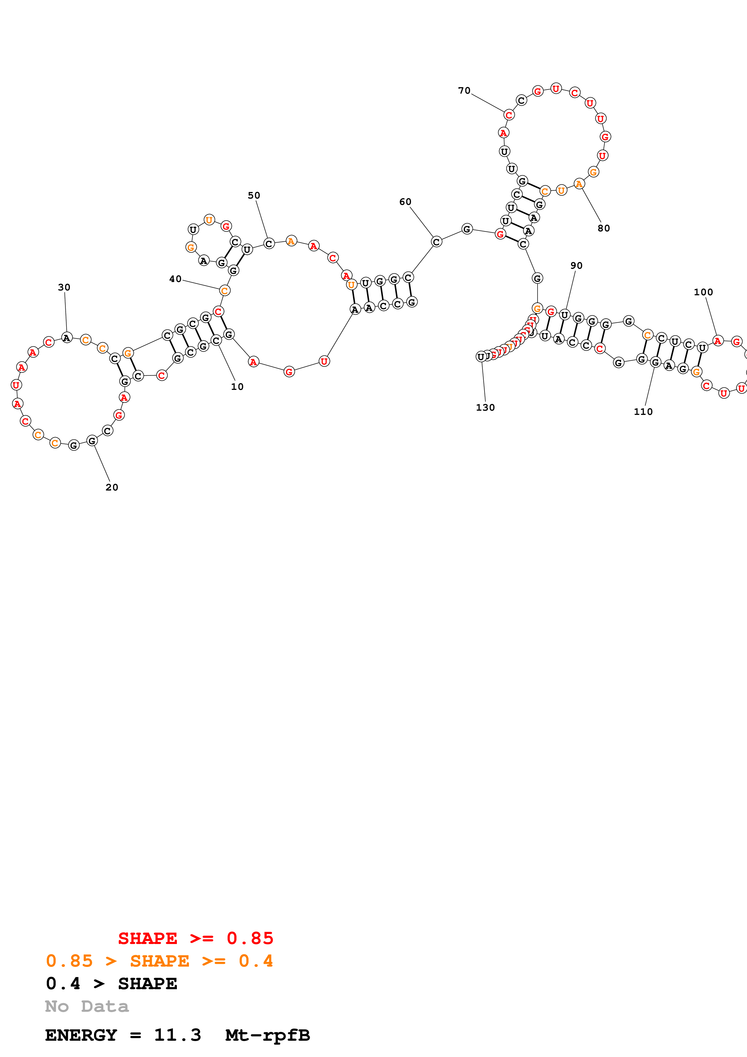 Fold Mt_rpfB_noLinker.fa Fold.ct --constraint for_P1_7_H37Rv_rpfB_Ado_constraints_2024_05_21_copy.txt --loop 30 --maximum 20 --percent 10 --SHAPE Mt_rpfB.RNAonly.len130.shape --SHAPEintercept -0.3 --SHAPEslope 1.1 --temperature 310.15 --window 3
