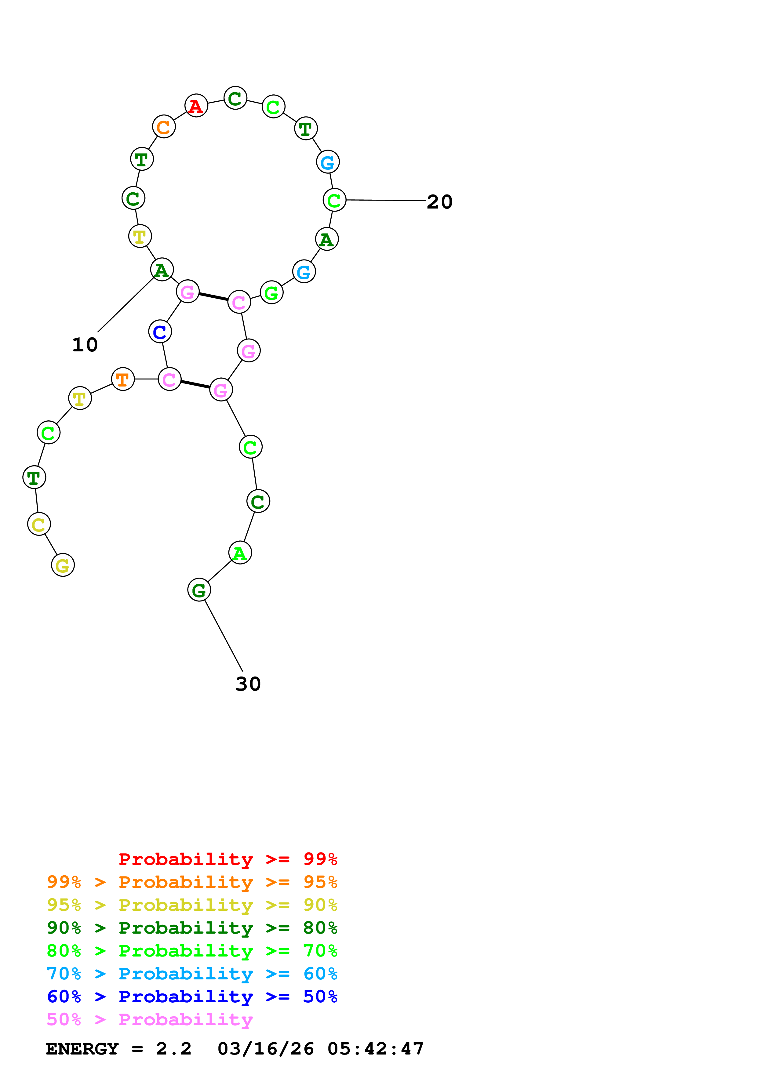 Fold Predict1.fasta Fold.ct --DNA --loop 30 --maximum 20 --percent 10 --temperature 310.15 --window 3