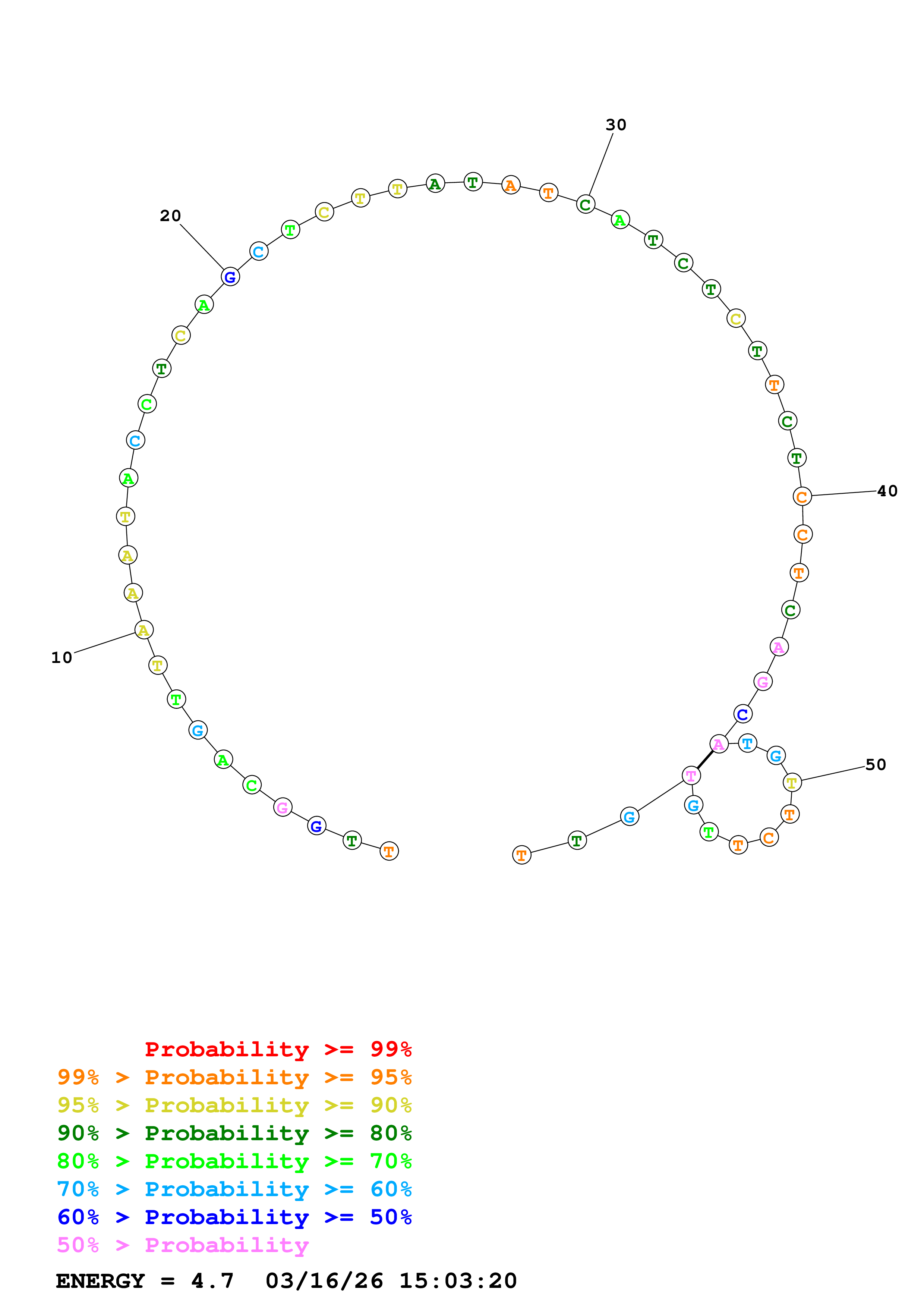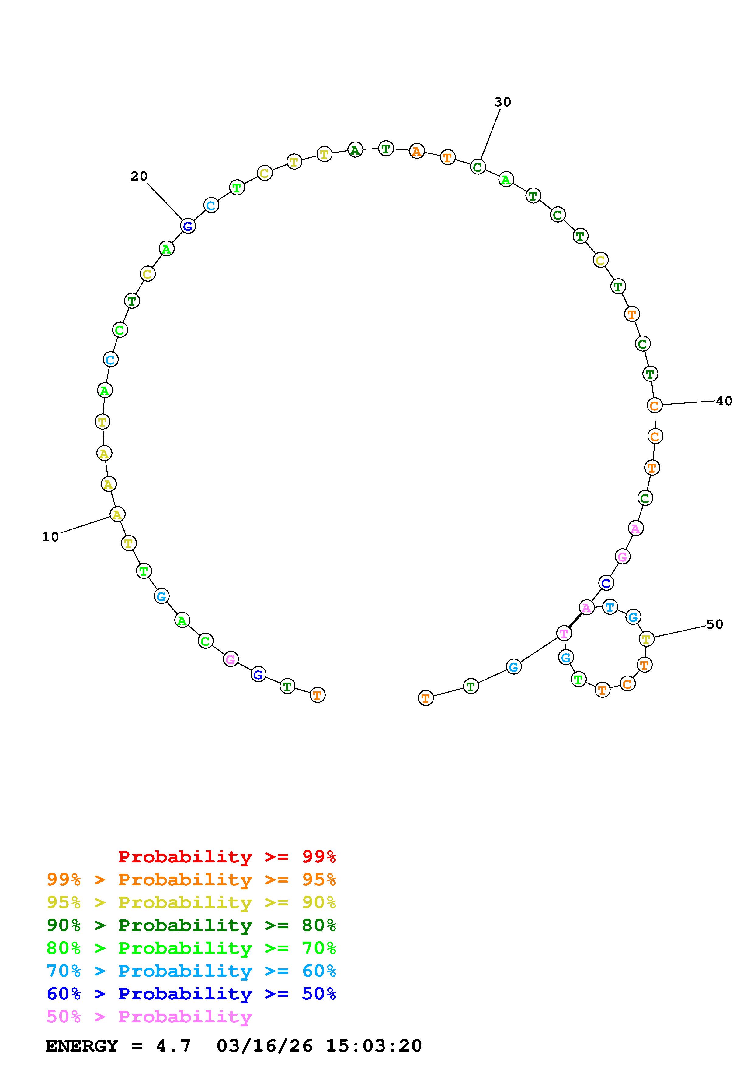 Fold Predict1.fasta Fold.ct --DNA --loop 30 --maximum 20 --percent 10 --temperature 310.15 --window 3