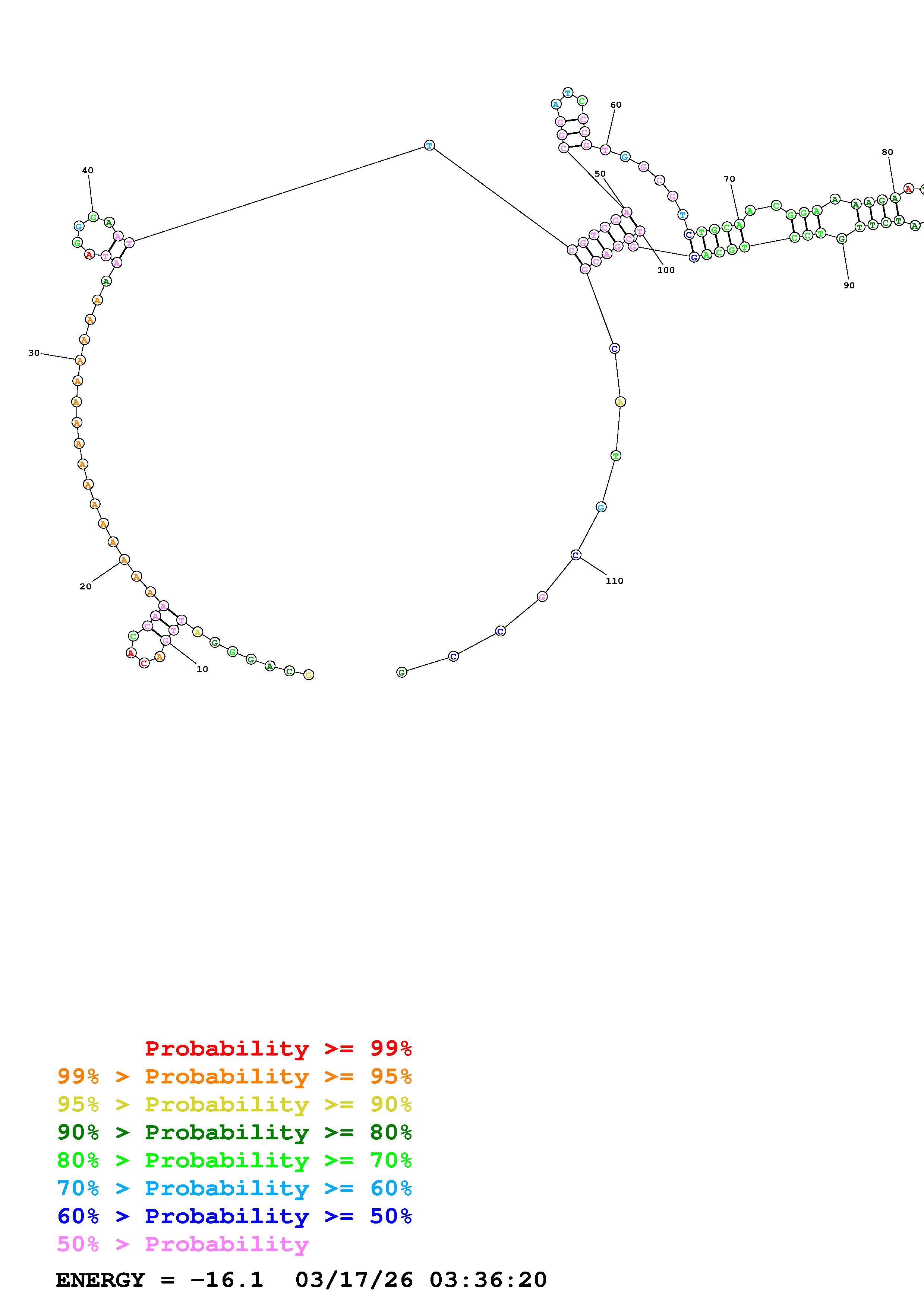 Fold Predict1.fasta Fold.ct --DNA --loop 30 --maximum 20 --percent 10 --temperature 310.15 --window 3