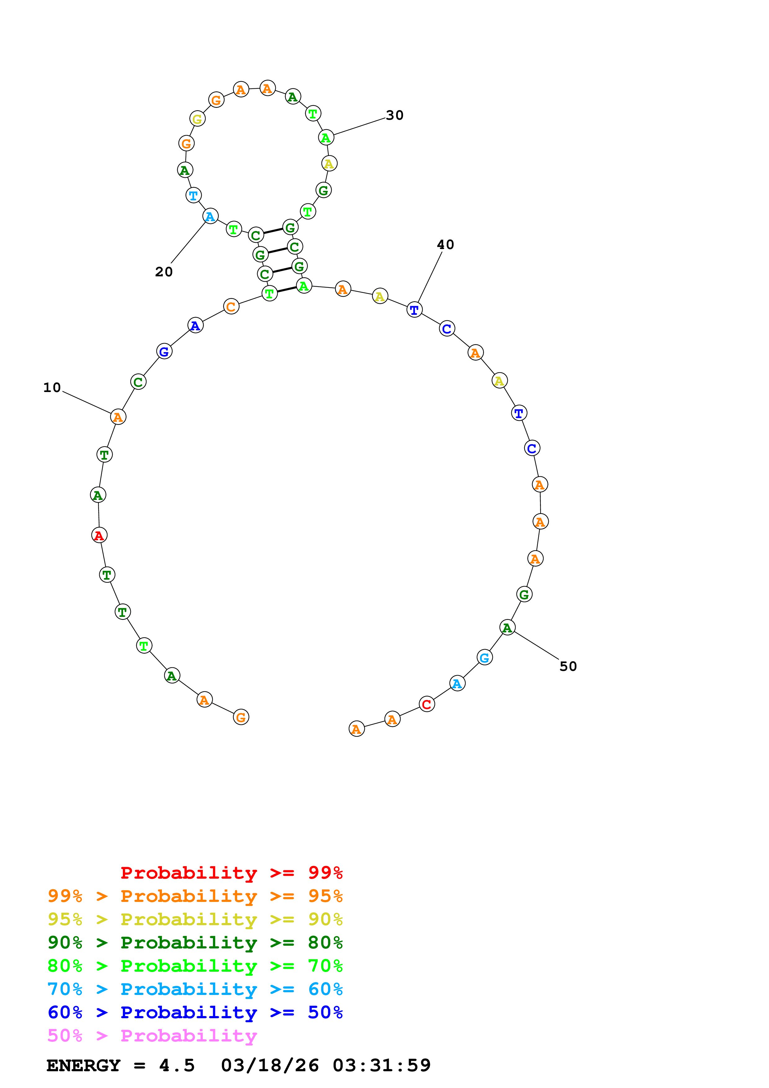 Fold Predict1.fasta Fold.ct --DNA --loop 30 --maximum 20 --percent 10 --temperature 314.15 --window 3