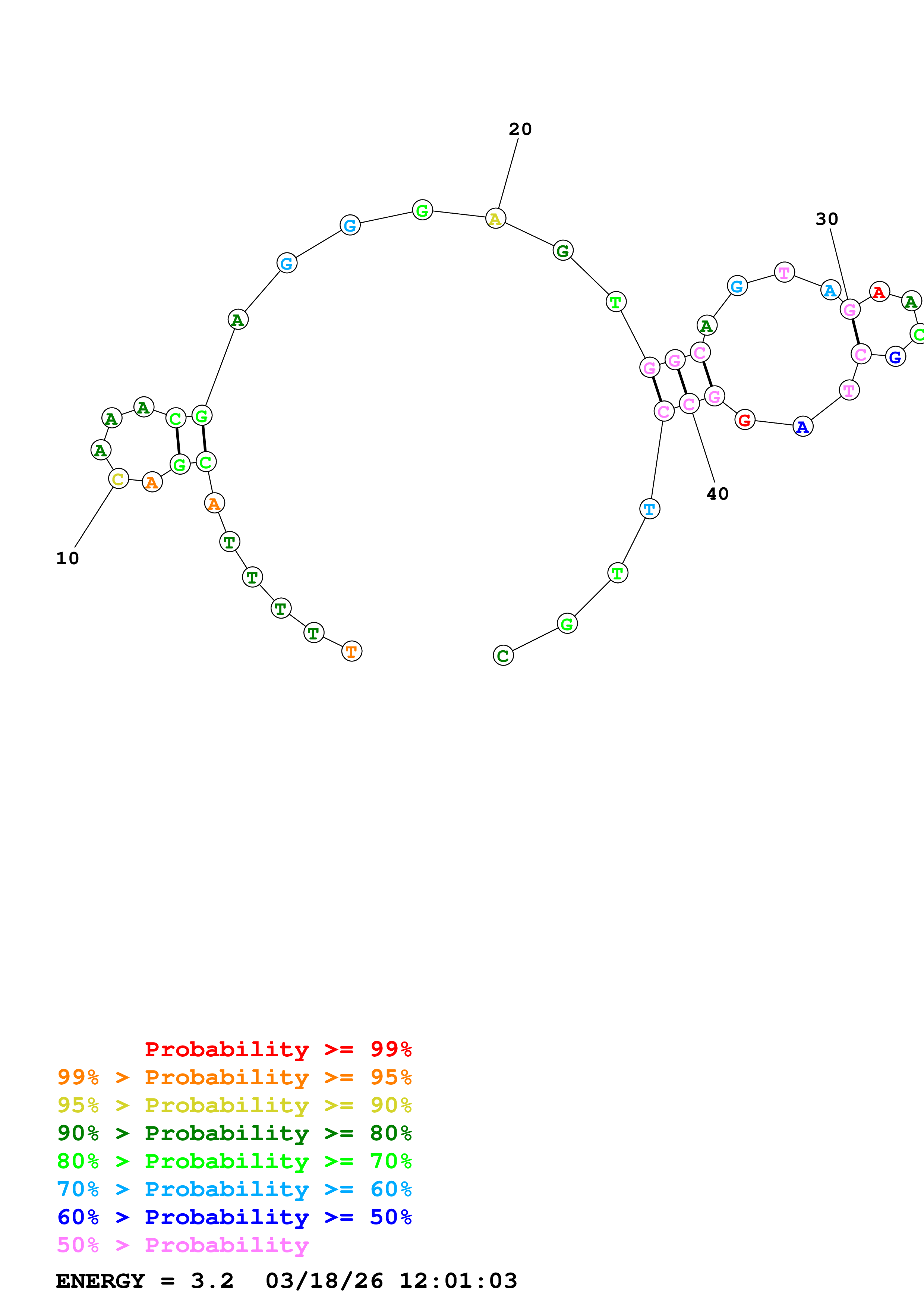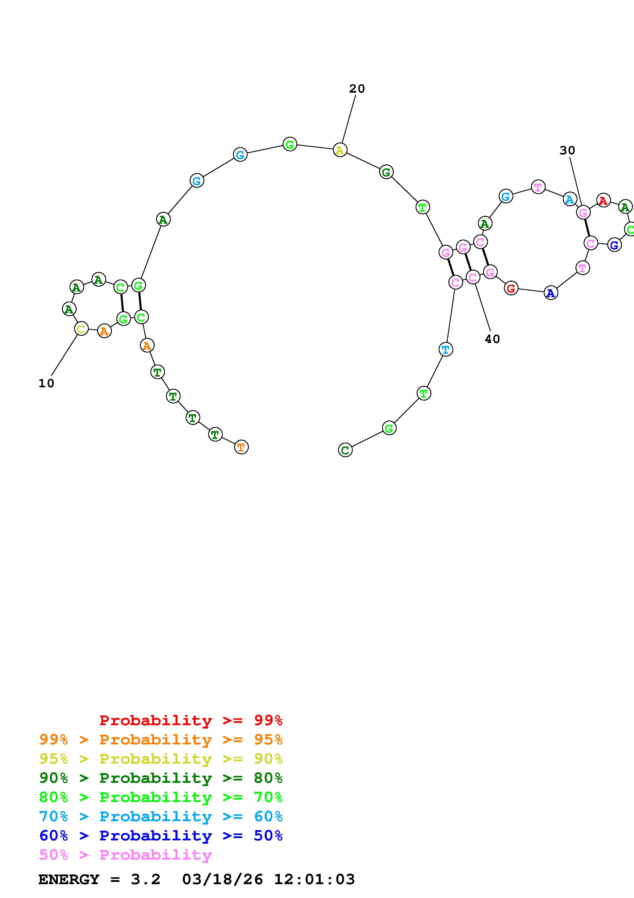 Fold Predict1.fasta Fold.ct --DNA --loop 30 --maximum 20 --percent 10 --temperature 298.15 --window 3