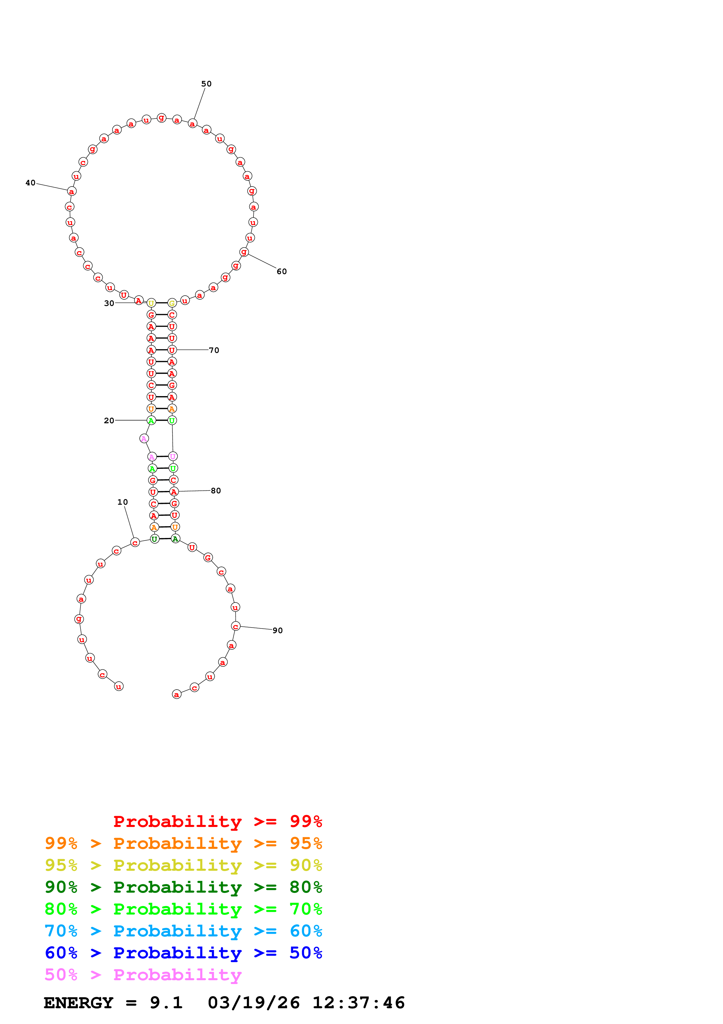 Fold Predict1.fasta Fold.ct --loop 100 --maximum 20 --percent 20 --temperature 310.15 --window 2