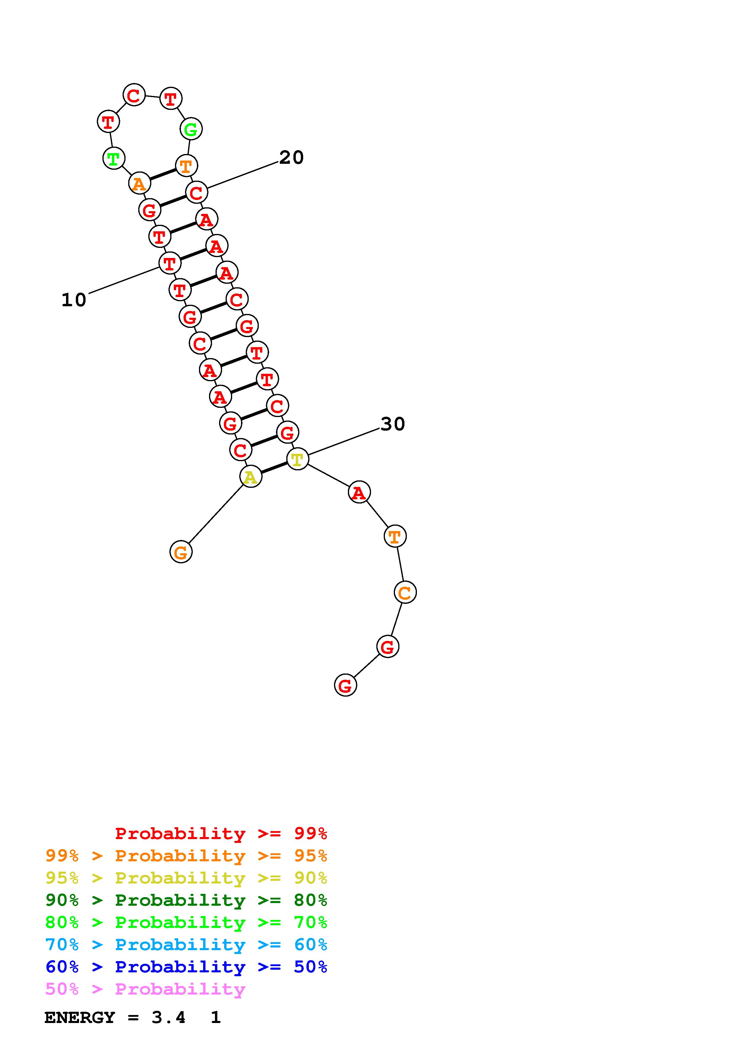 Fold Predict1.fasta Fold.ct --DNA --loop 30 --maximum 20 --percent 10 --temperature 297 --window 3