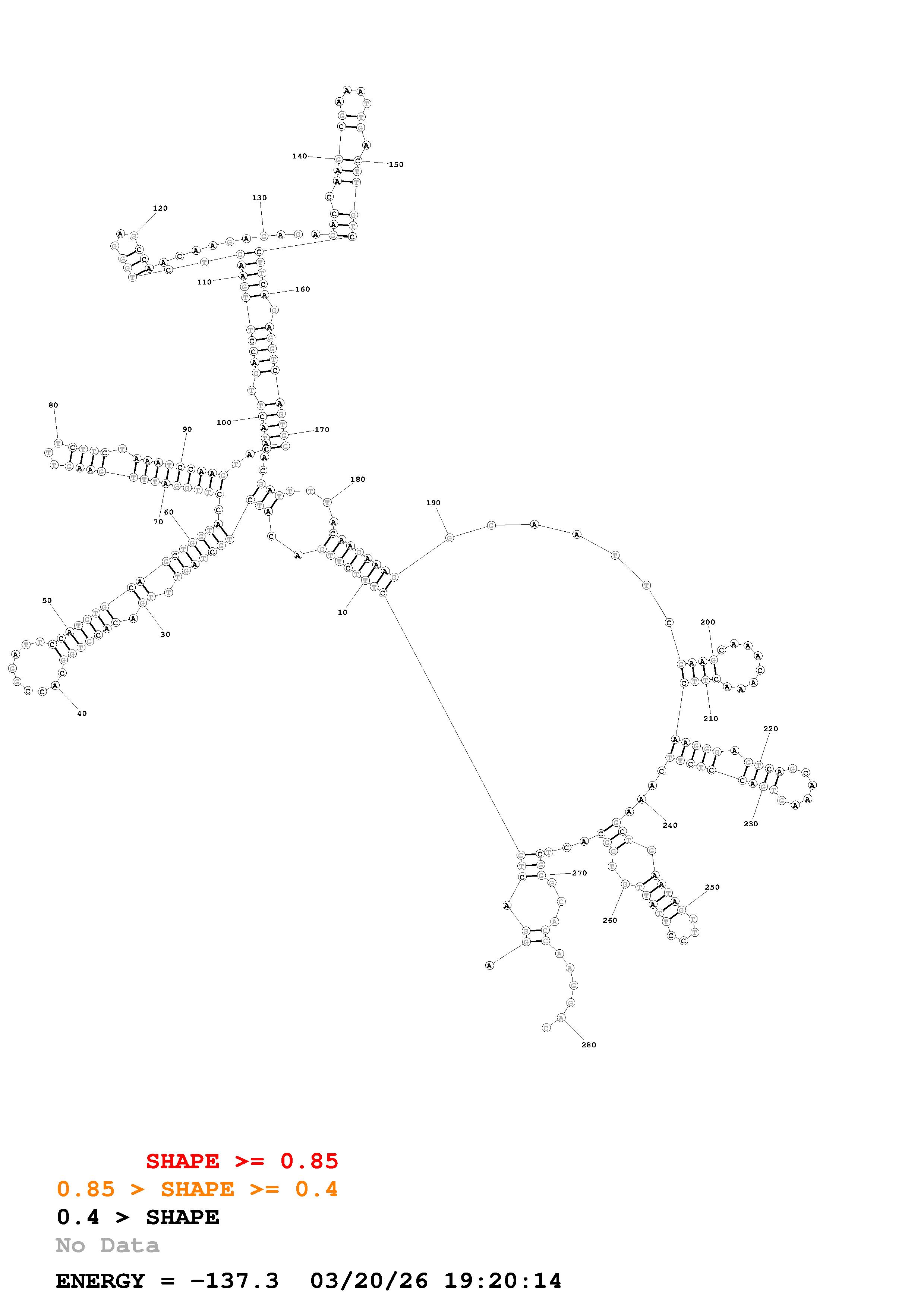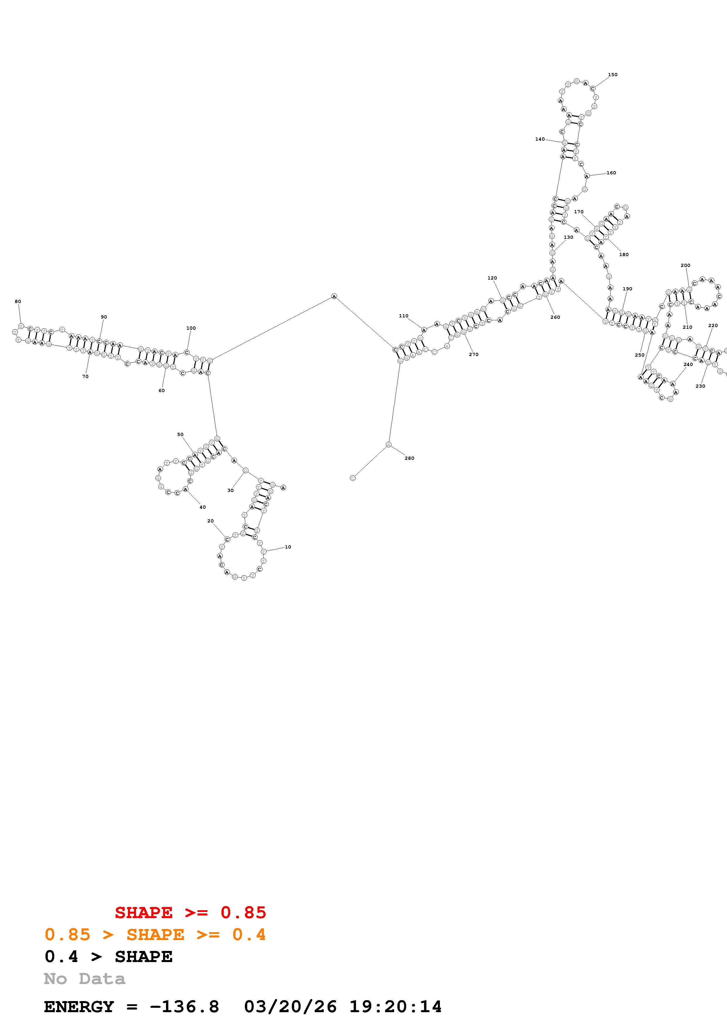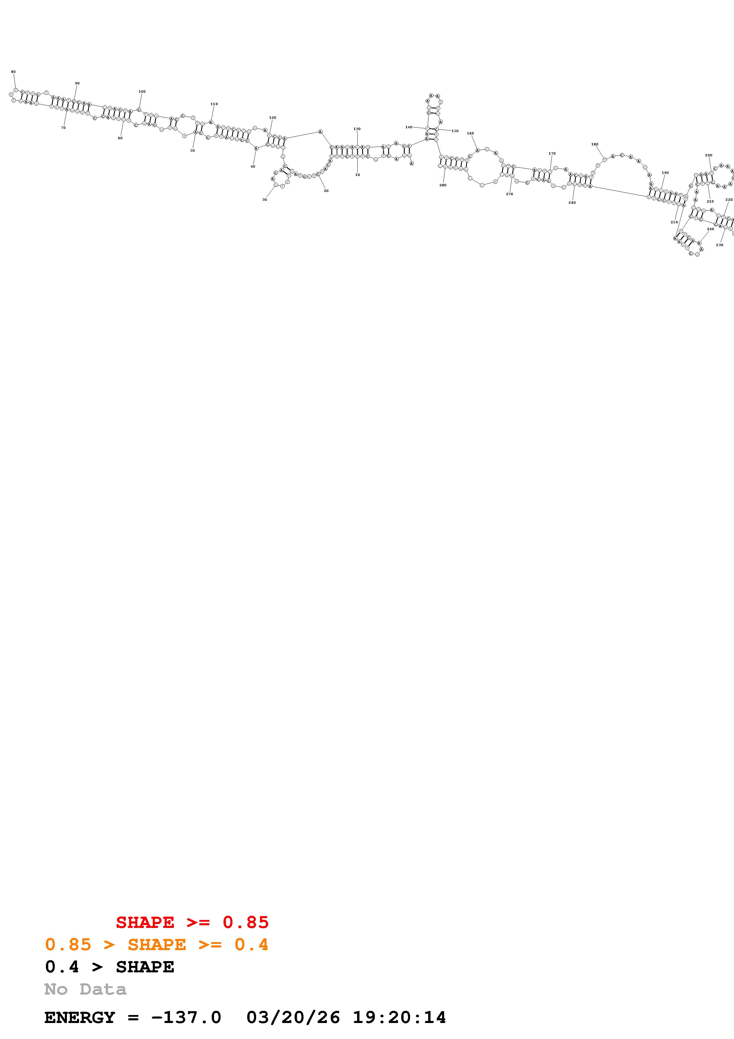 Fold Predict1.fasta Fold.ct --loop 30 --maximum 20 --percent 10 --SHAPE ENST00000370876.EndogCDS.dms --SHAPEintercept -0.6 --SHAPEslope 1.8 --temperature 310.15 --window 3
