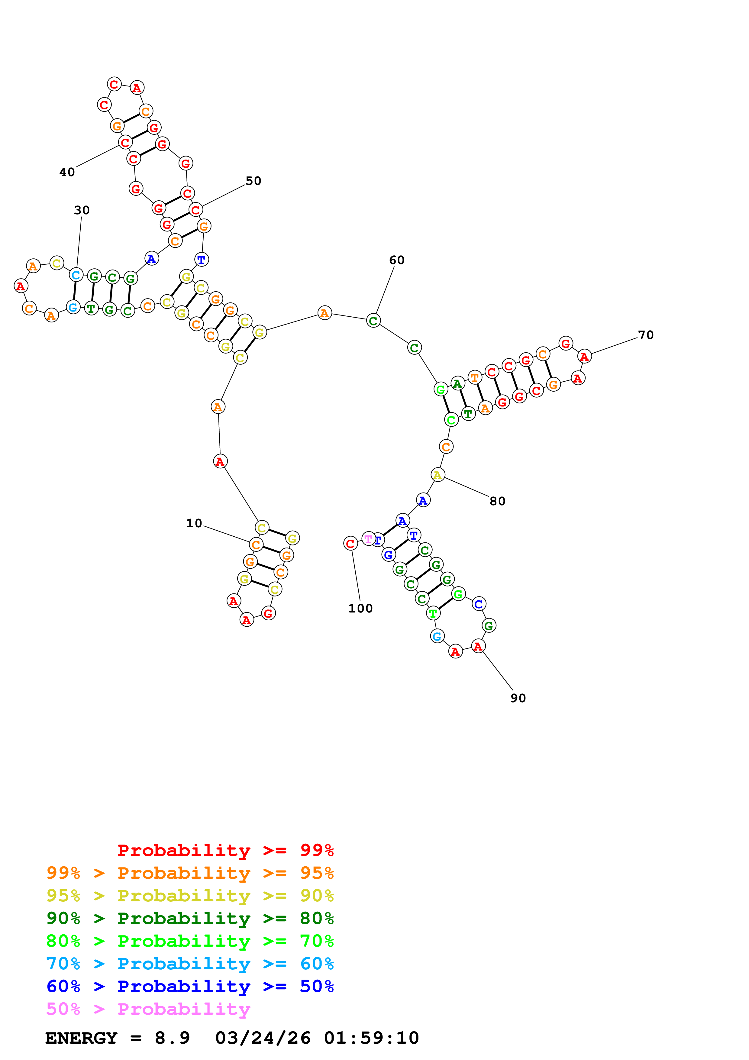 Fold Predict1.fasta Fold.ct --DNA --loop 30 --maximum 20 --percent 10 --temperature 310.15 --window 3