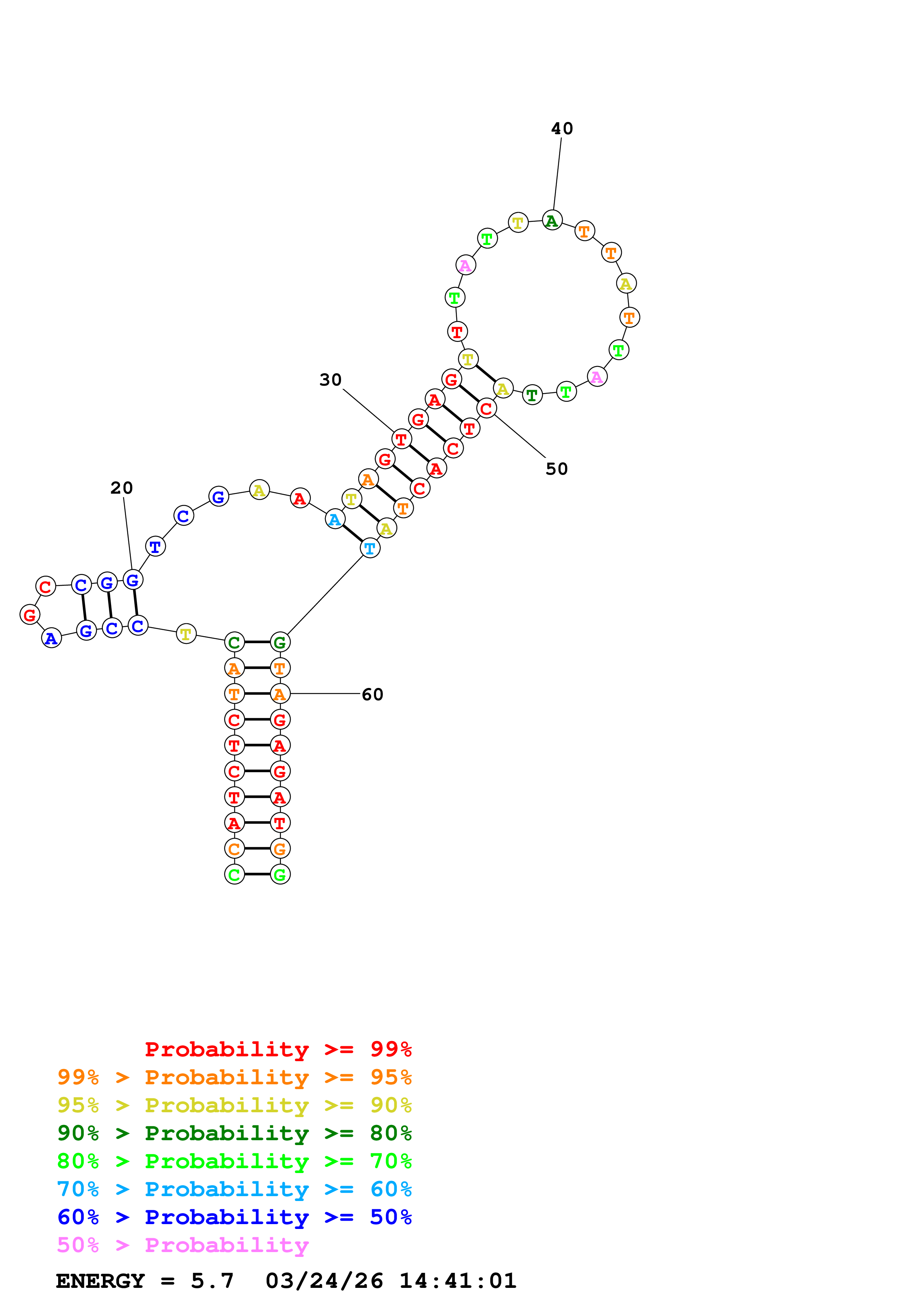 Fold Predict1.fasta Fold.ct --DNA --loop 30 --maximum 20 --percent 10 --temperature 310.15 --window 3