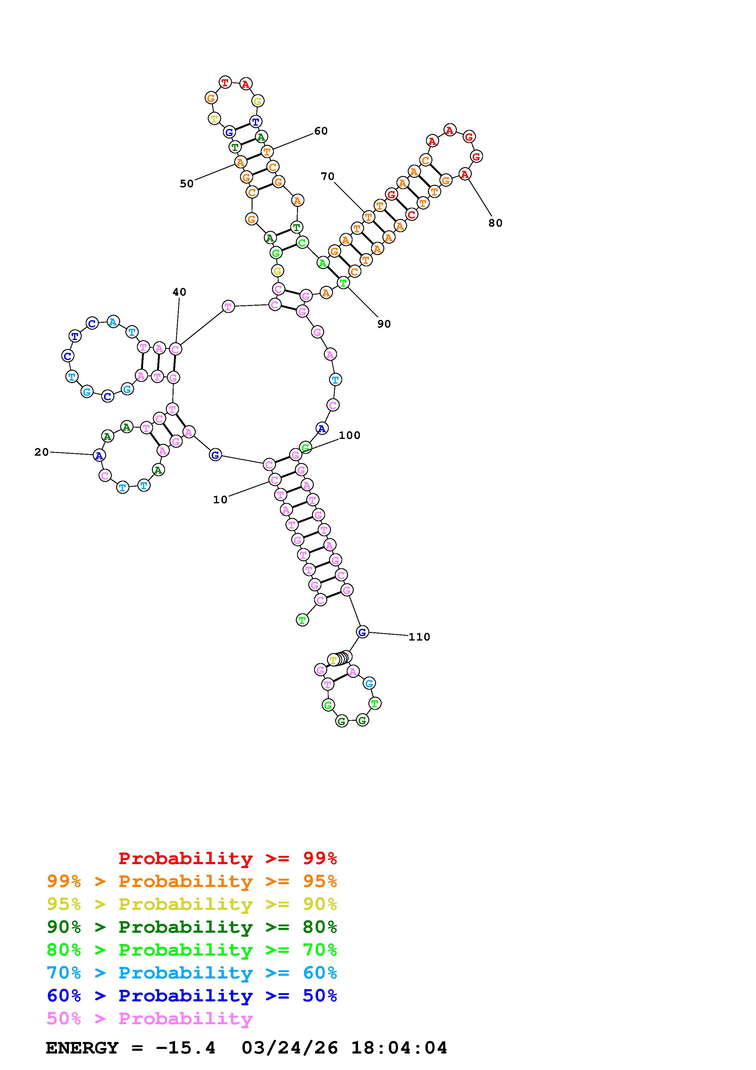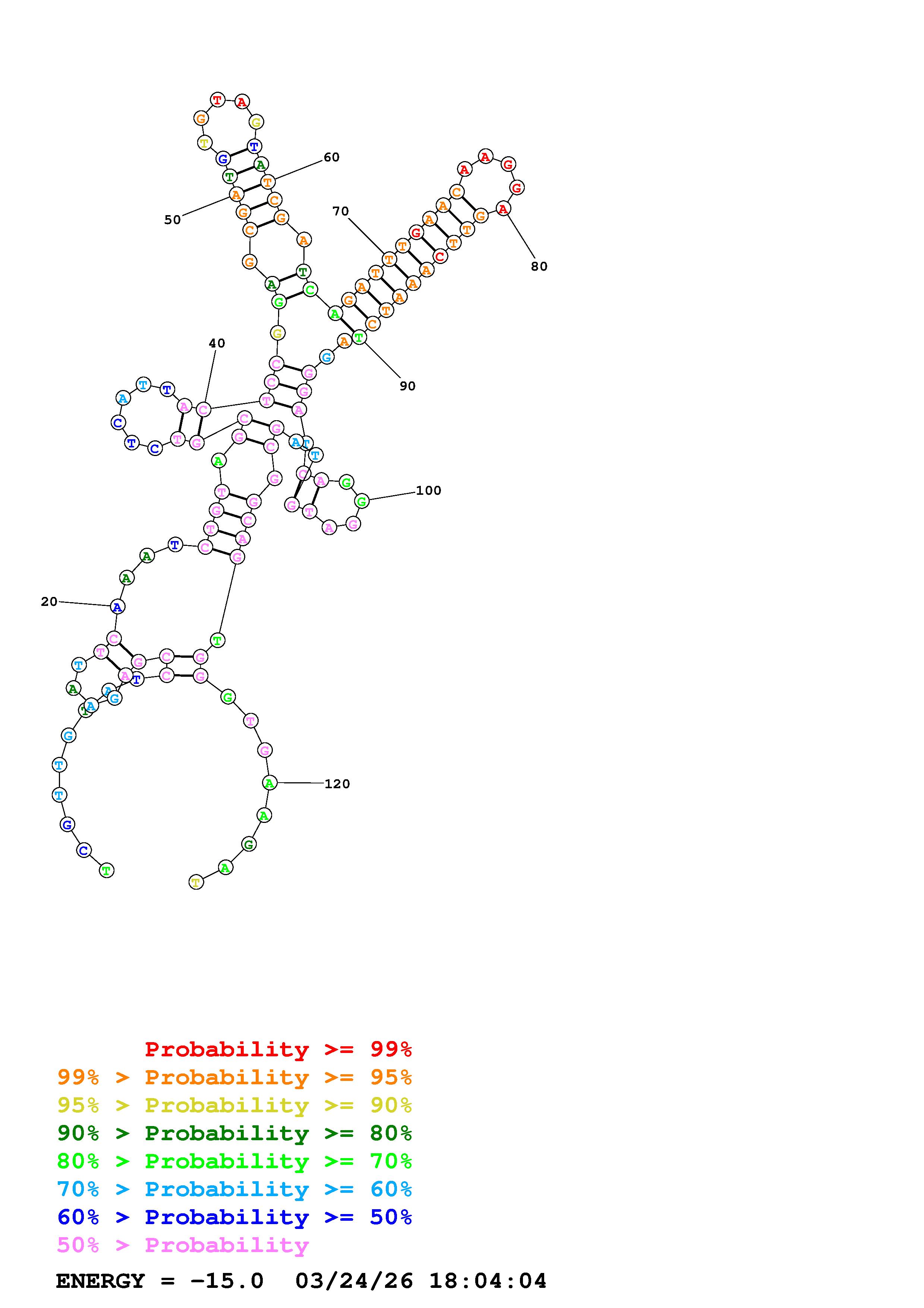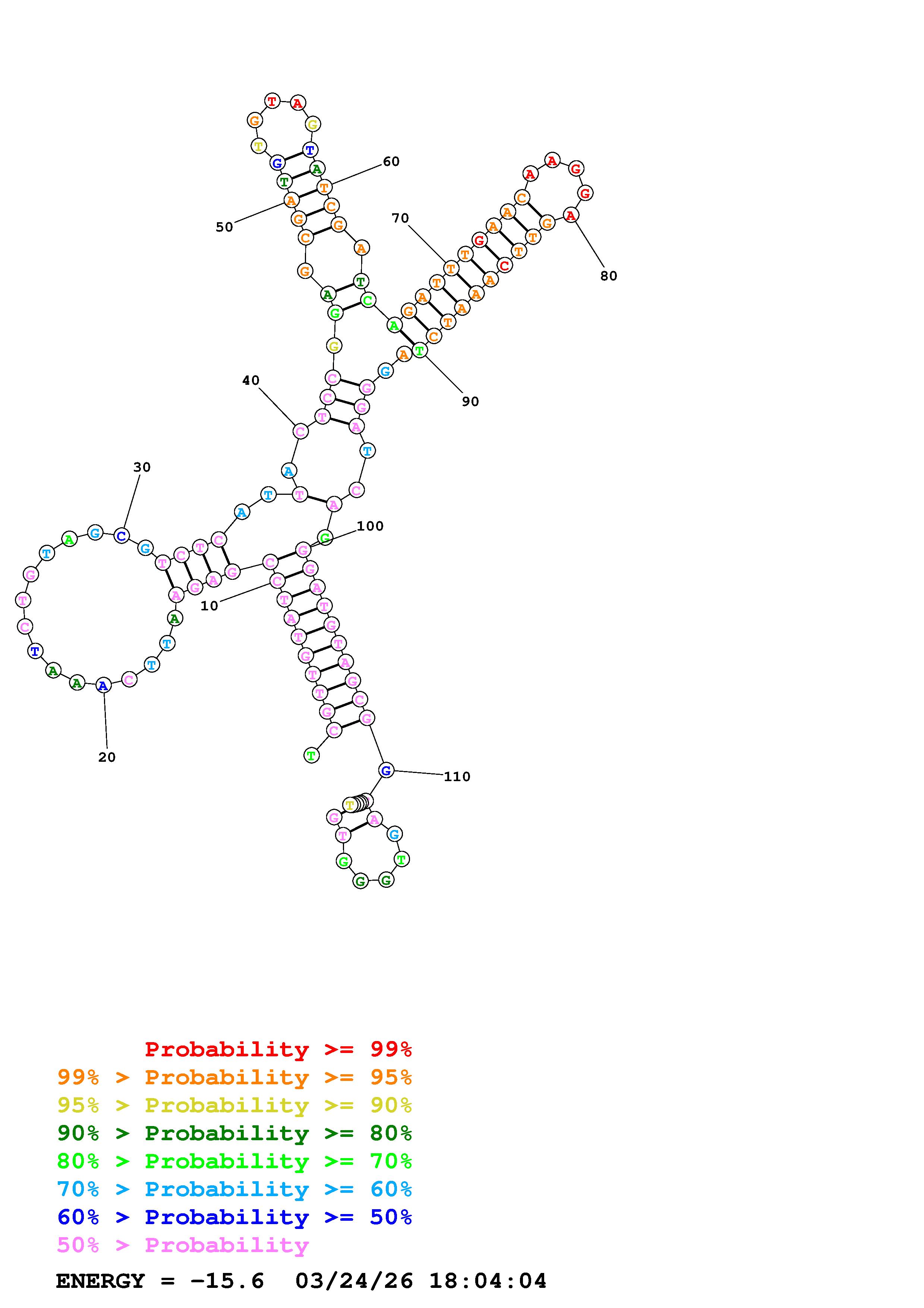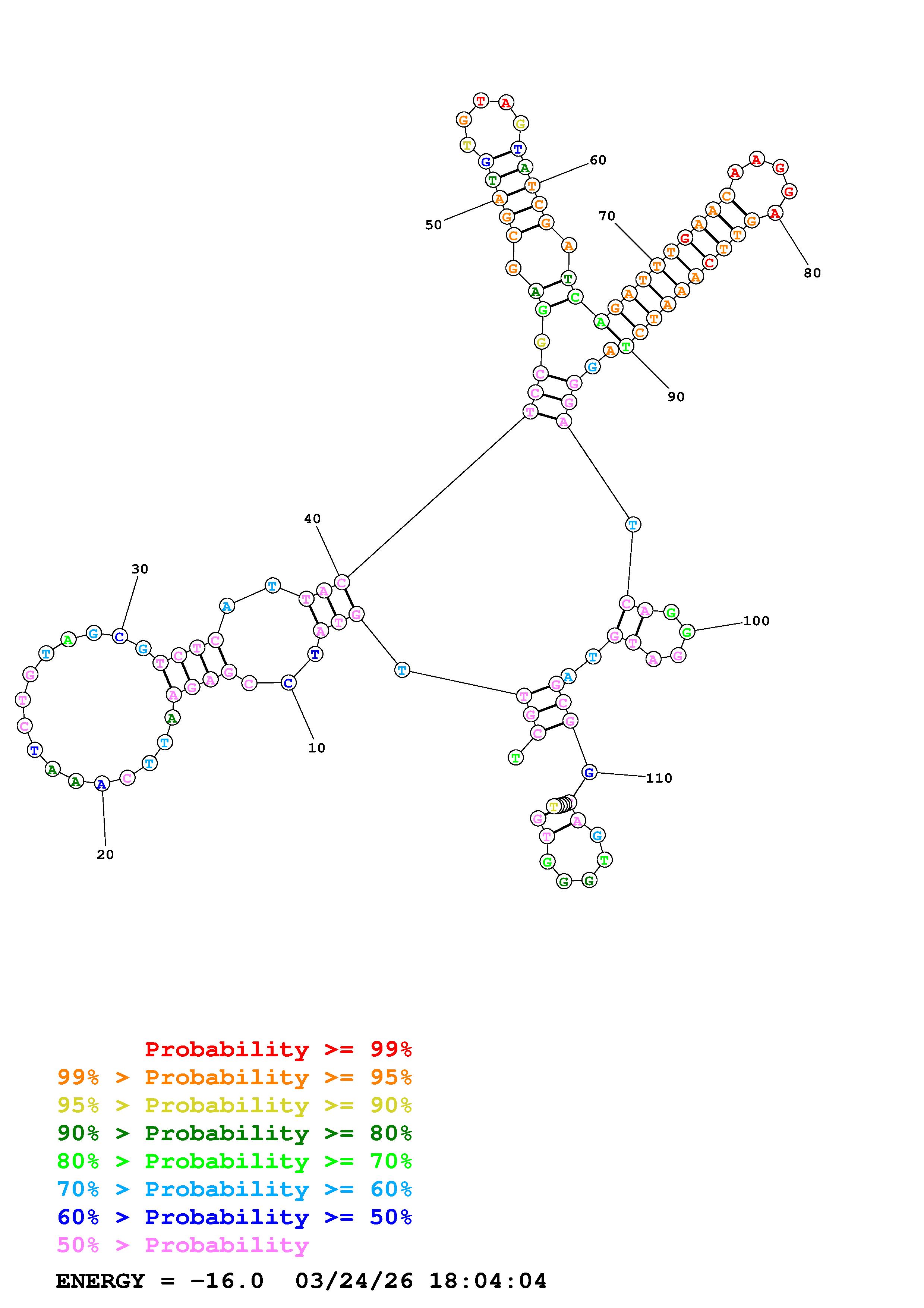 Fold Predict1.fasta Fold.ct --DNA --loop 30 --maximum 20 --percent 10 --temperature 310.15 --window 3