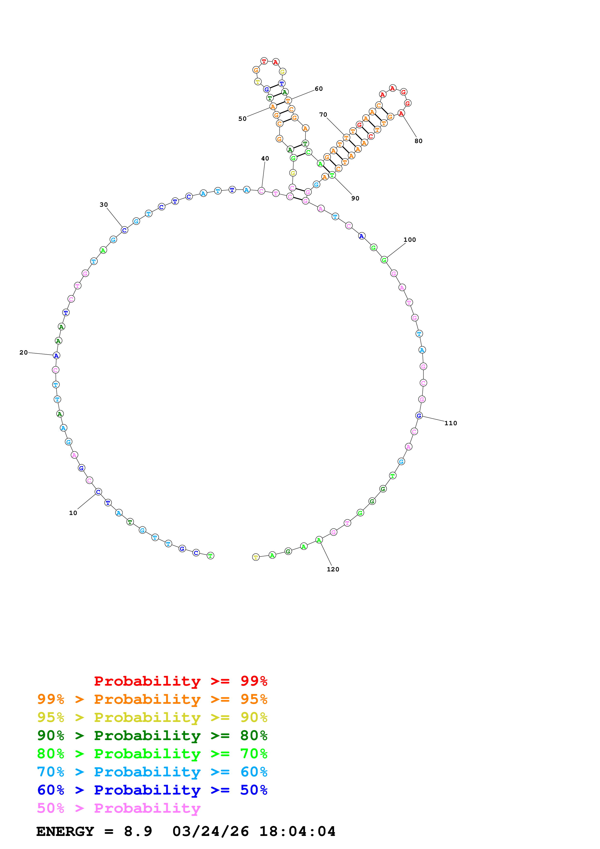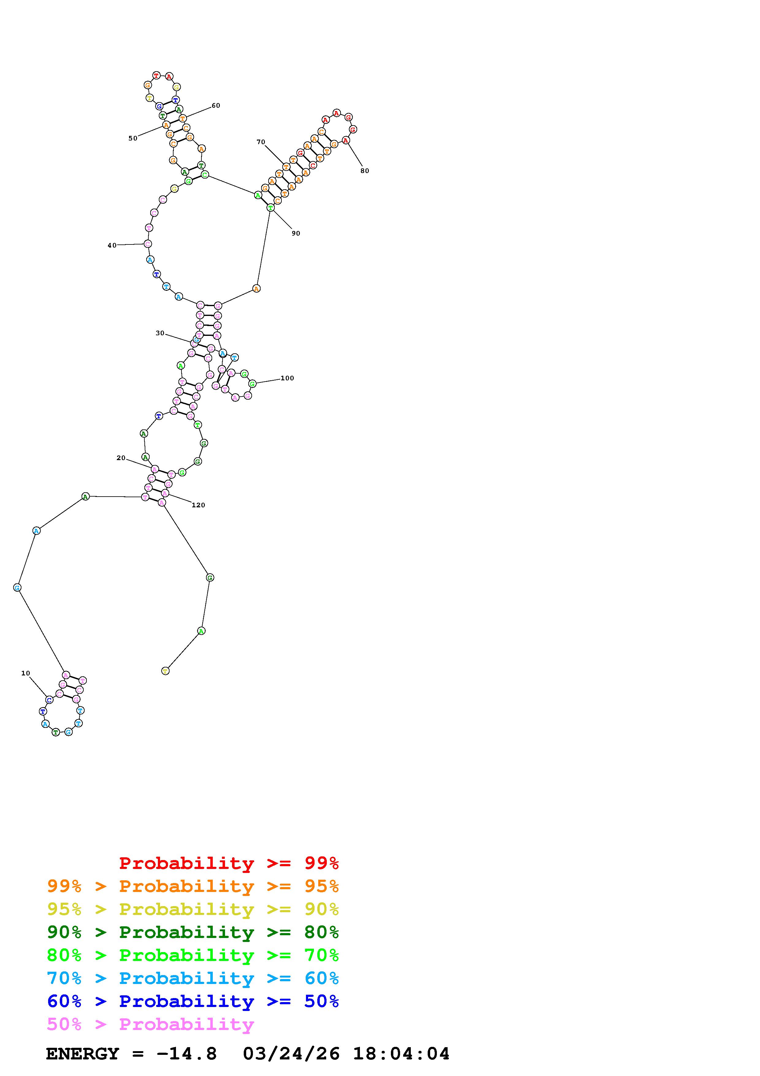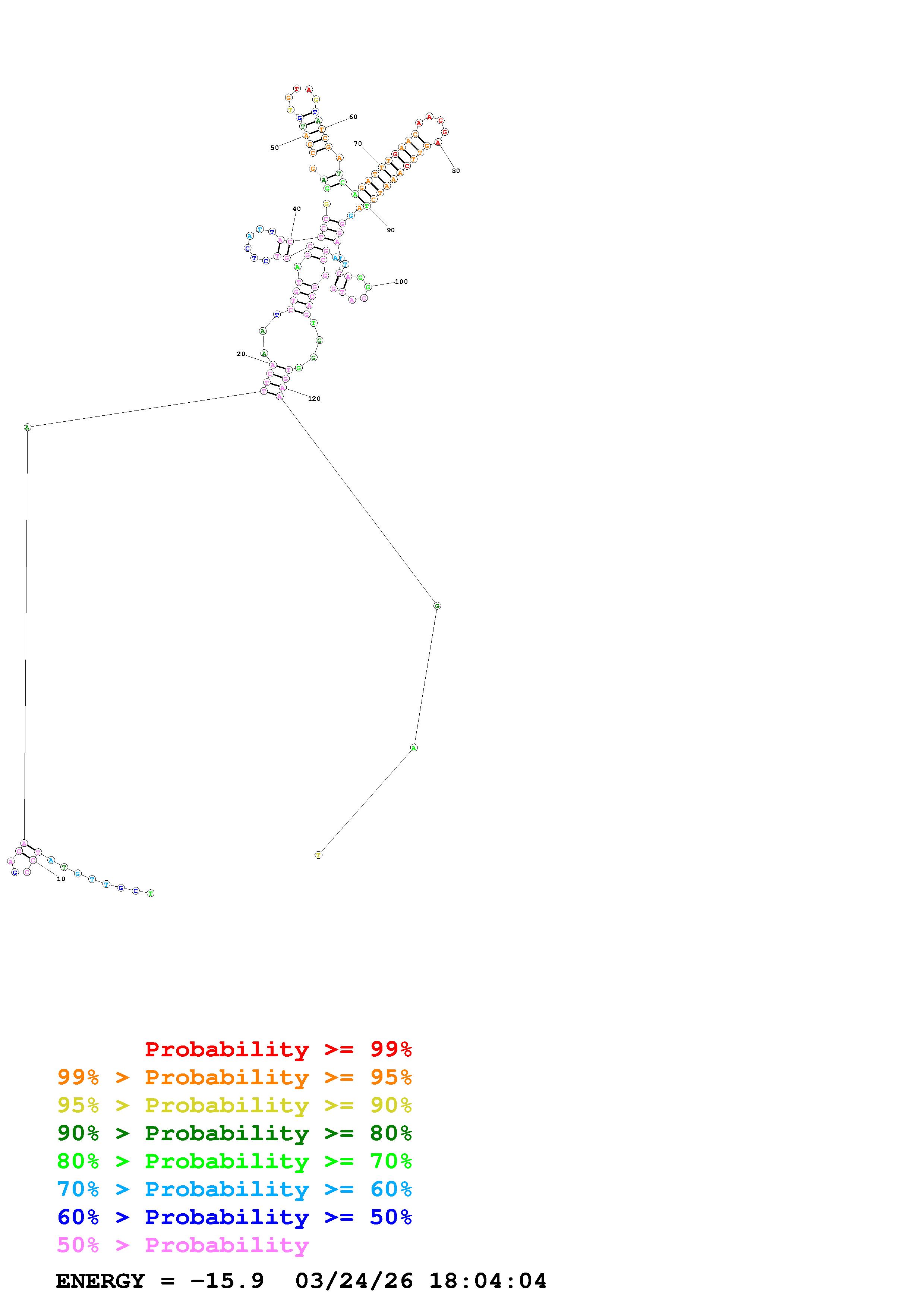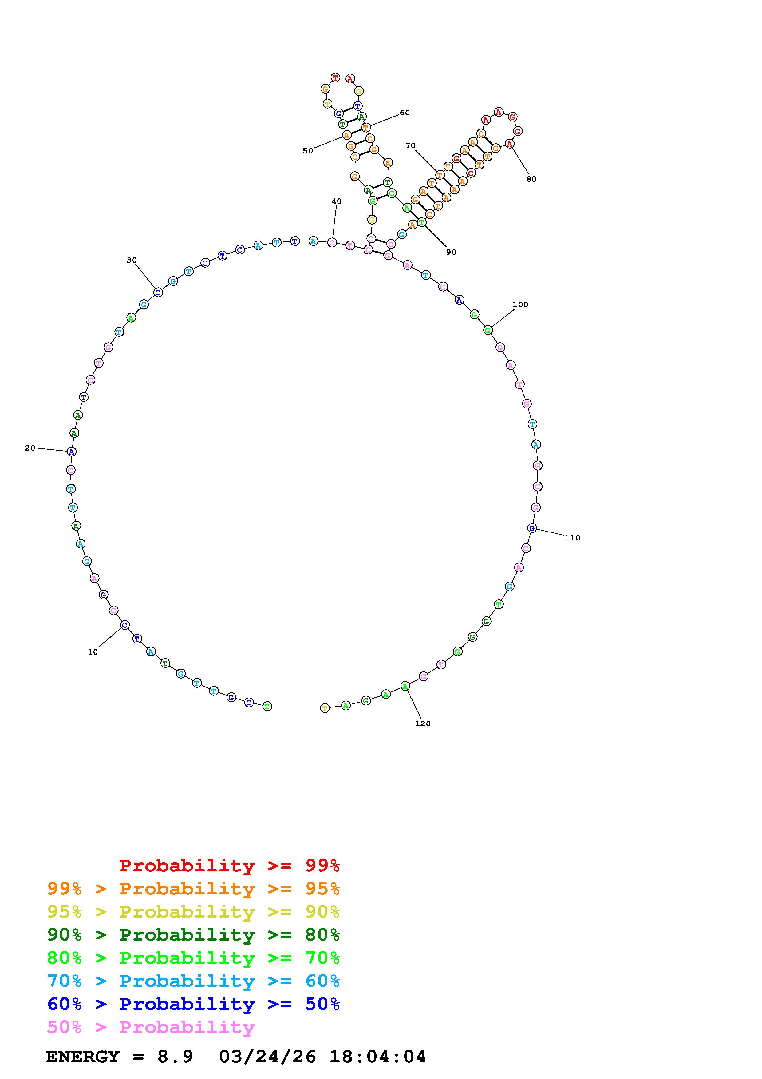 Fold Predict1.fasta Fold.ct --DNA --loop 30 --maximum 20 --percent 10 --temperature 310.15 --window 3
