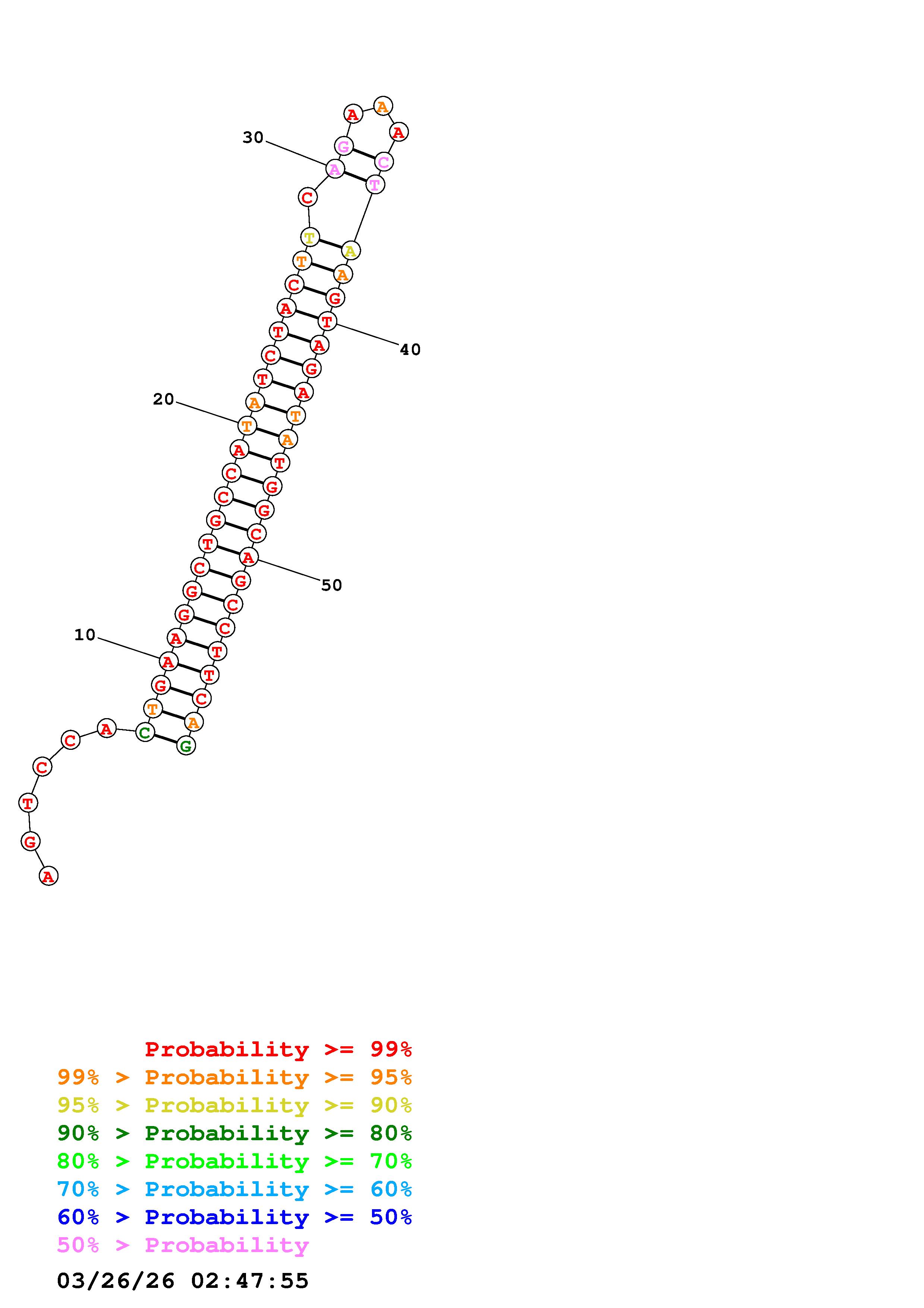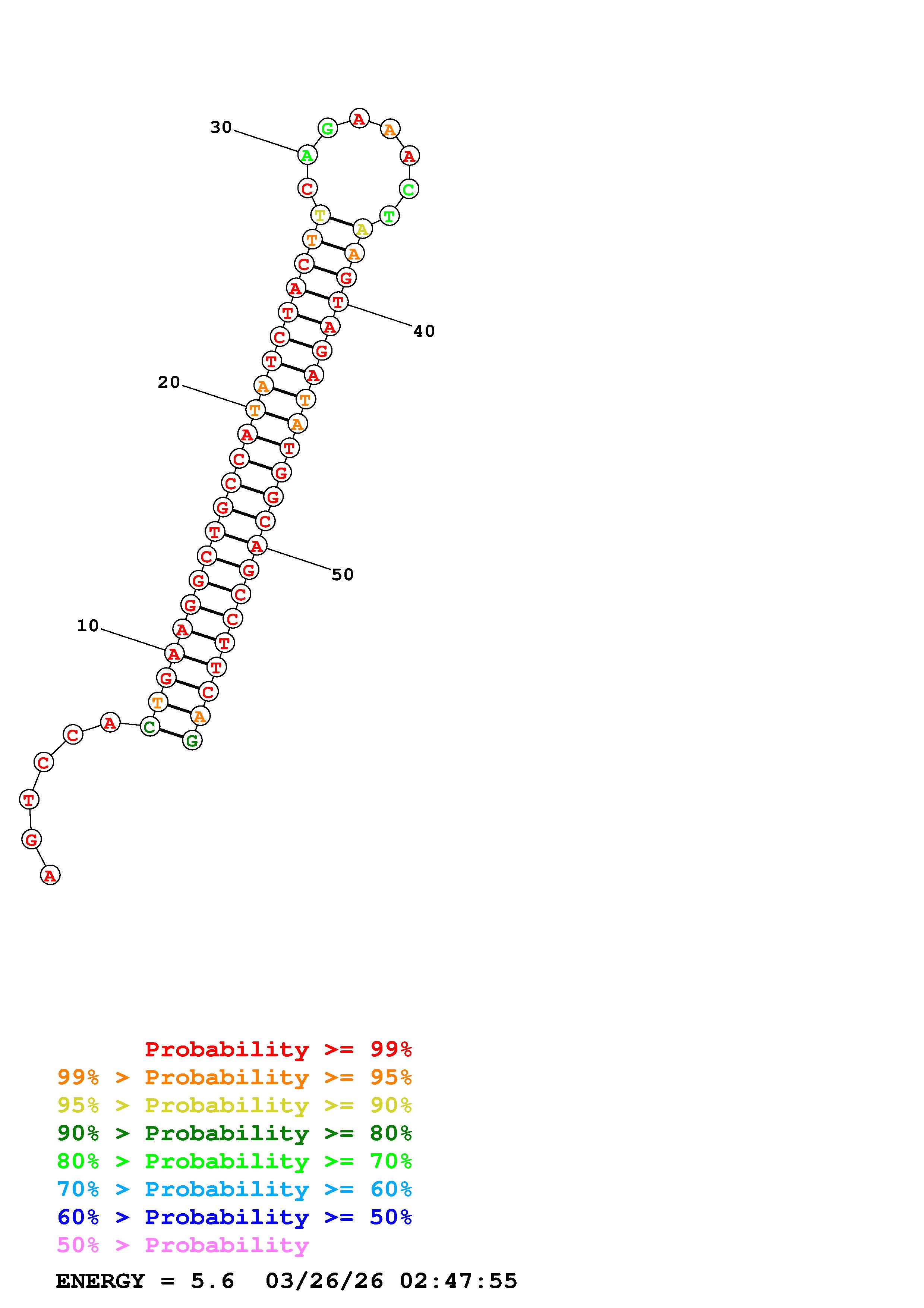 Fold Predict1.fasta Fold.ct --DNA --loop 30 --maximum 20 --percent 10 --temperature 310.15 --window 3