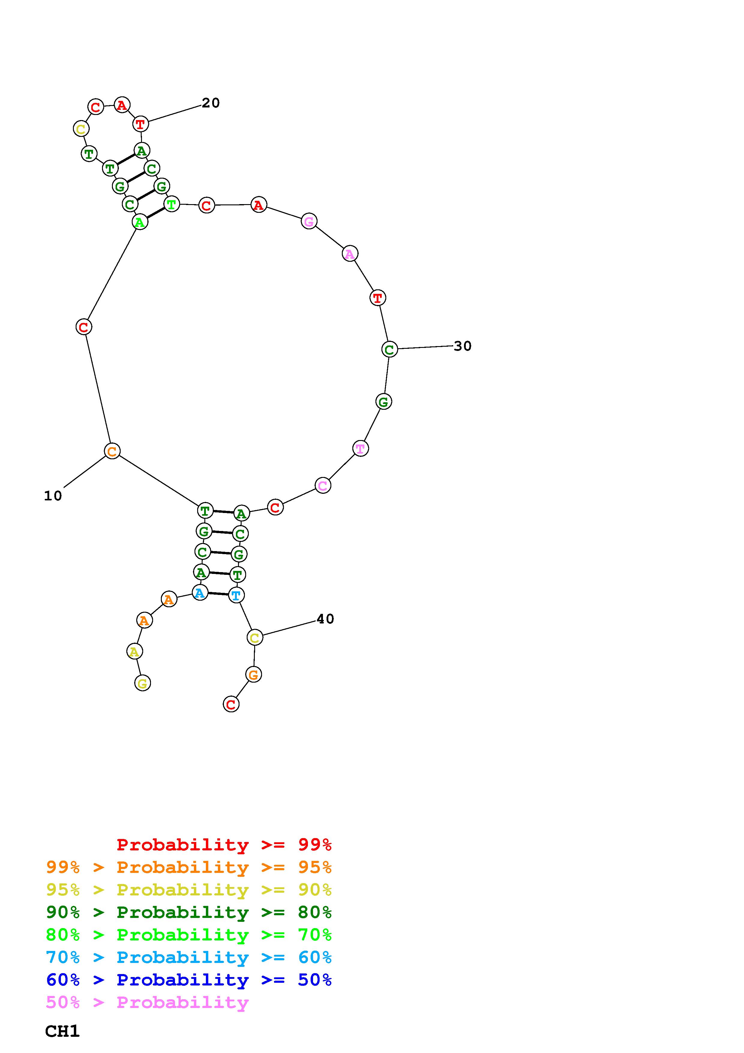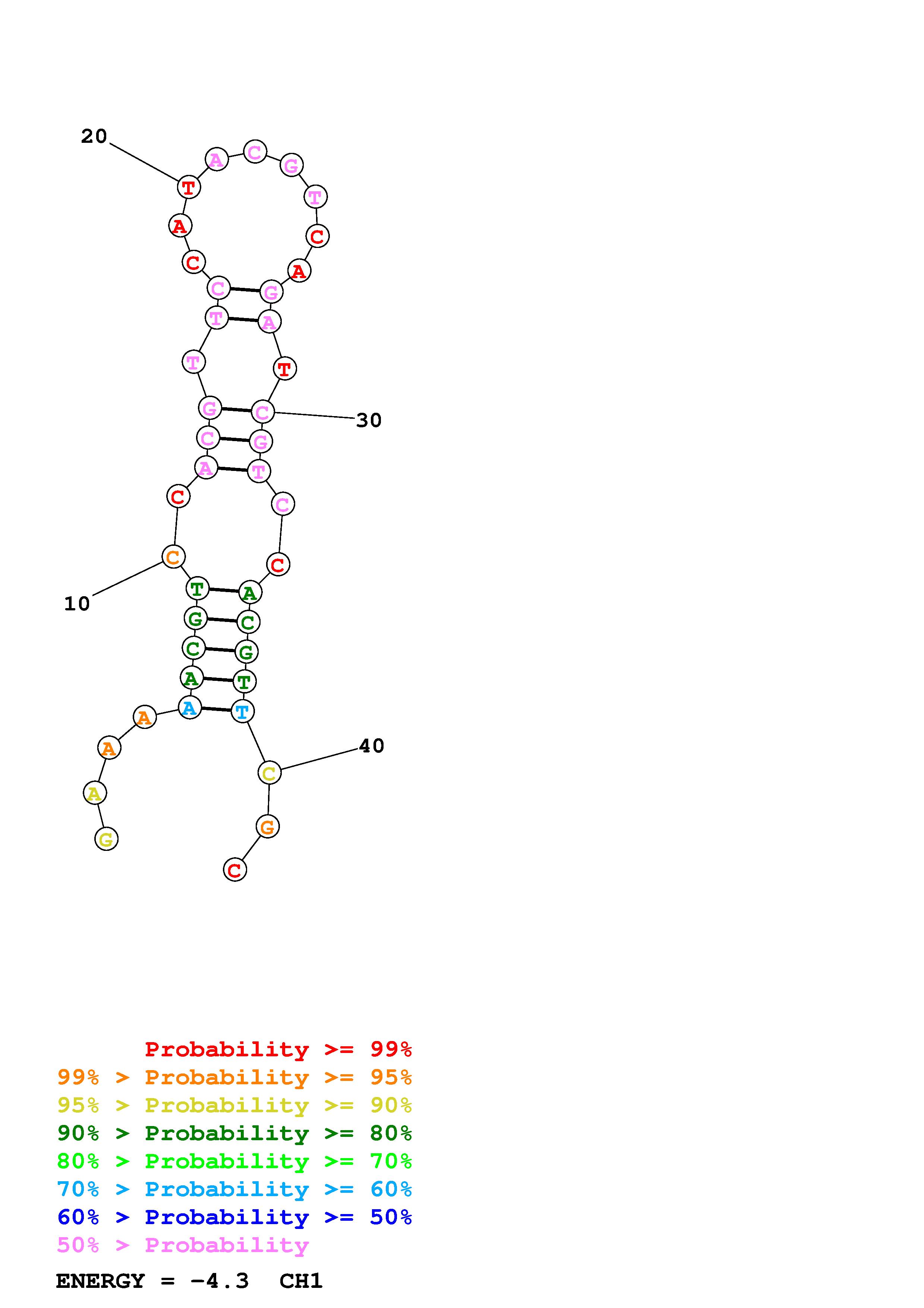 Fold Predict1.fasta Fold.ct --DNA --loop 30 --maximum 20 --percent 10 --temperature 310.15 --window 3