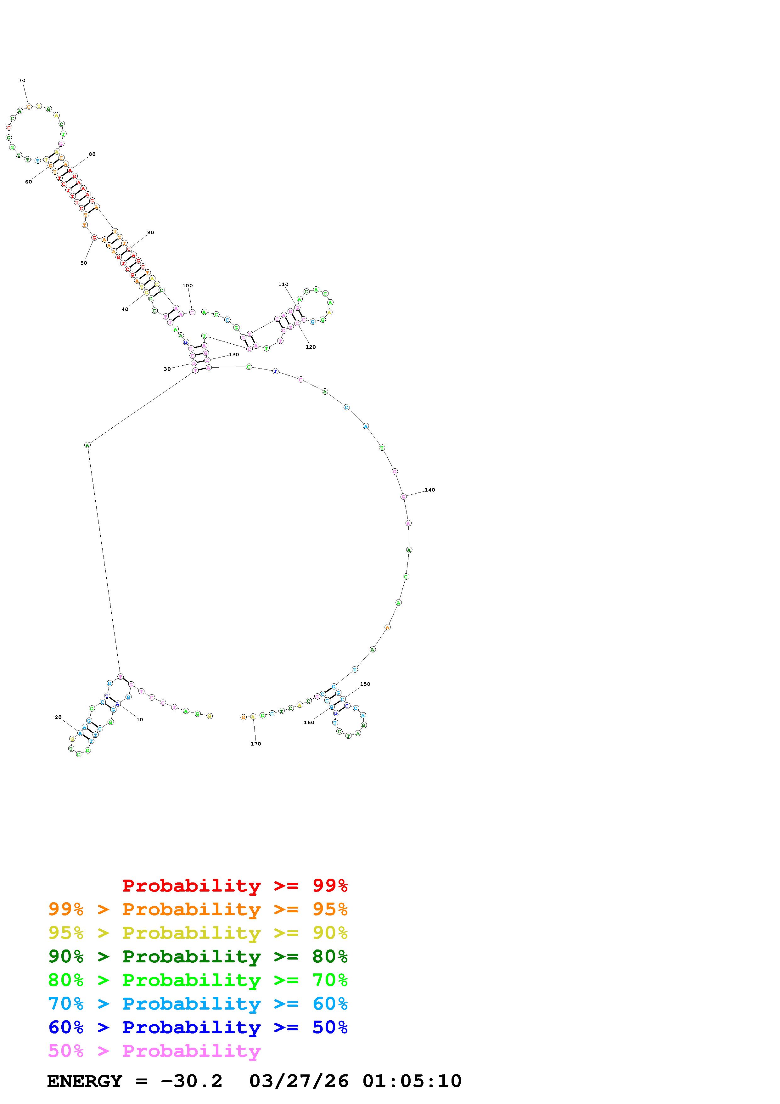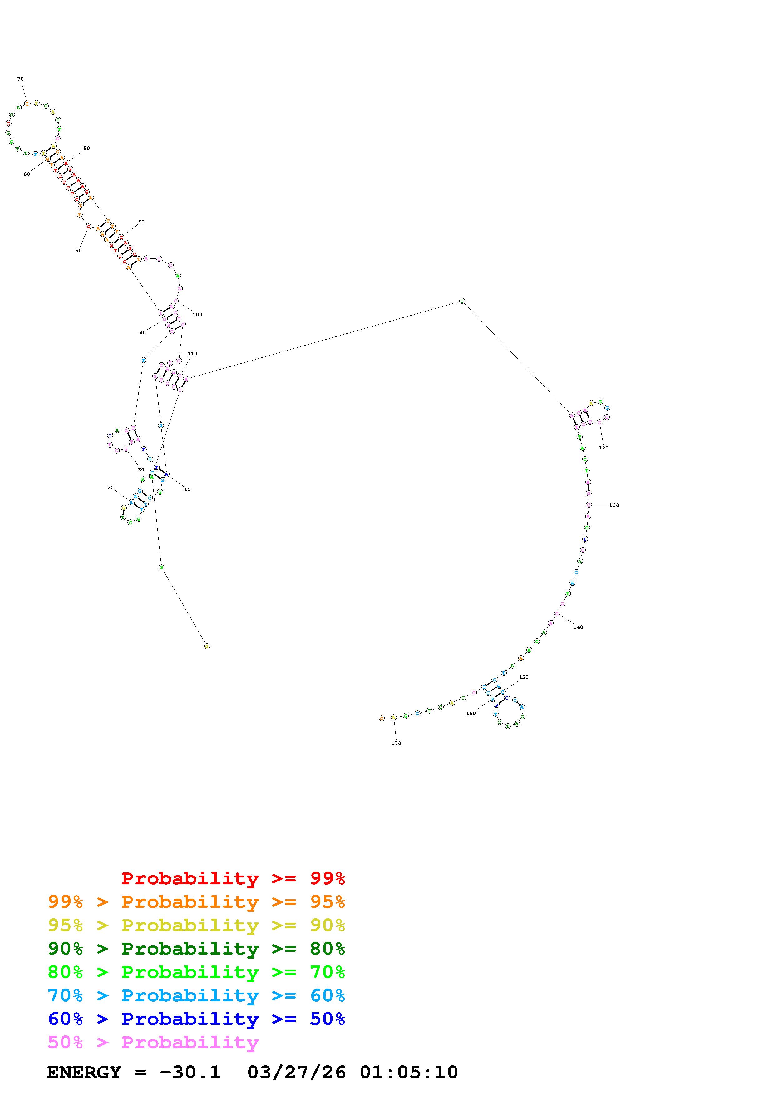 Fold Predict1.fasta Fold.ct --DNA --loop 30 --maximum 20 --percent 10 --temperature 310.15 --window 3