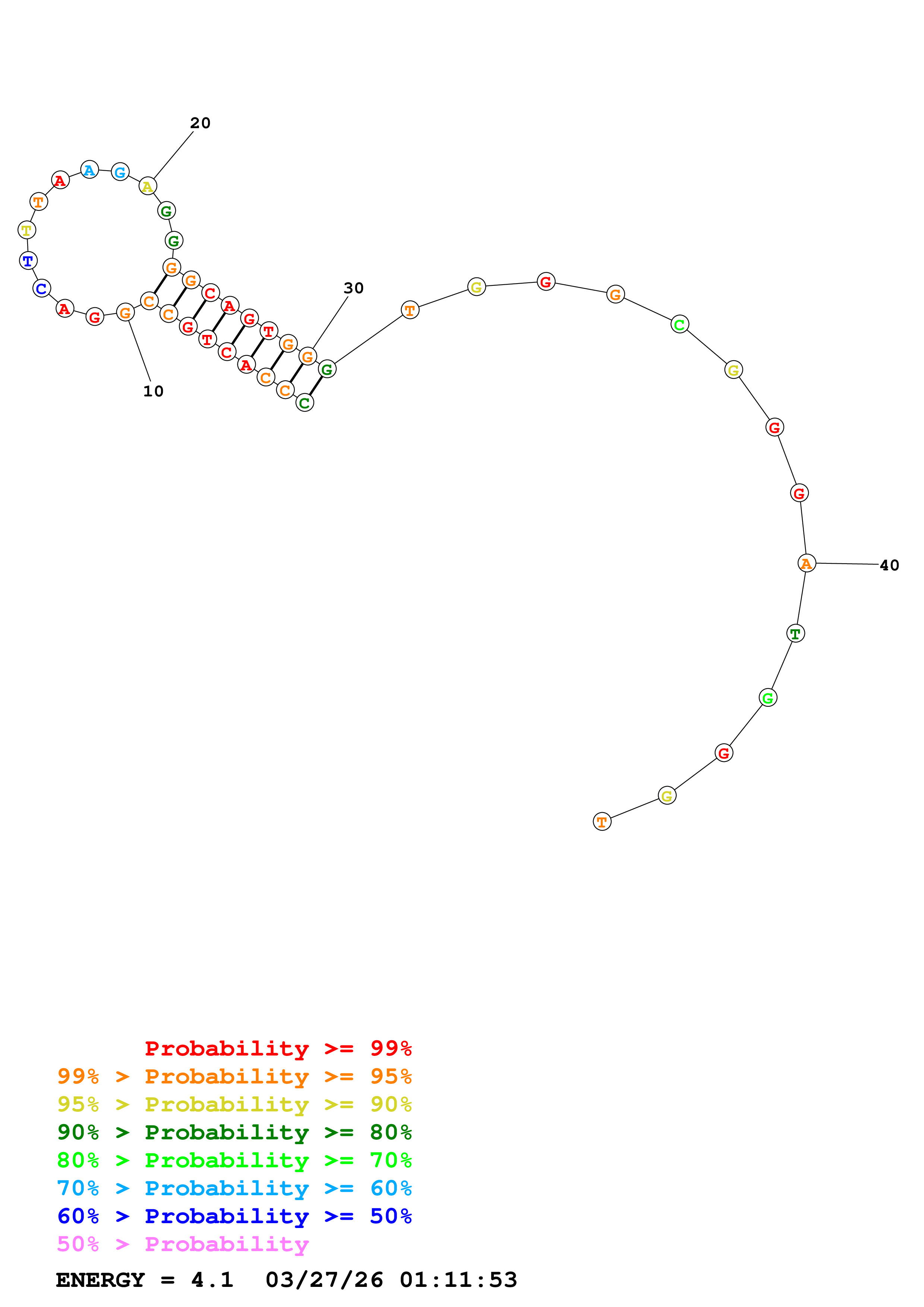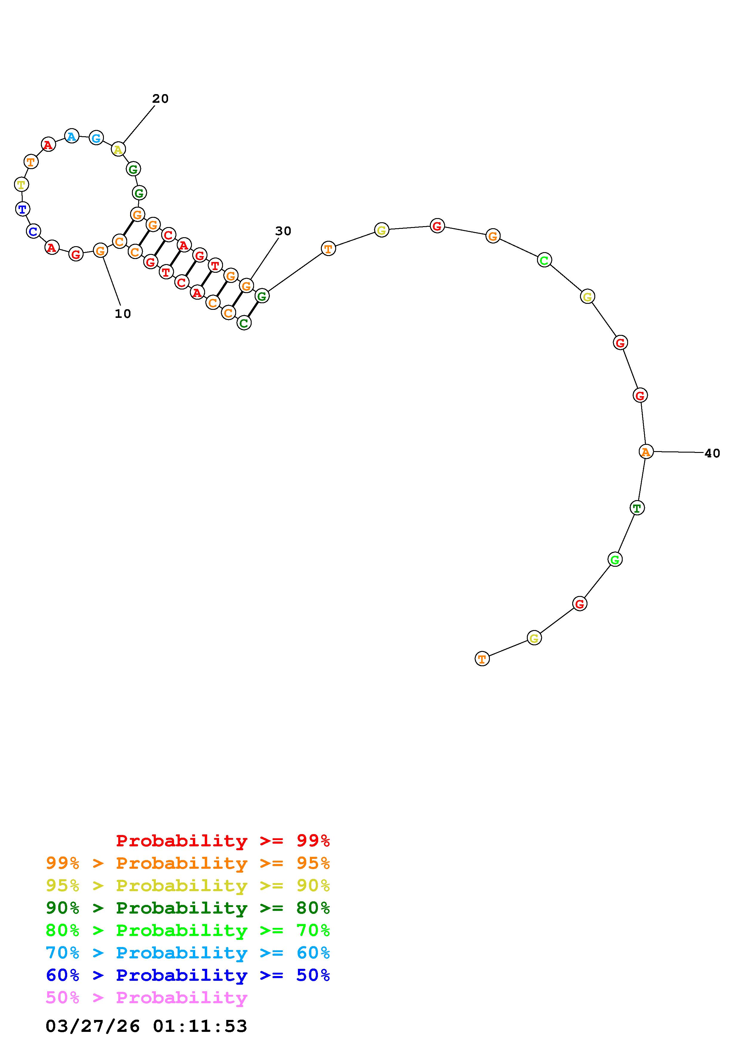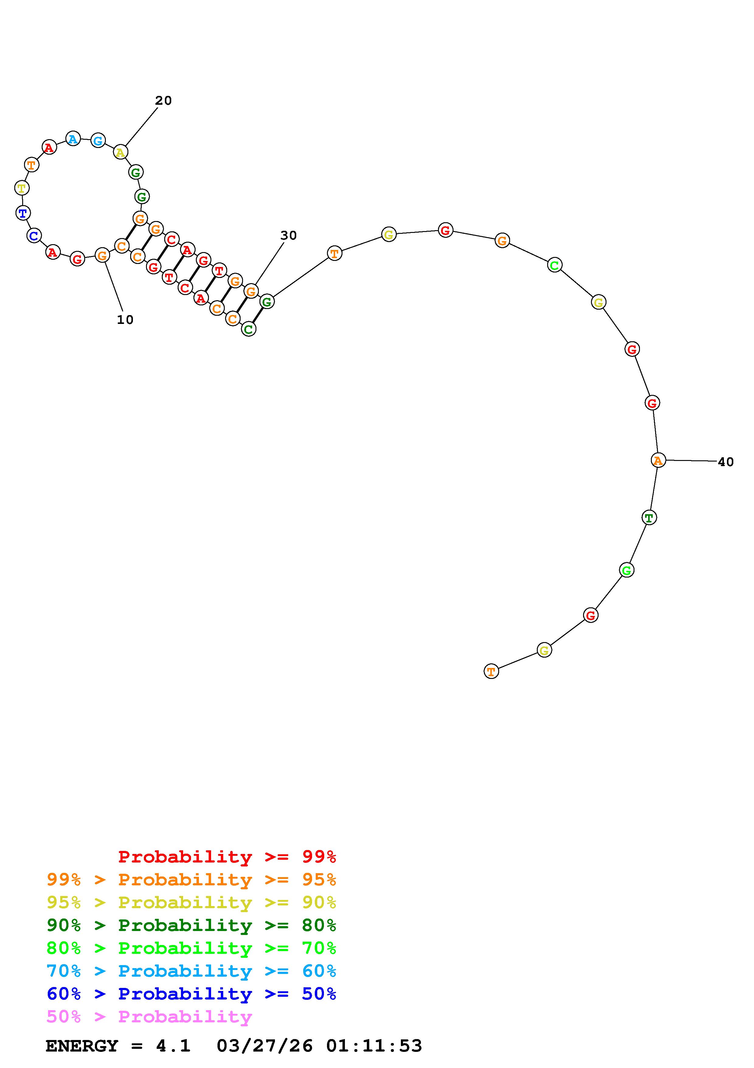 Fold Predict1.fasta Fold.ct --DNA --loop 30 --maximum 20 --percent 10 --temperature 310.15 --window 3