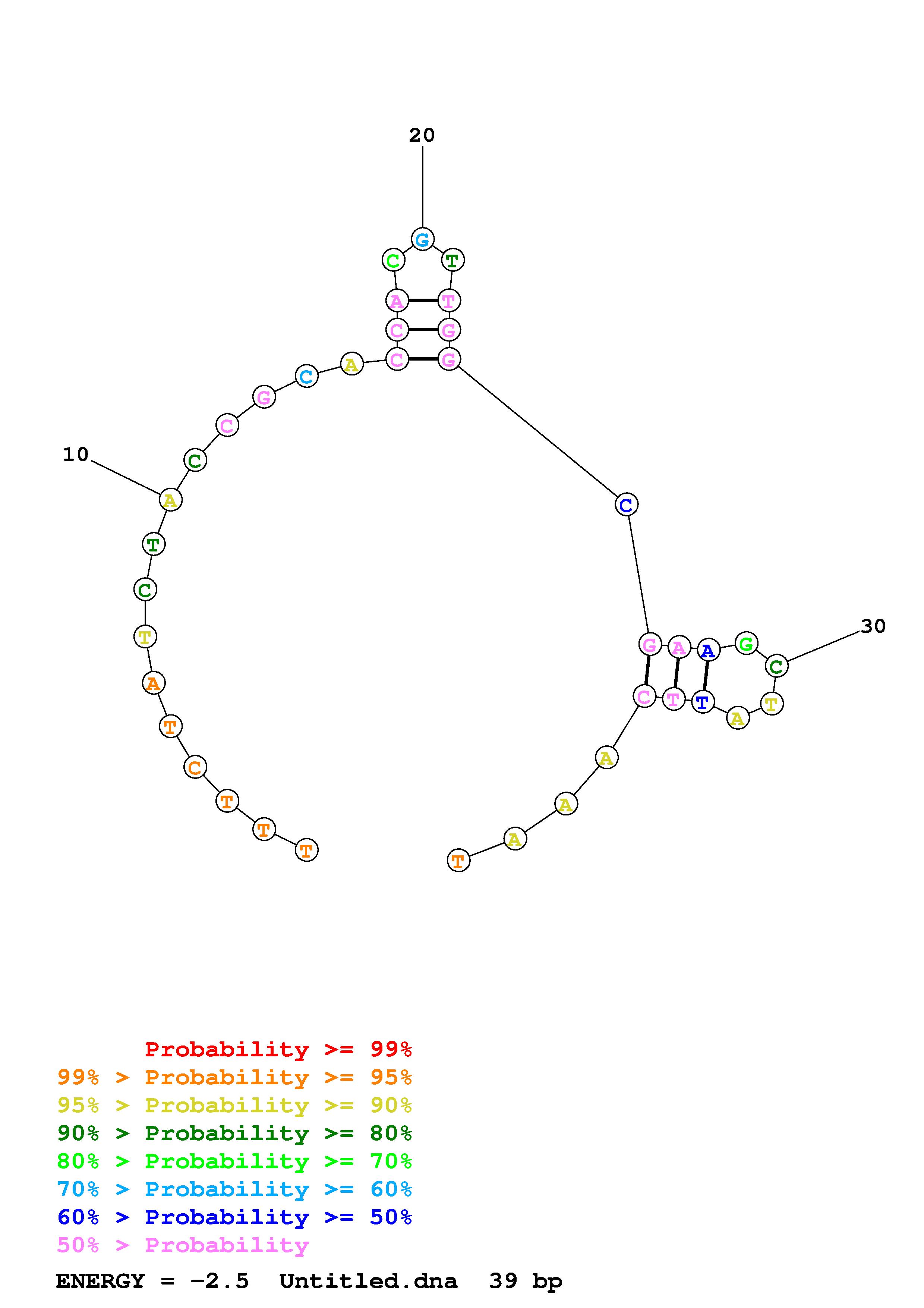 Fold DNA_.fa Fold.ct --DNA --loop 30 --maximum 20 --percent 10 --temperature 310.15 --window 3