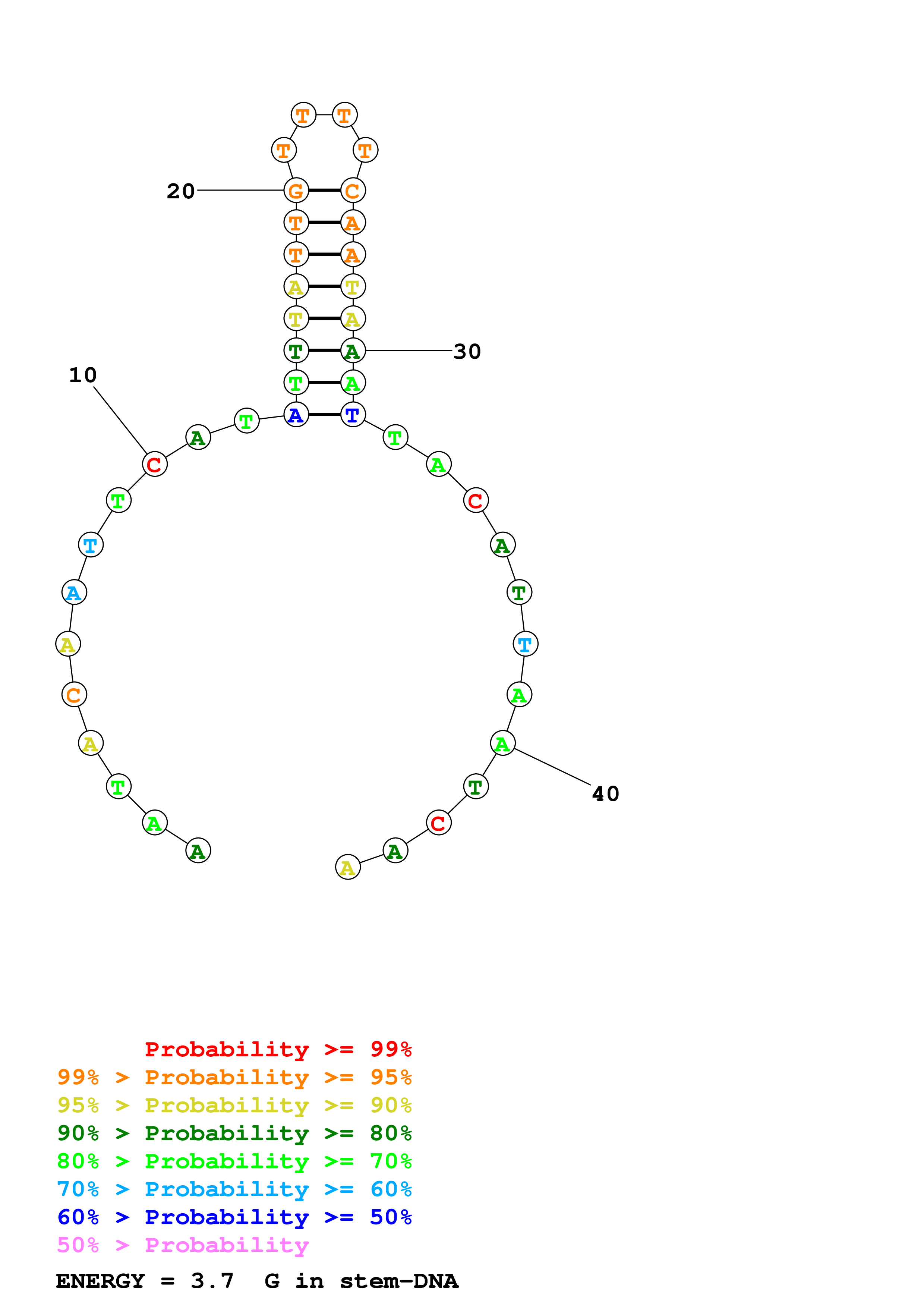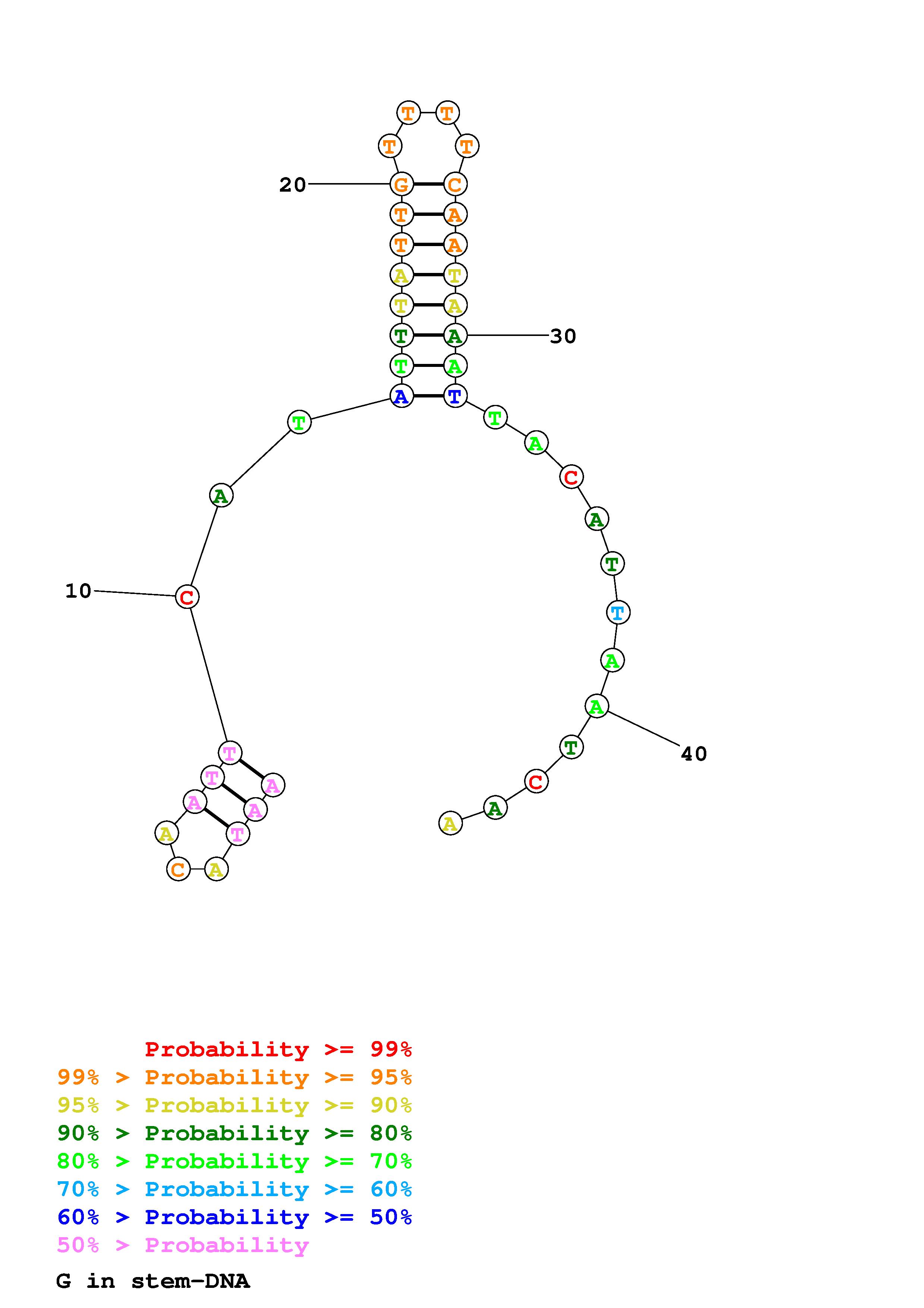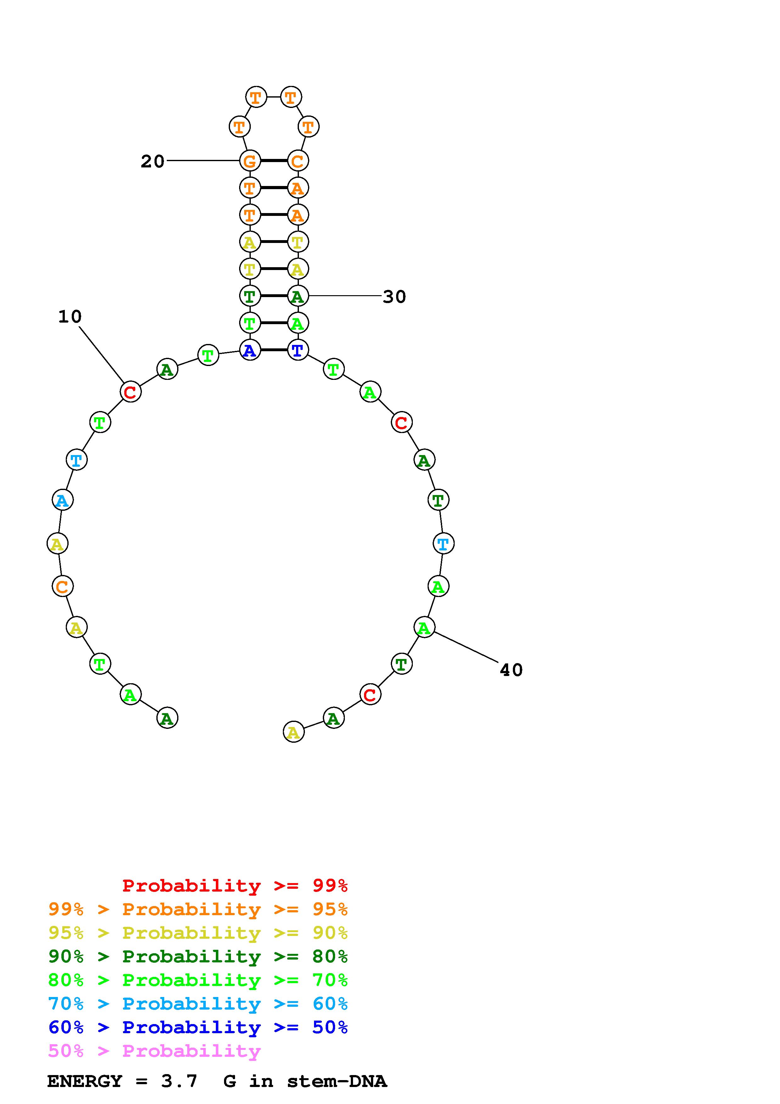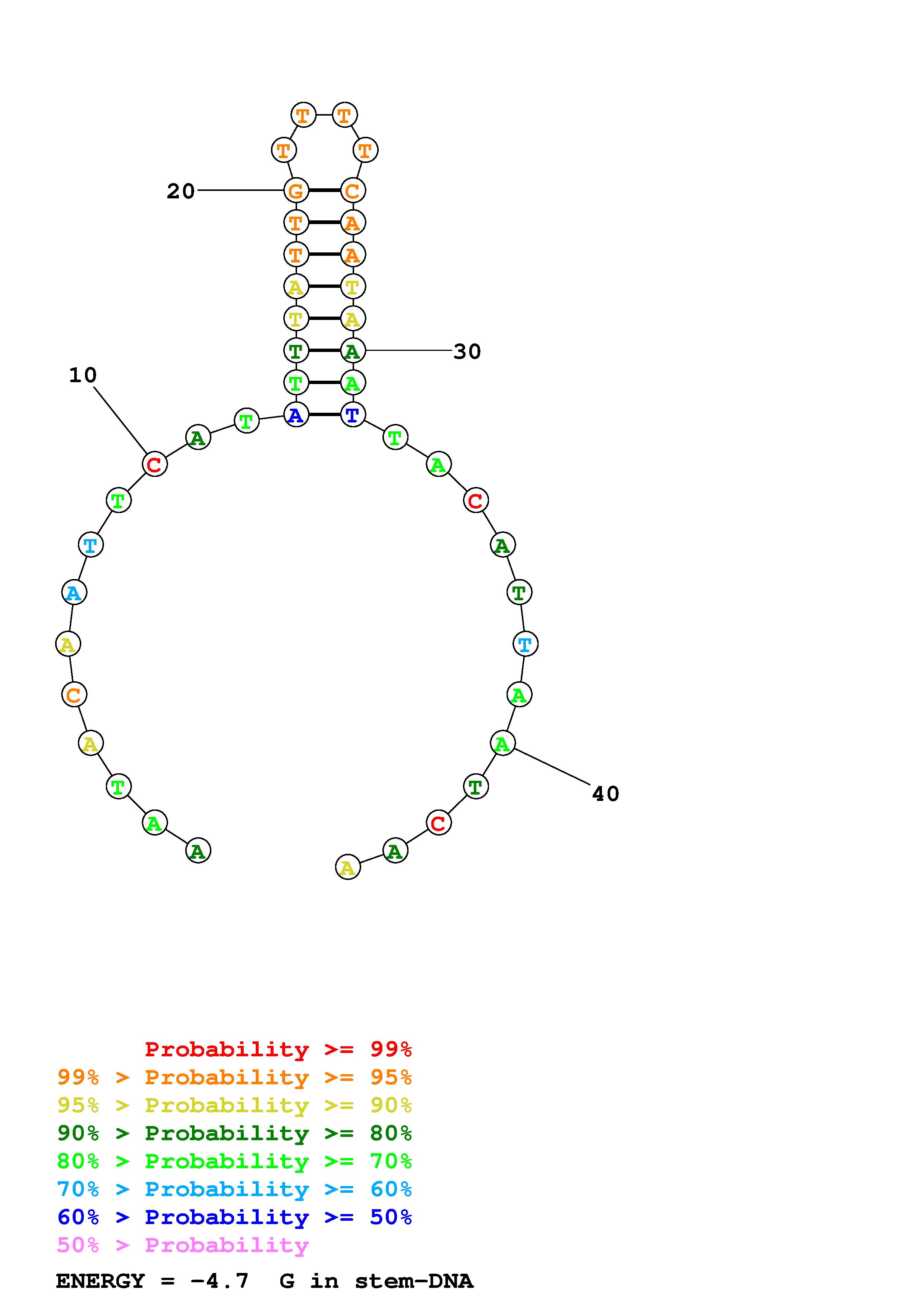 Fold Predict1.fasta Fold.ct --DNA --loop 30 --maximum 20 --percent 10 --temperature 310.15 --window 3