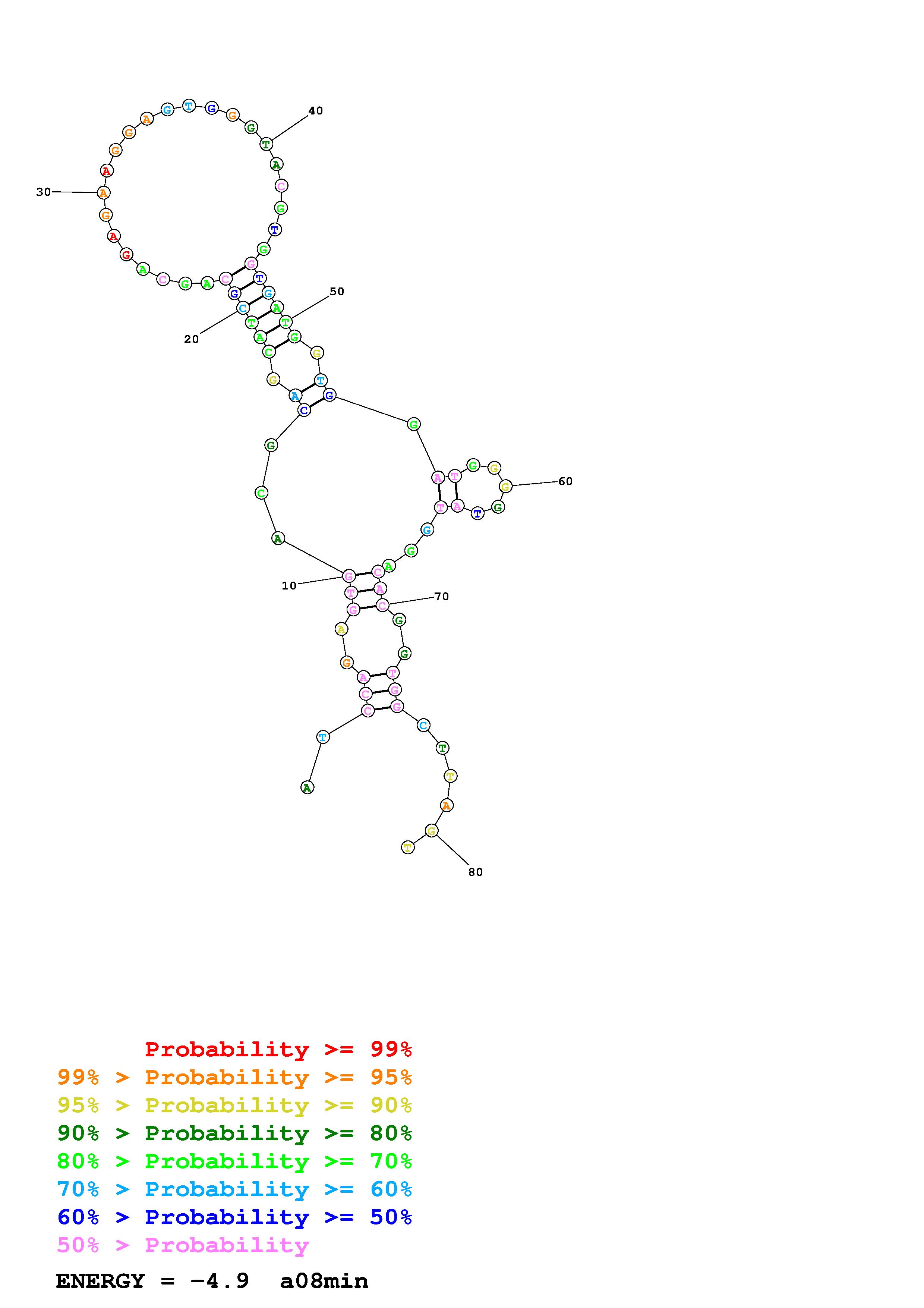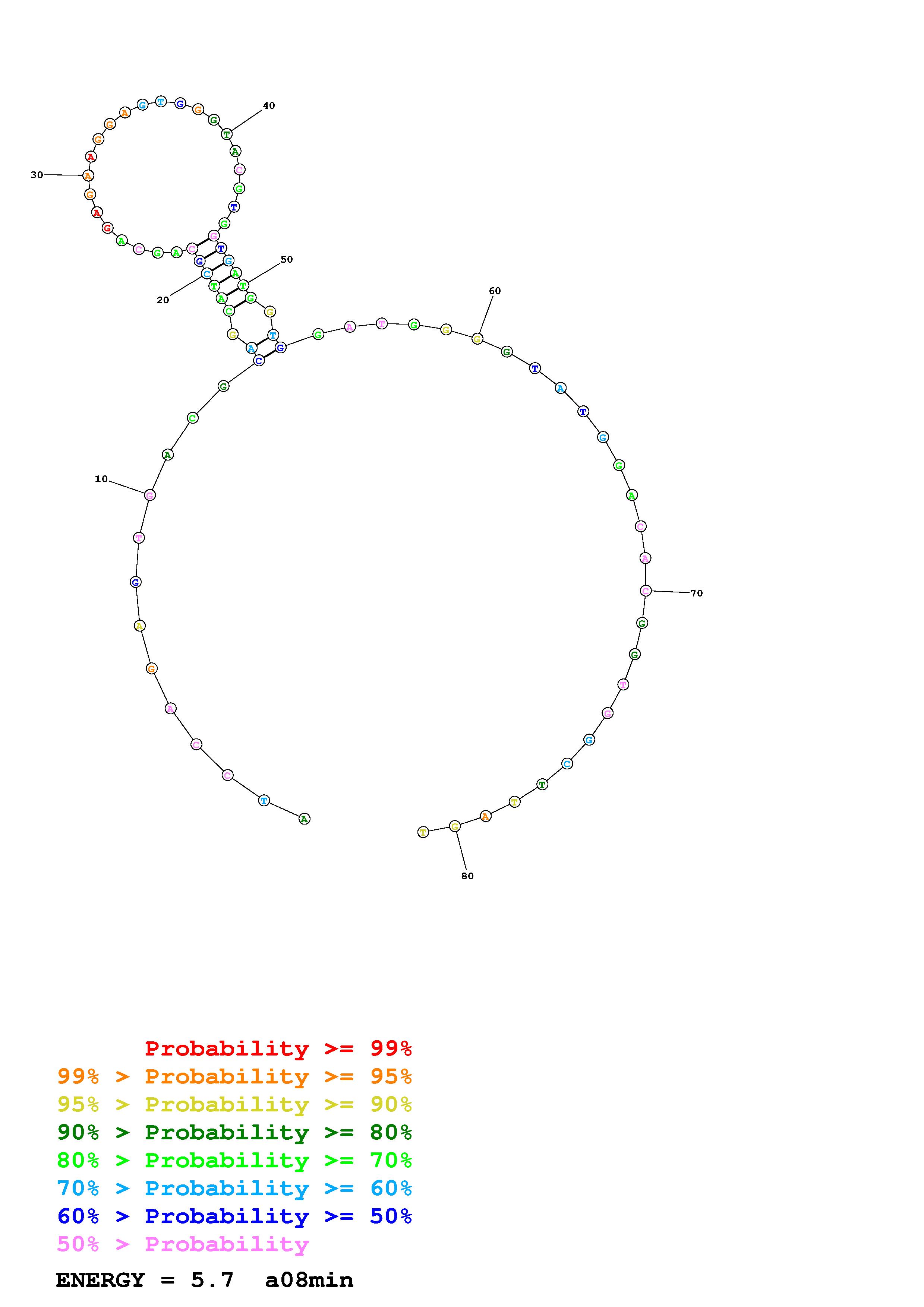 Fold Predict1.fasta Fold.ct --DNA --loop 30 --maximum 20 --percent 10 --temperature 310.15 --window 3