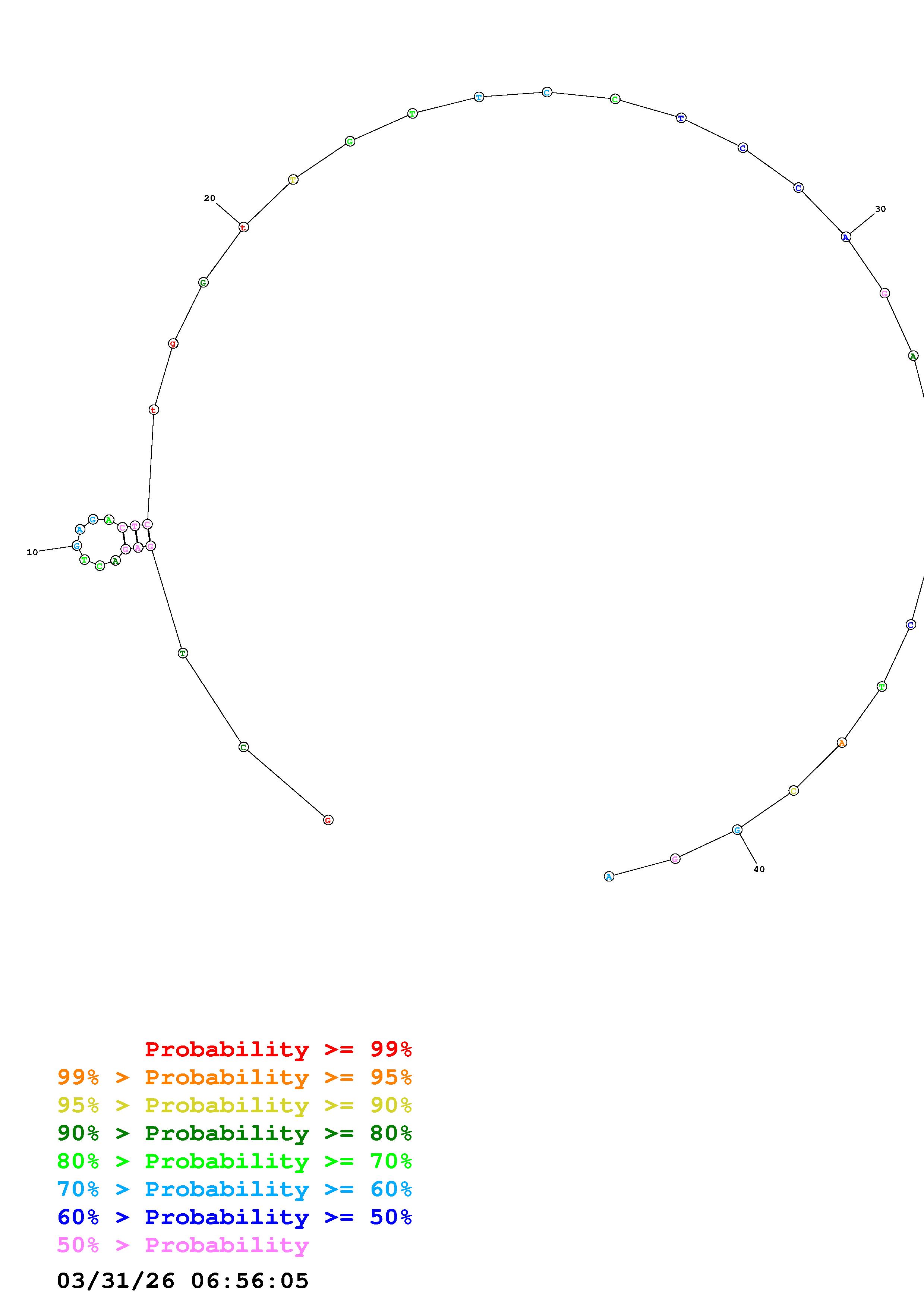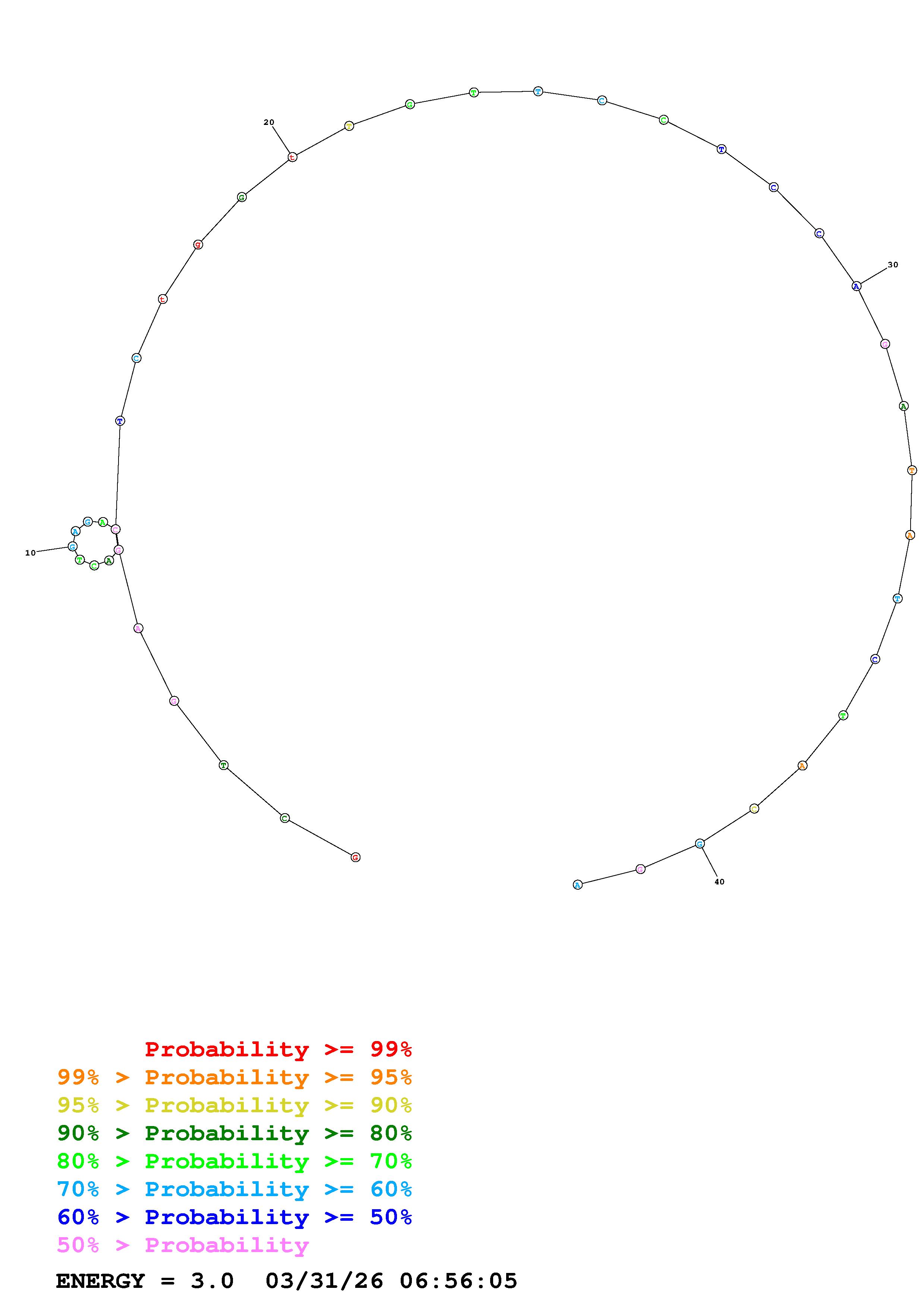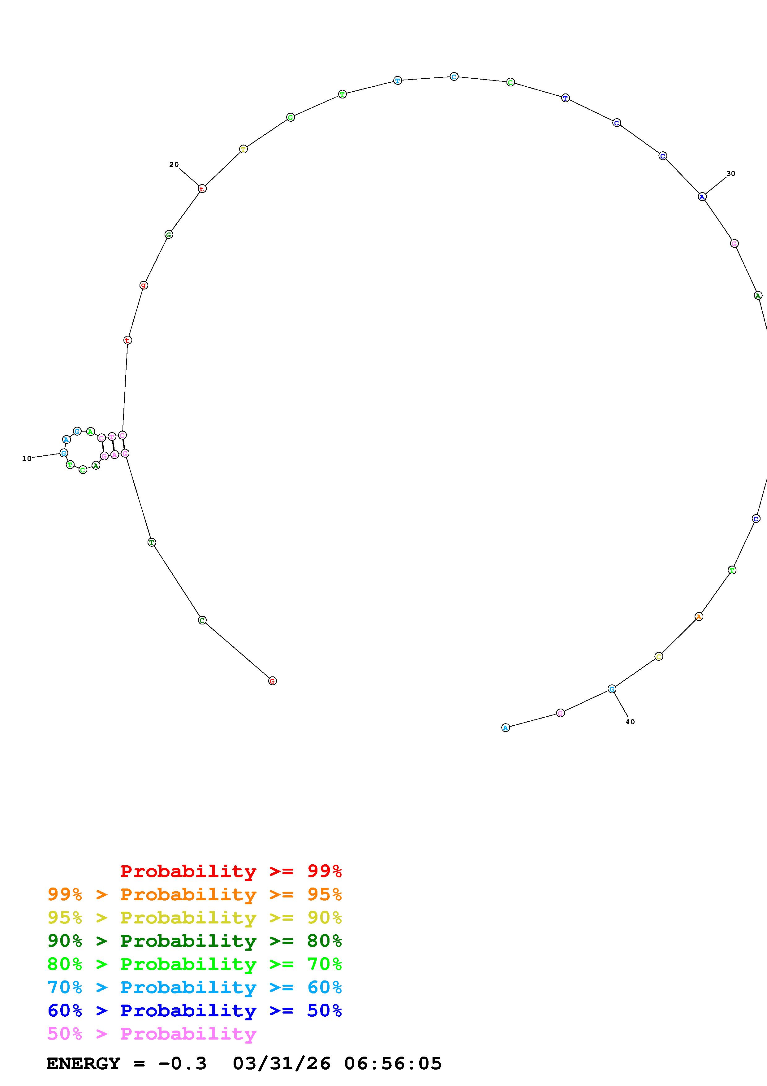 Fold Predict1.fasta Fold.ct --DNA --loop 30 --maximum 20 --percent 10 --temperature 310.15 --window 3