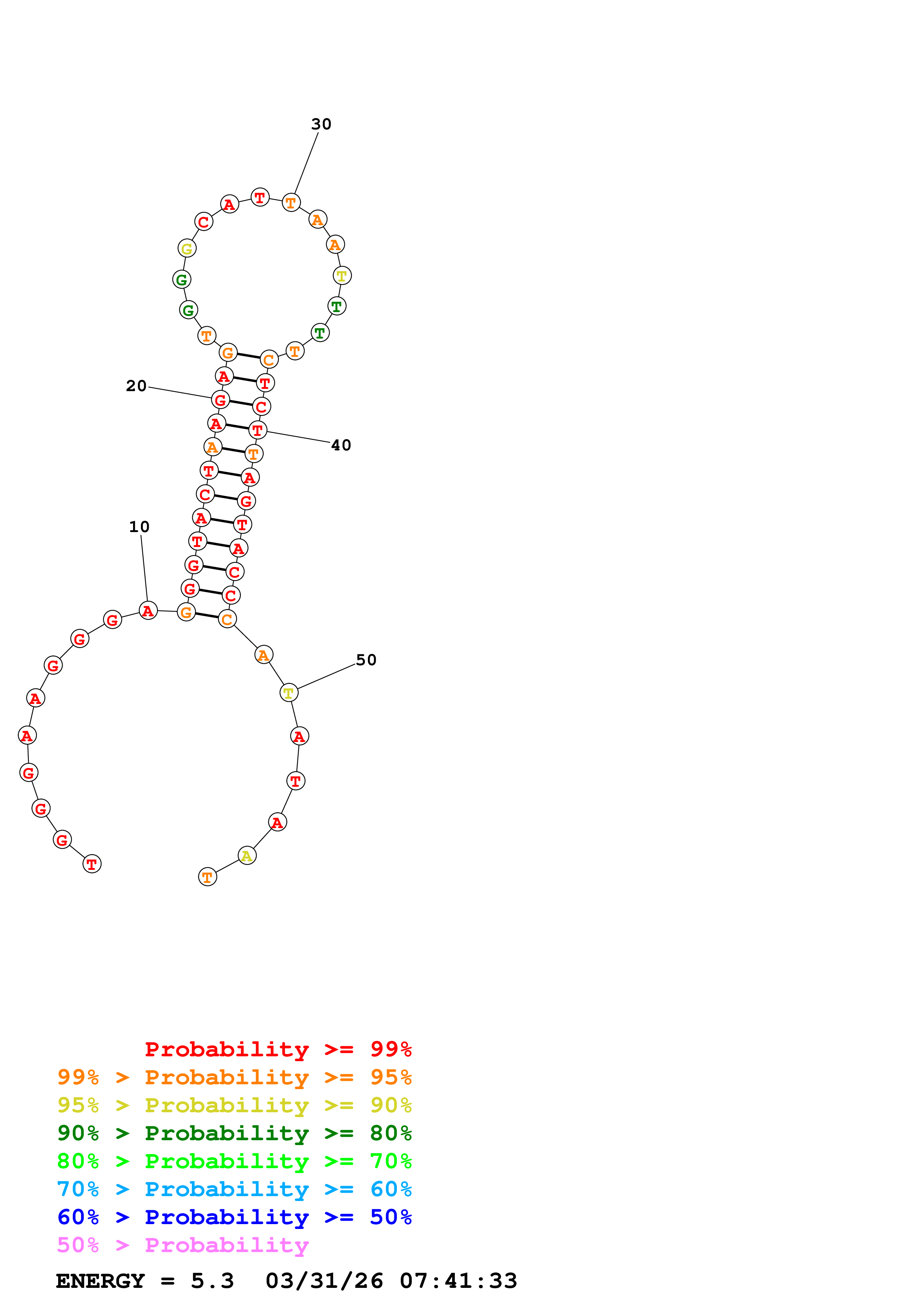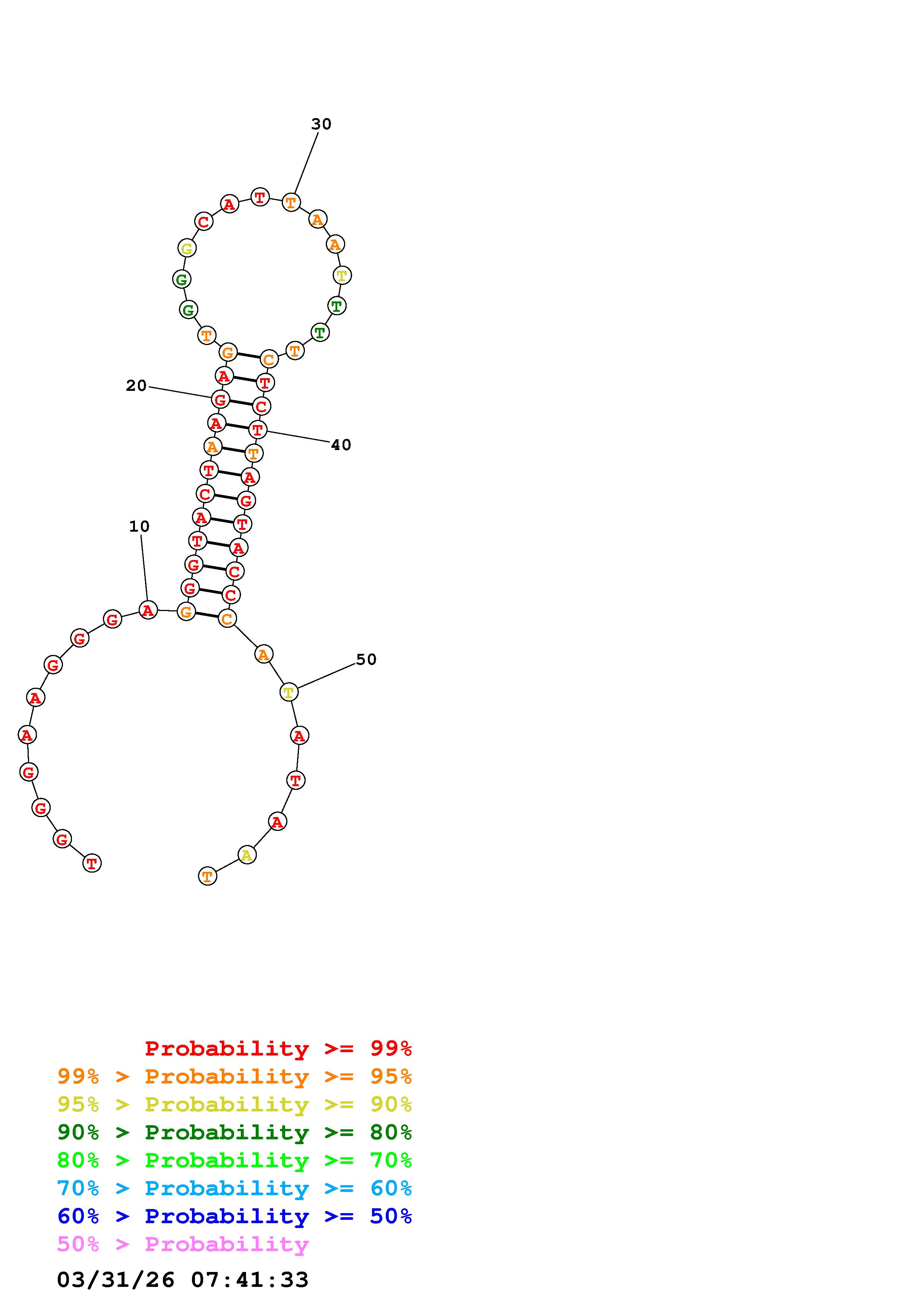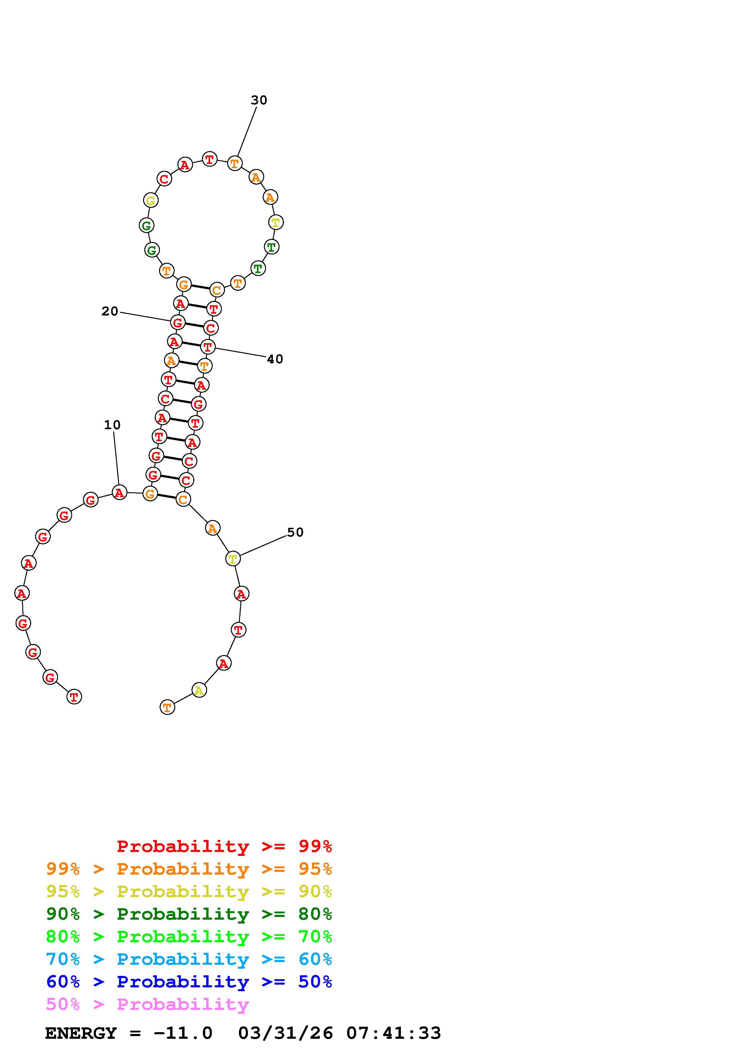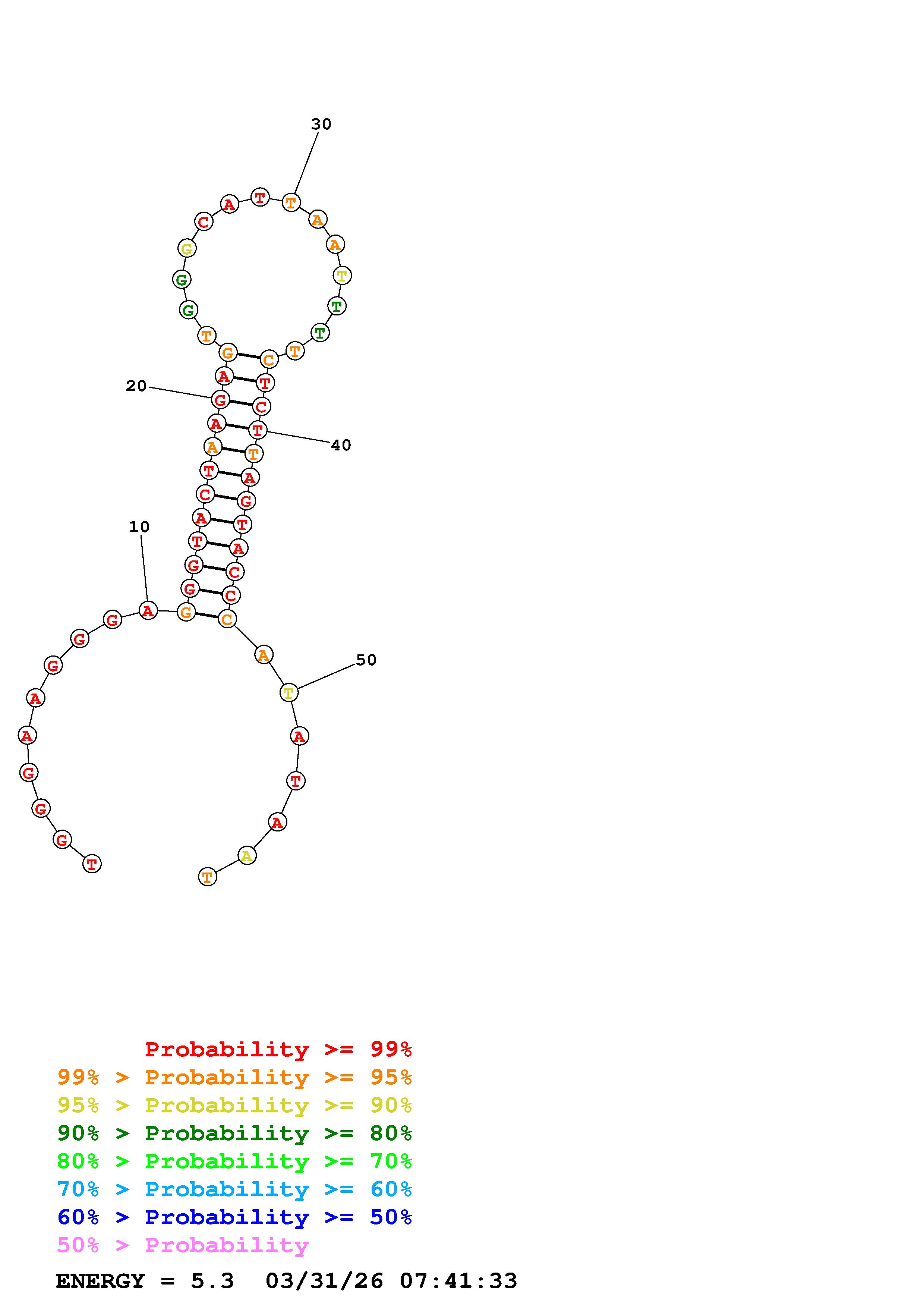 Fold Predict1.fasta Fold.ct --DNA --loop 30 --maximum 20 --percent 10 --temperature 310.15 --window 3