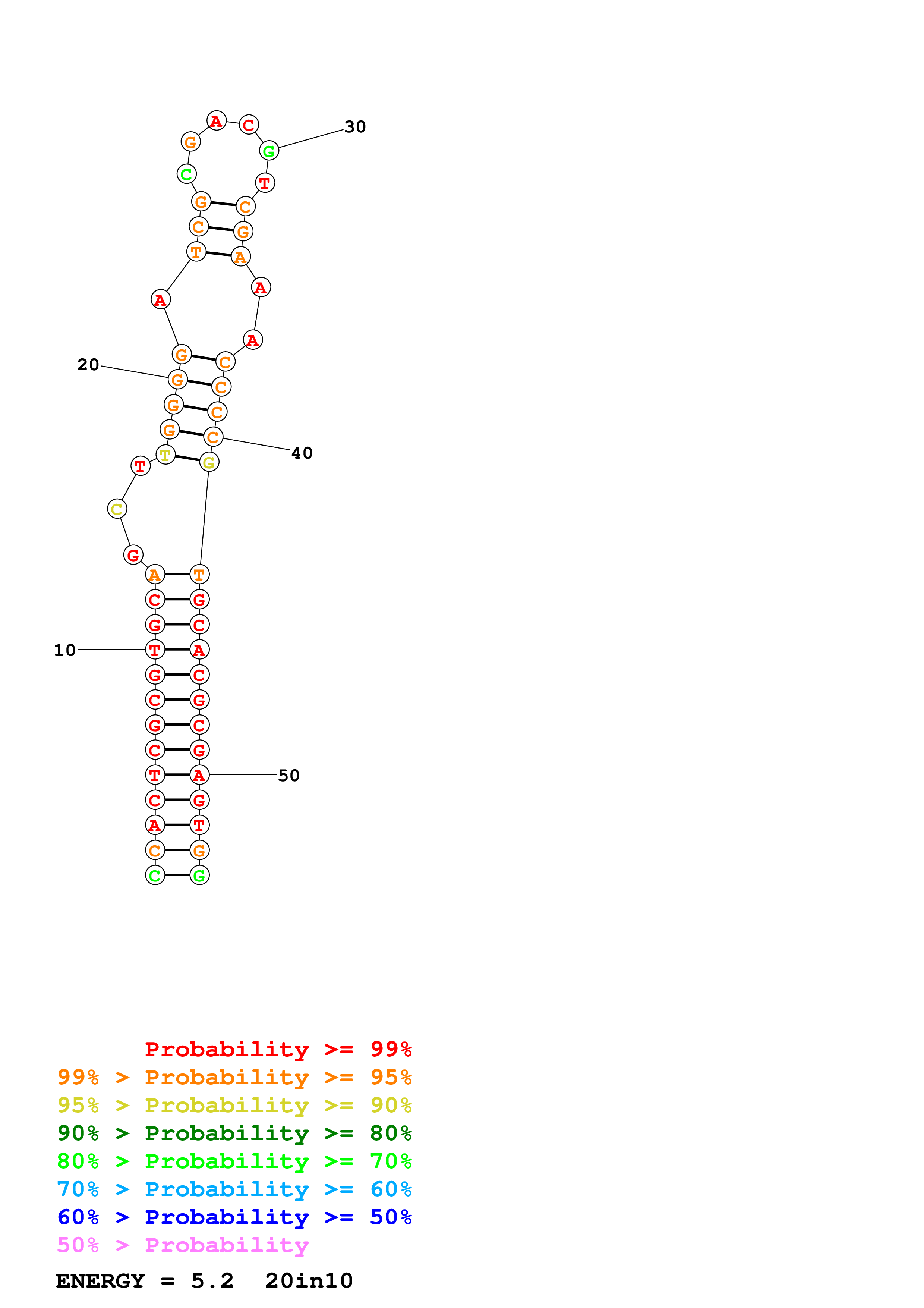 Fold Predict1.fasta Fold.ct --DNA --loop 30 --maximum 20 --percent 10 --temperature 310.15 --window 3