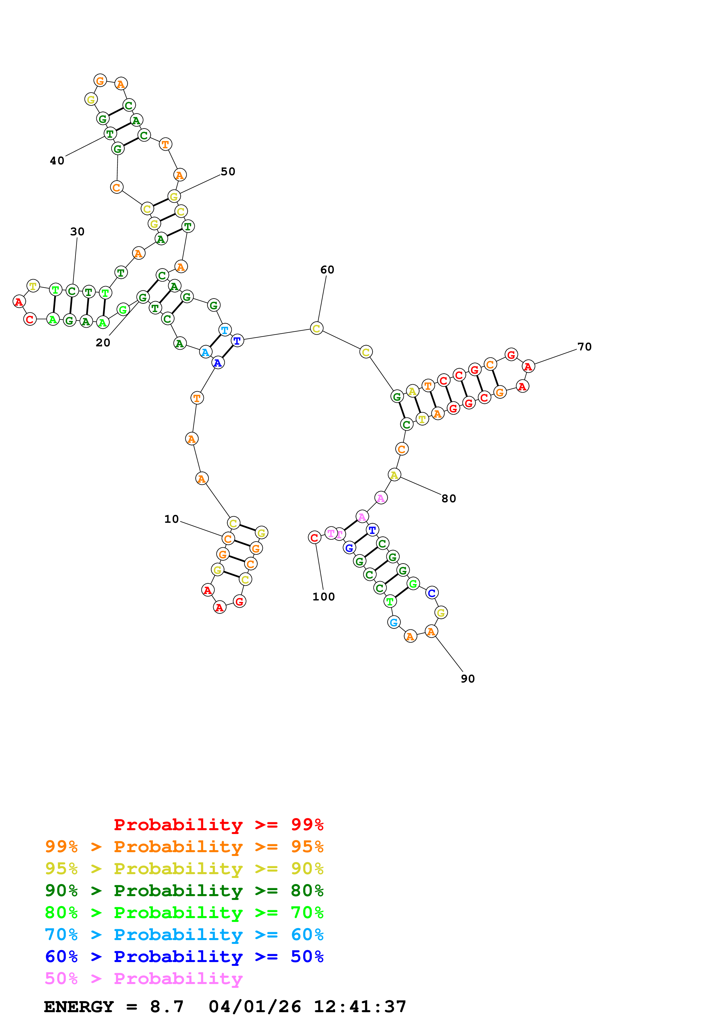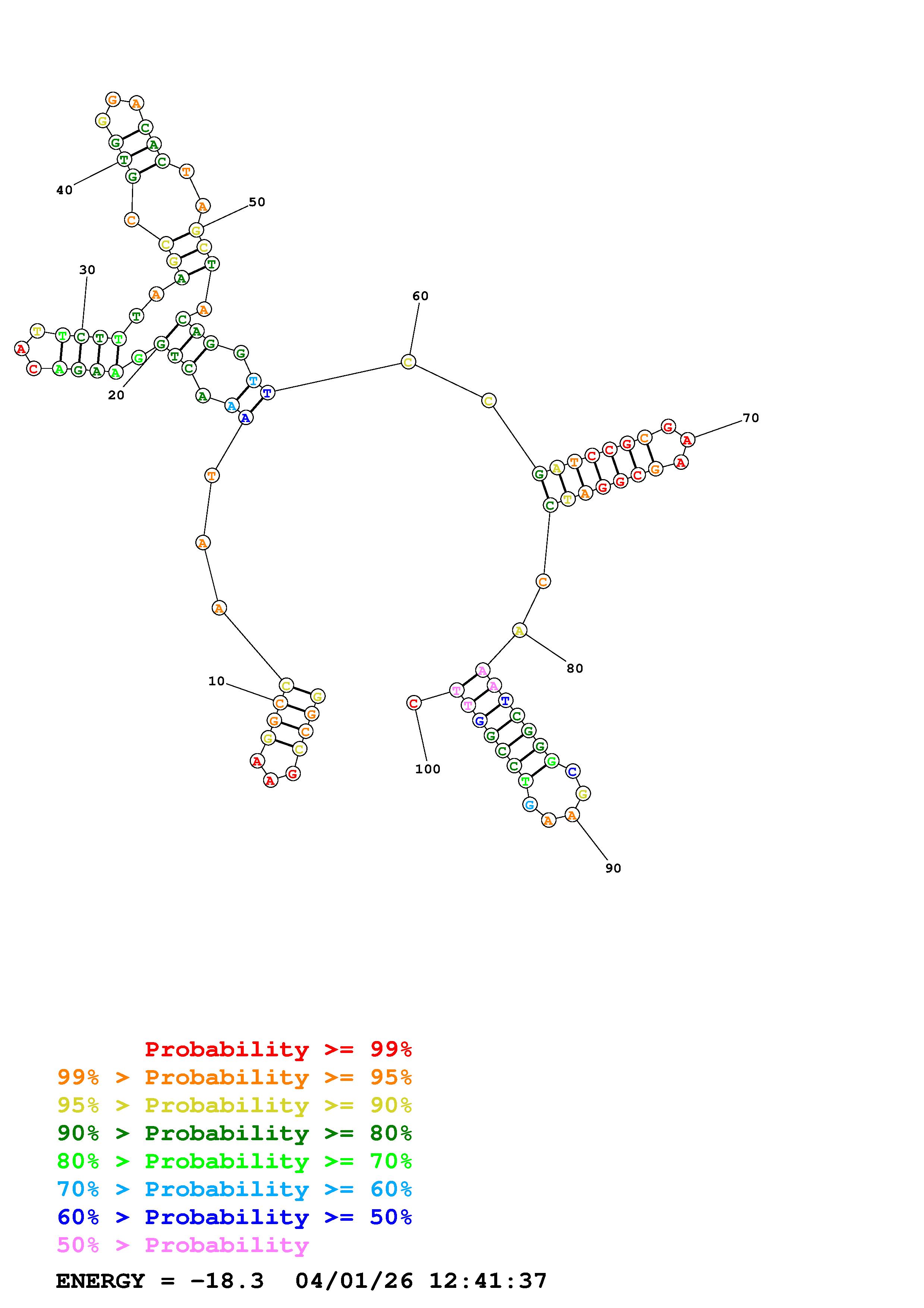 Fold Predict1.fasta Fold.ct --DNA --loop 30 --maximum 20 --percent 10 --temperature 310.15 --window 3