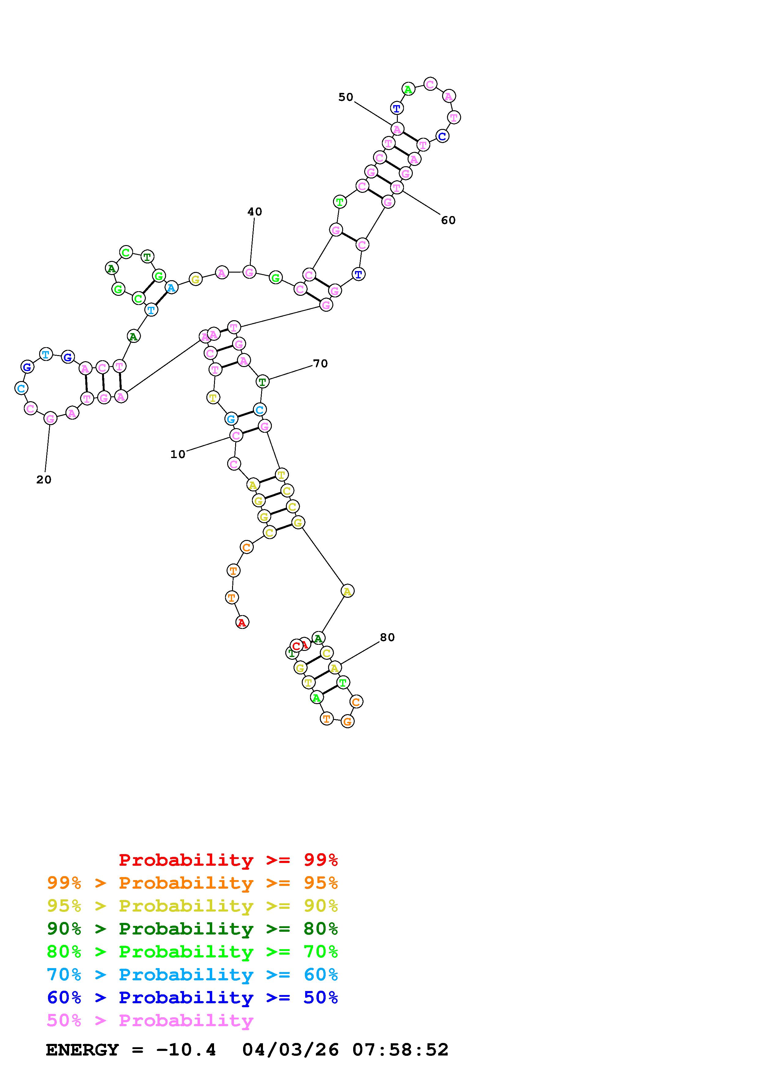 Fold Predict1.fasta Fold.ct --DNA --loop 30 --maximum 20 --percent 10 --temperature 310.15 --window 3