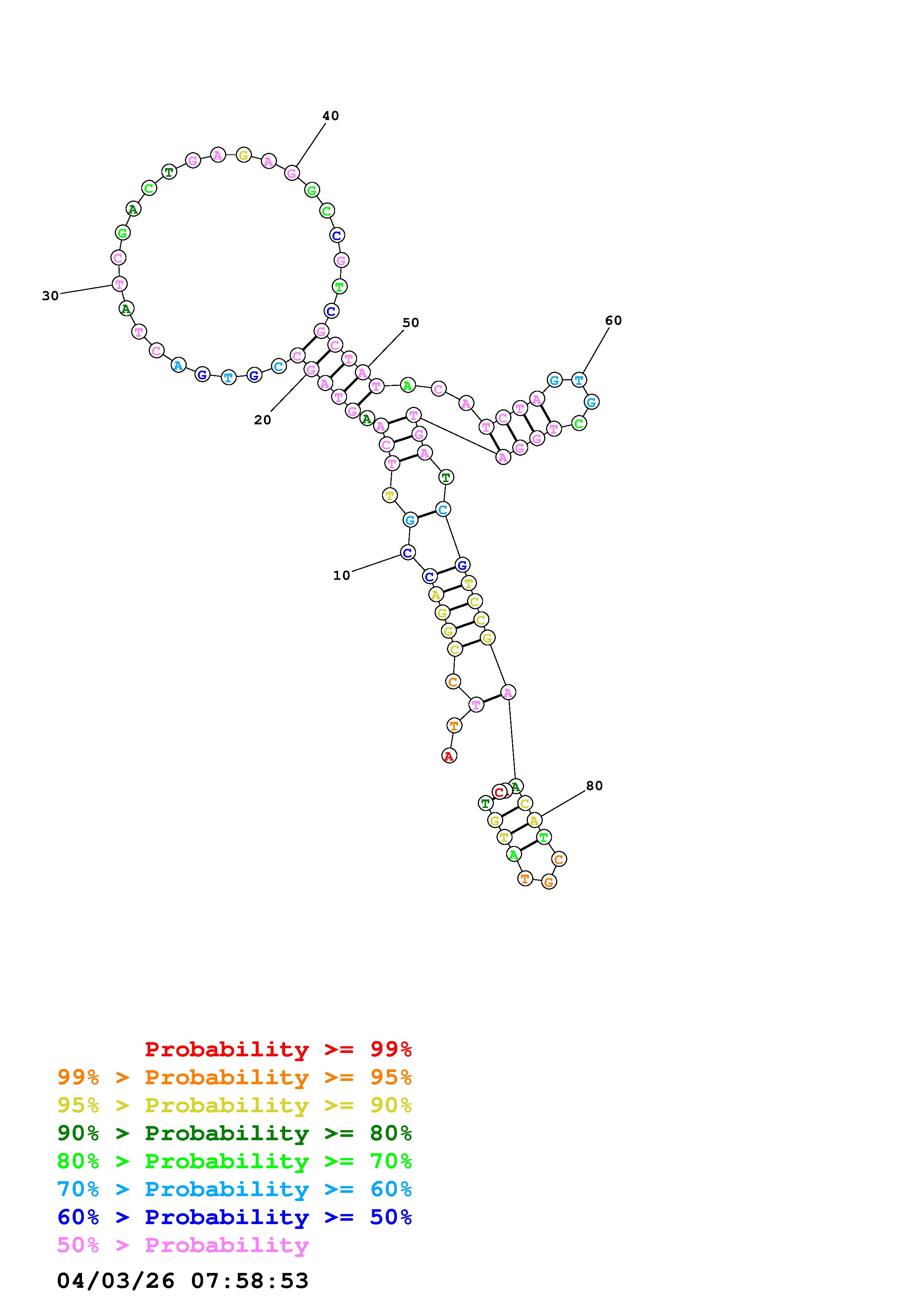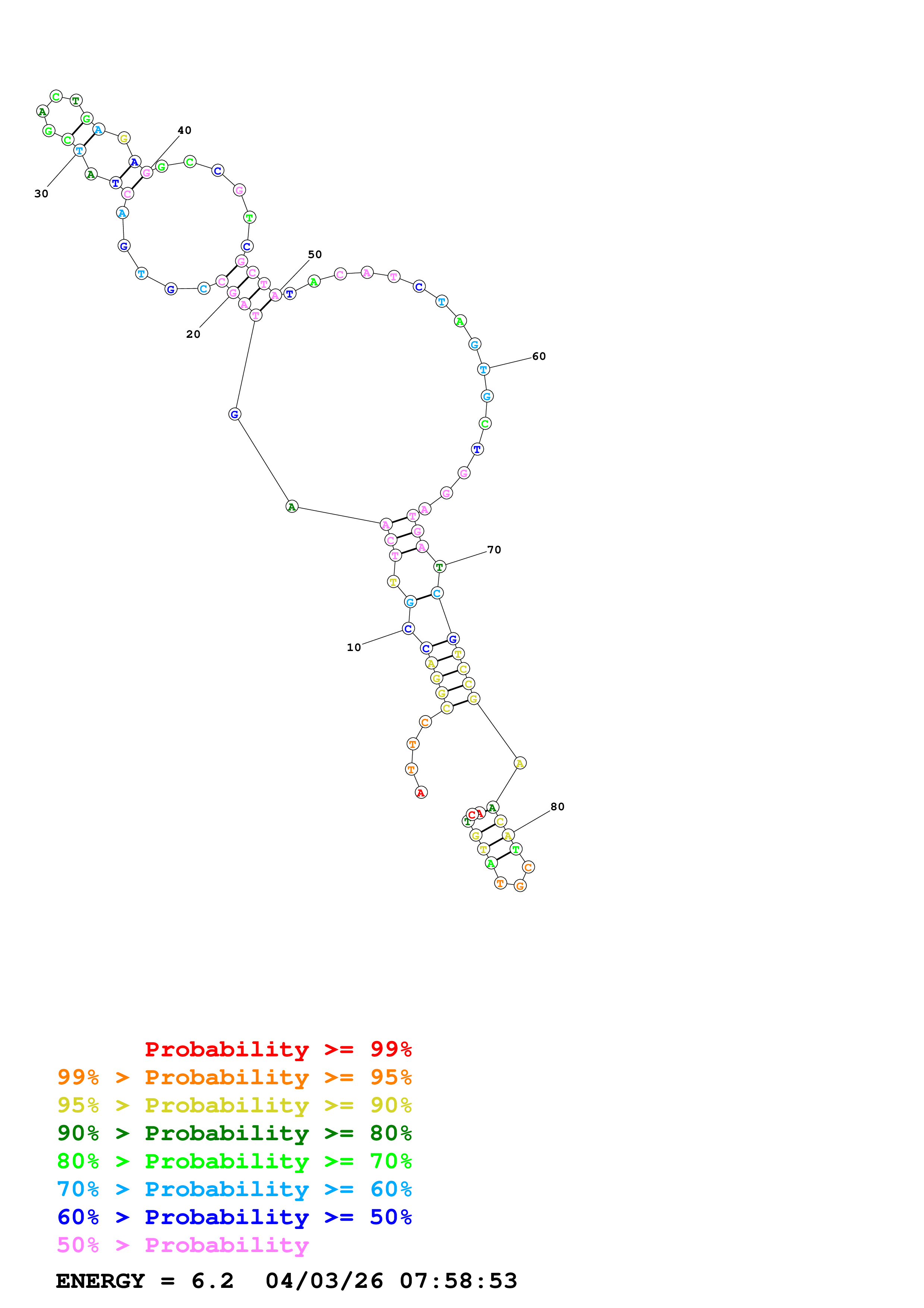 Fold Predict1.fasta Fold.ct --DNA --loop 30 --maximum 20 --percent 10 --temperature 310.15 --window 3