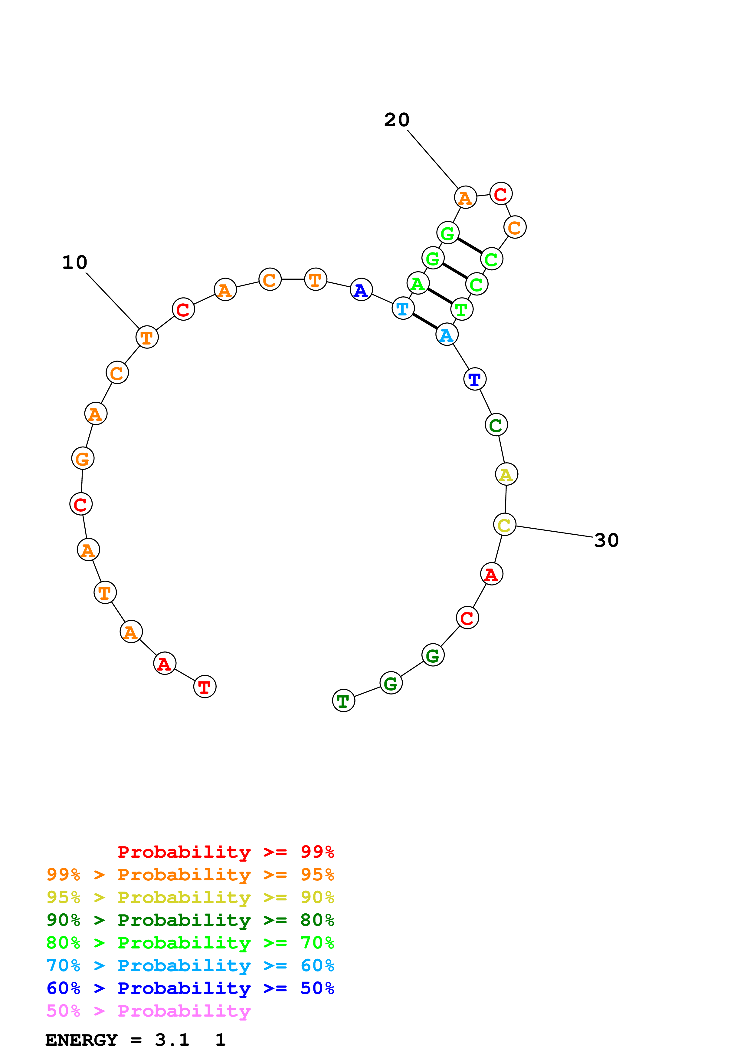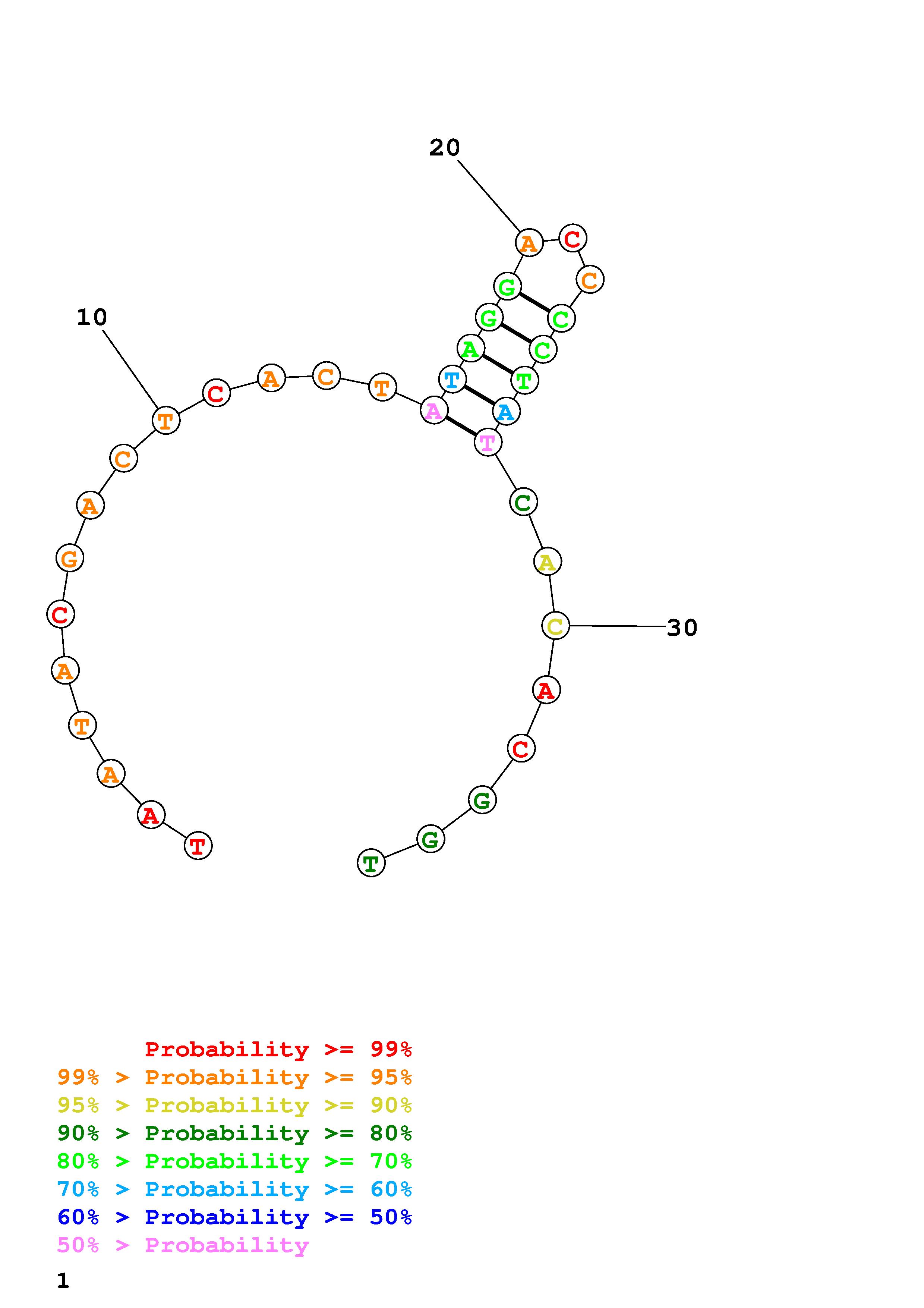 Fold Predict1.fasta Fold.ct --DNA --loop 30 --maximum 20 --percent 10 --temperature 330.15 --window 3