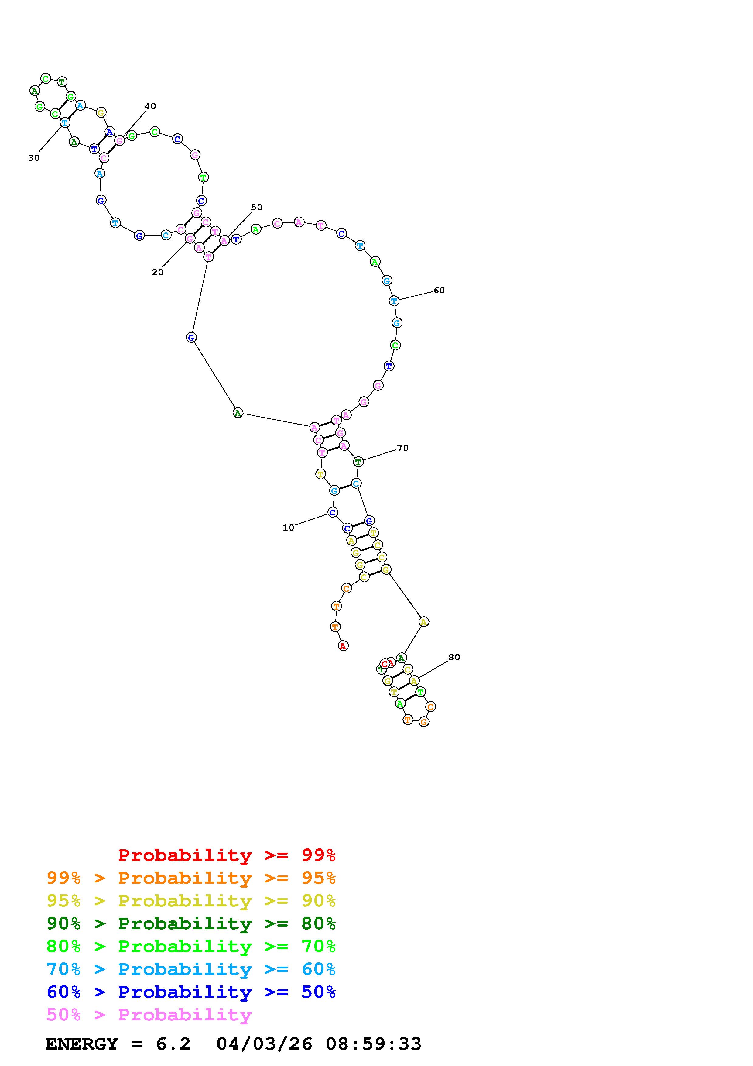 Fold Predict1.fasta Fold.ct --DNA --loop 30 --maximum 20 --percent 10 --temperature 310.15 --window 3