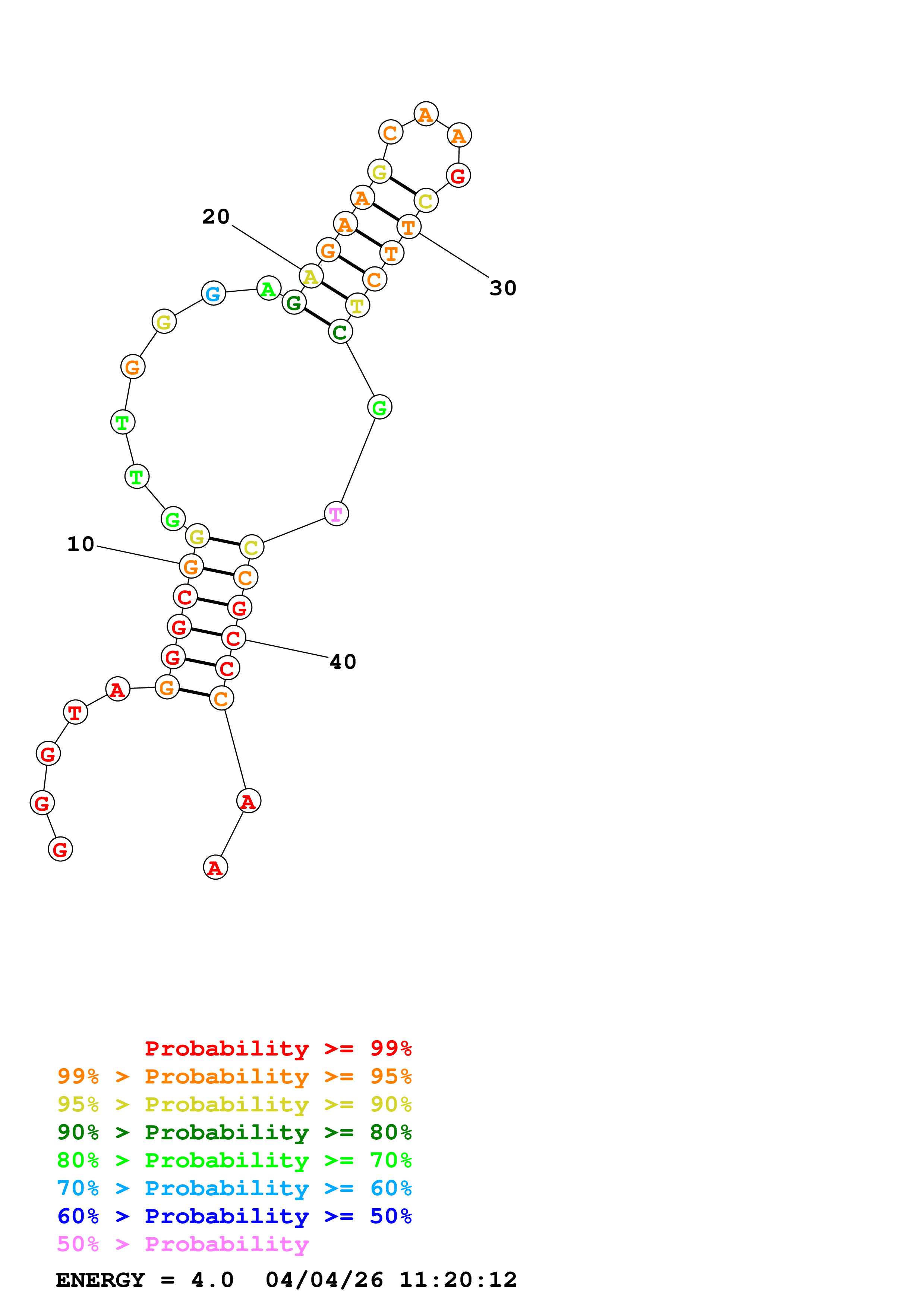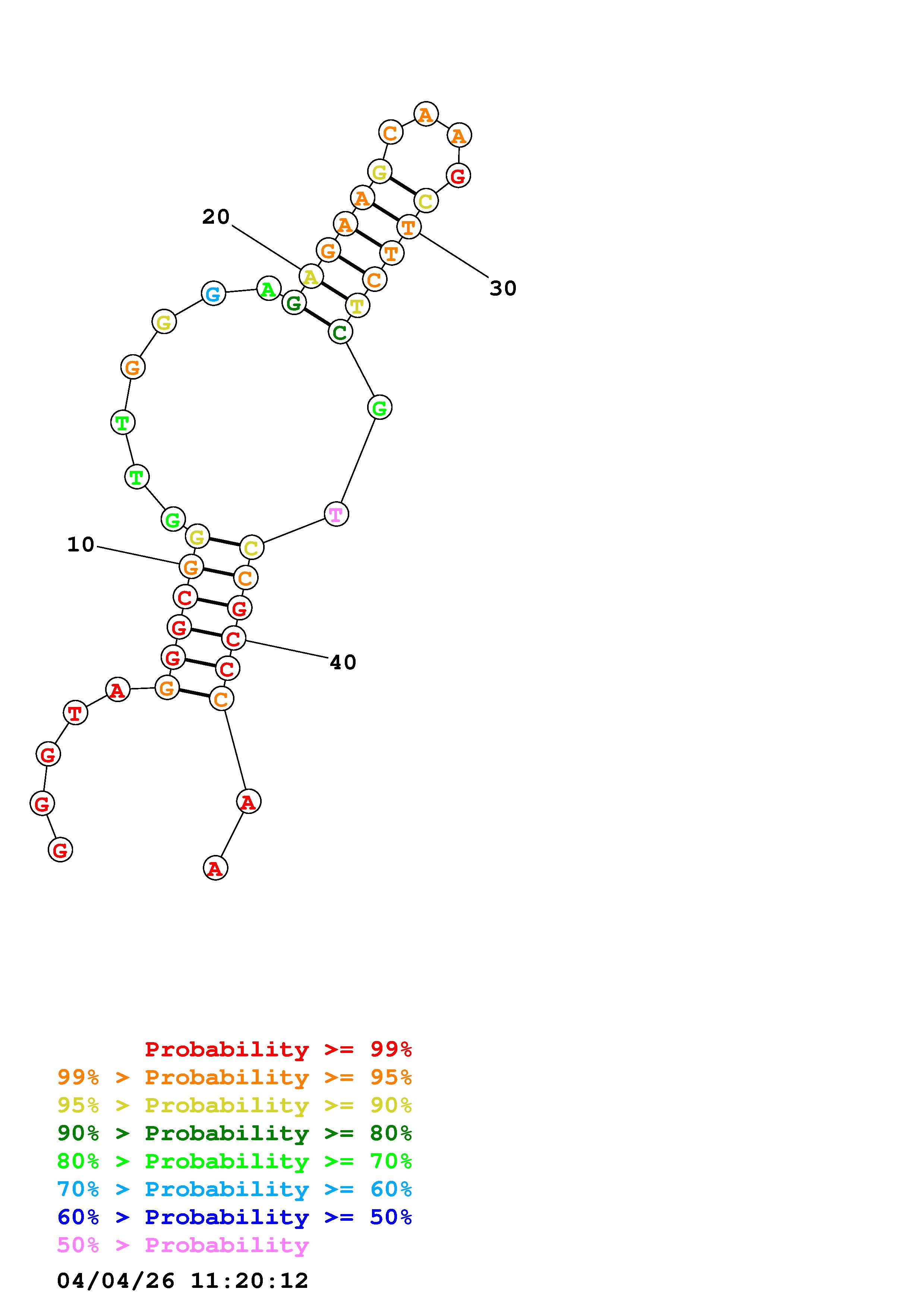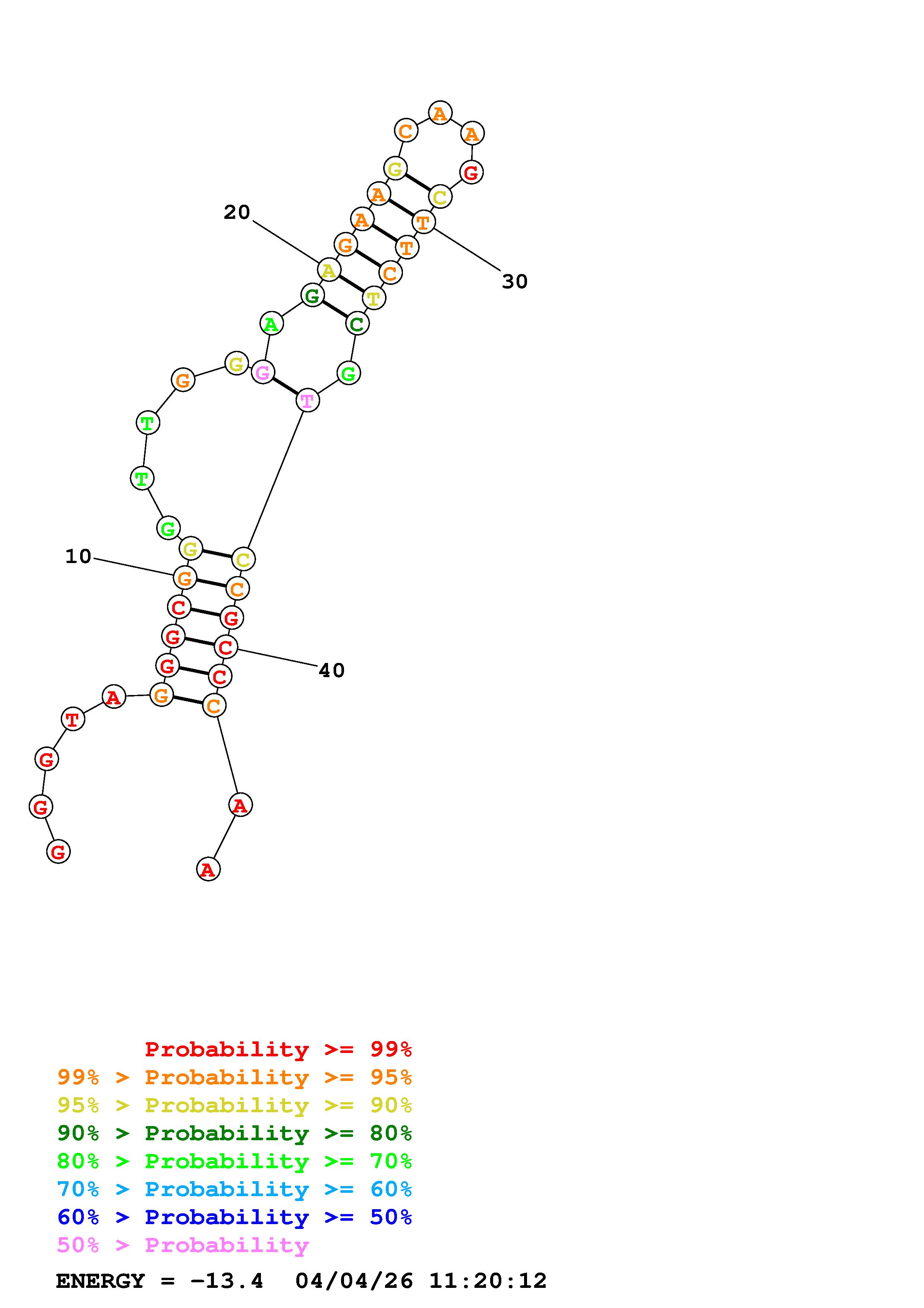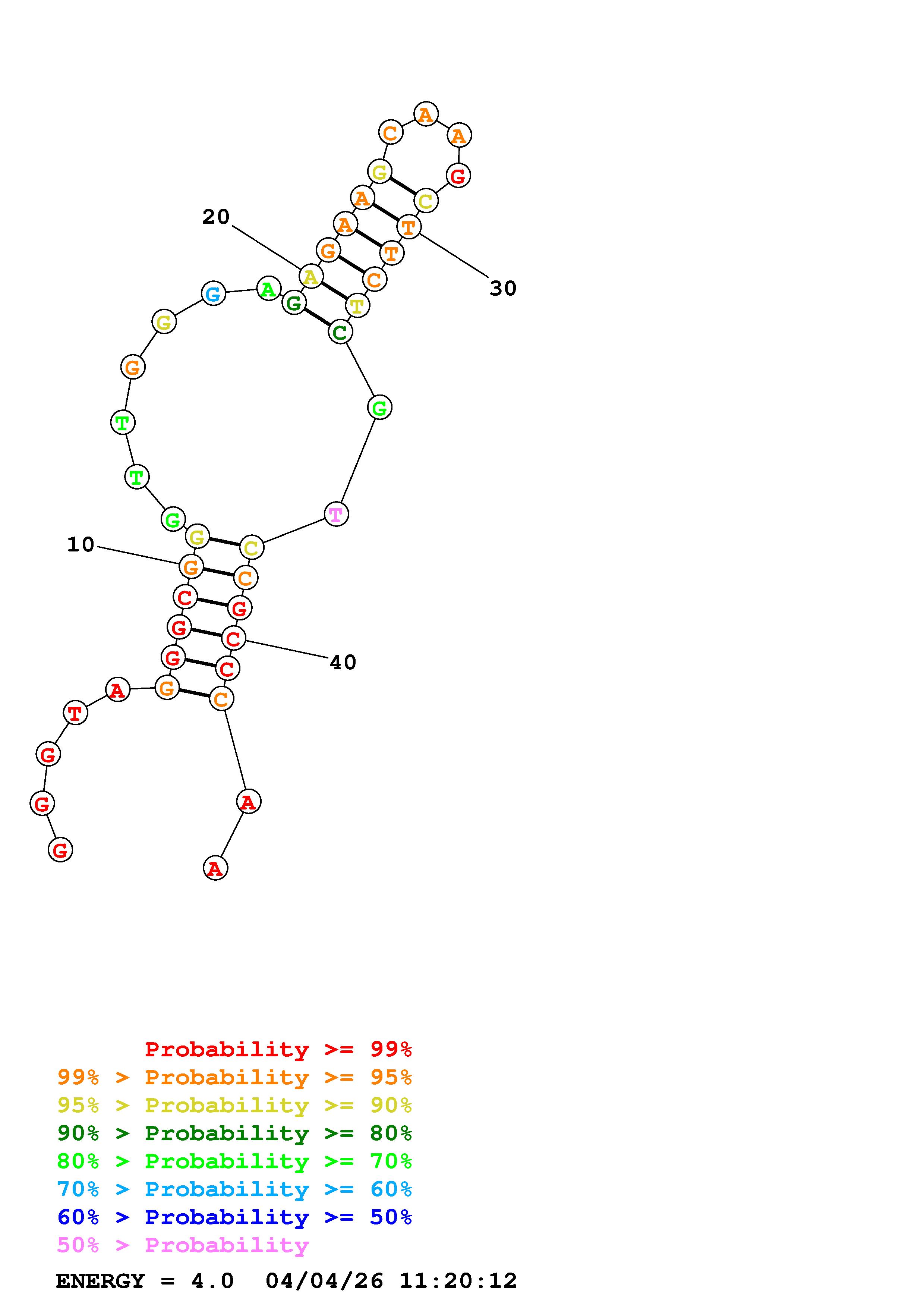 Fold Predict1.fasta Fold.ct --DNA --loop 30 --maximum 20 --percent 10 --temperature 298.15 --window 3