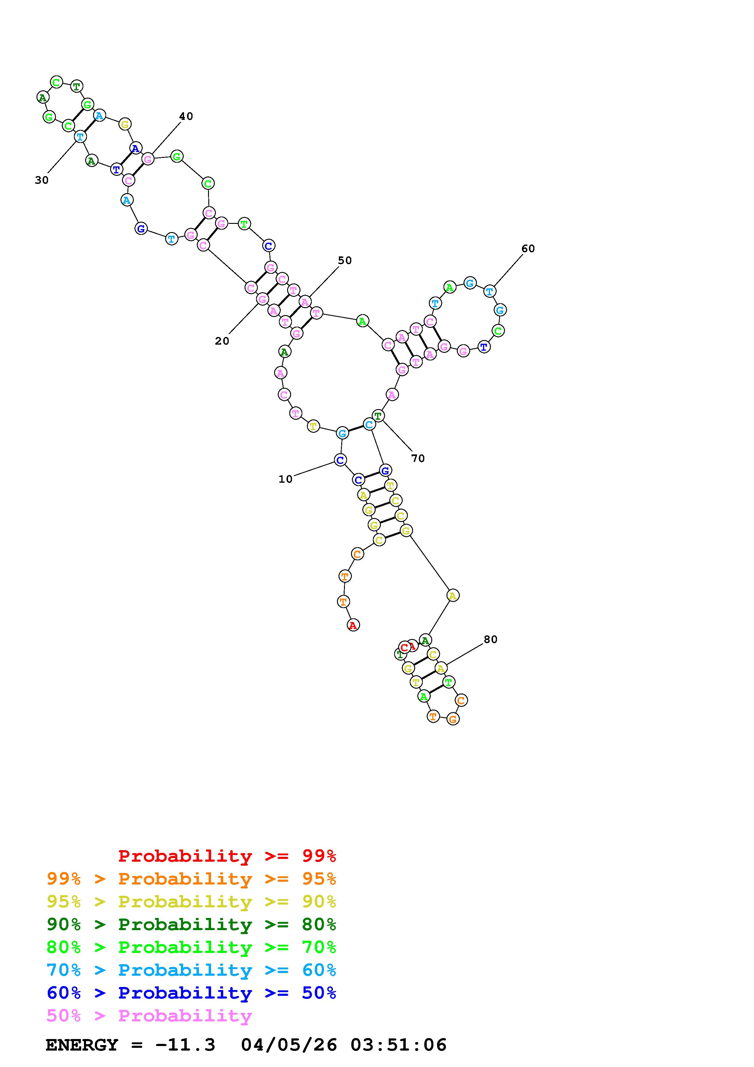 Fold Predict1.fasta Fold.ct --DNA --loop 30 --maximum 20 --percent 10 --temperature 310.15 --window 3