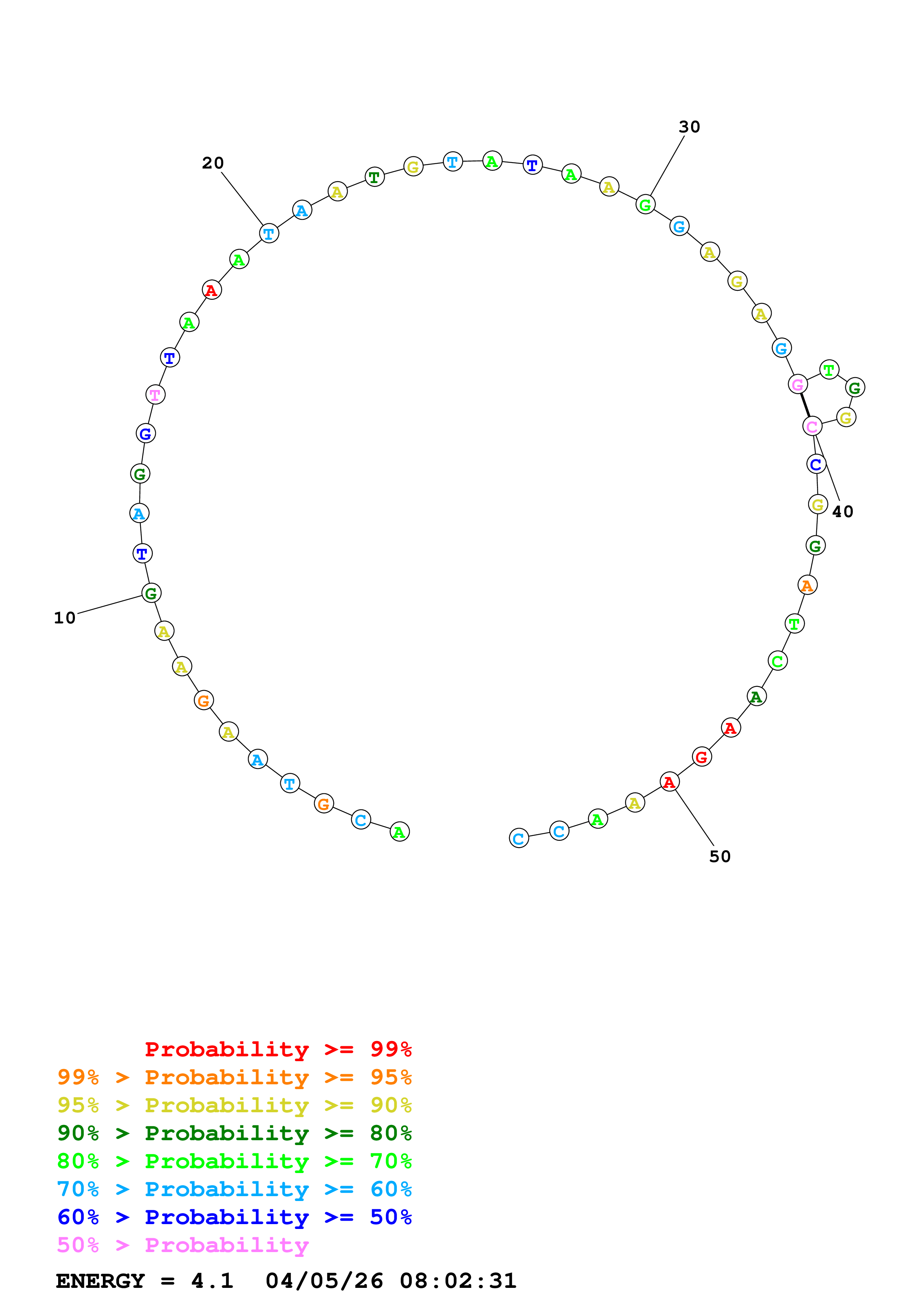 (Generate a structure or structures composed of highly probable base pairs. This is an alternative method for structure prediction that may have higher fidelity in structure prediction.)