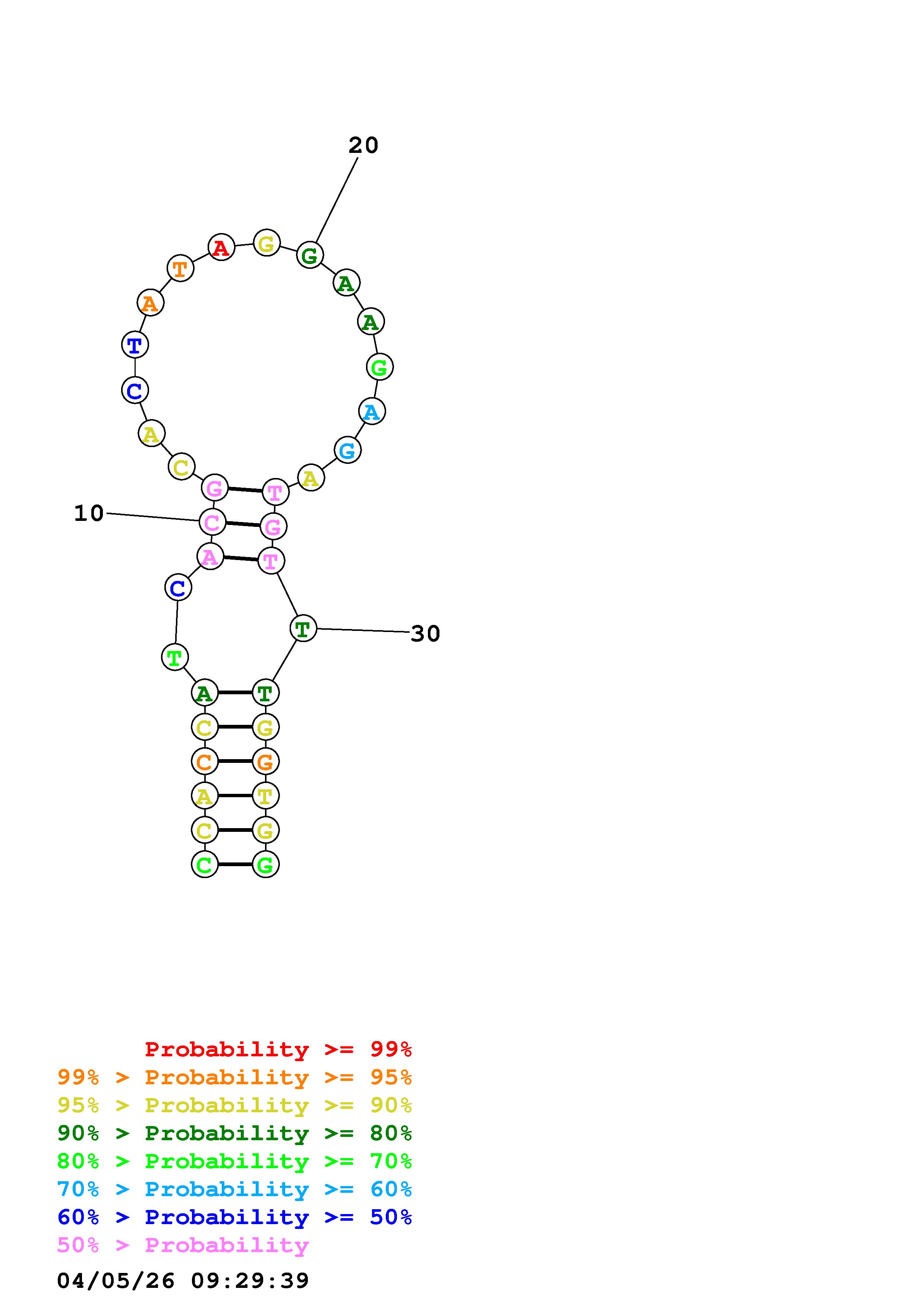 Fold Predict1.fasta Fold.ct --DNA --loop 30 --maximum 20 --percent 10 --temperature 310.15 --window 3