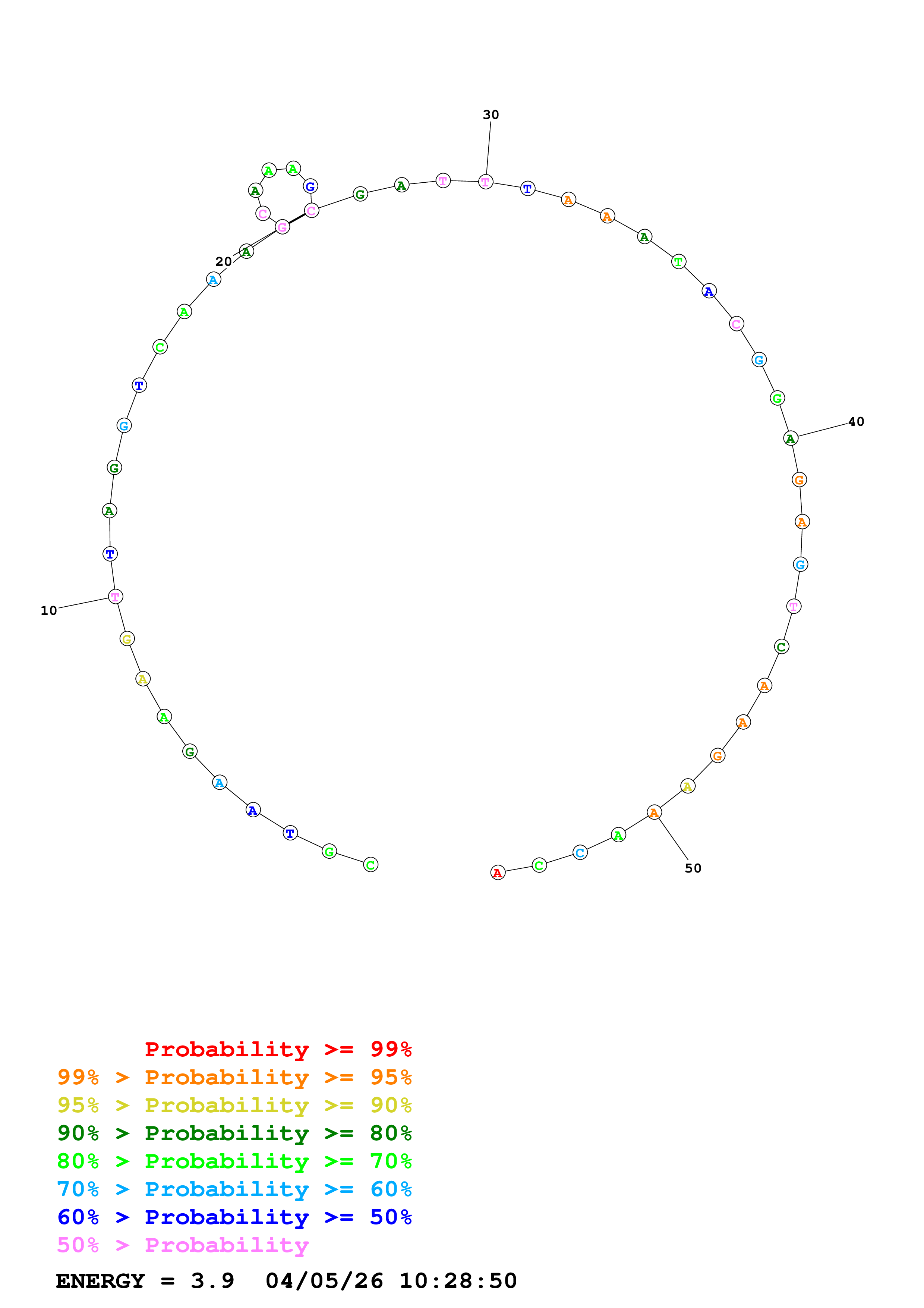 (Generate a structure or structures composed of highly probable base pairs. This is an alternative method for structure prediction that may have higher fidelity in structure prediction.)