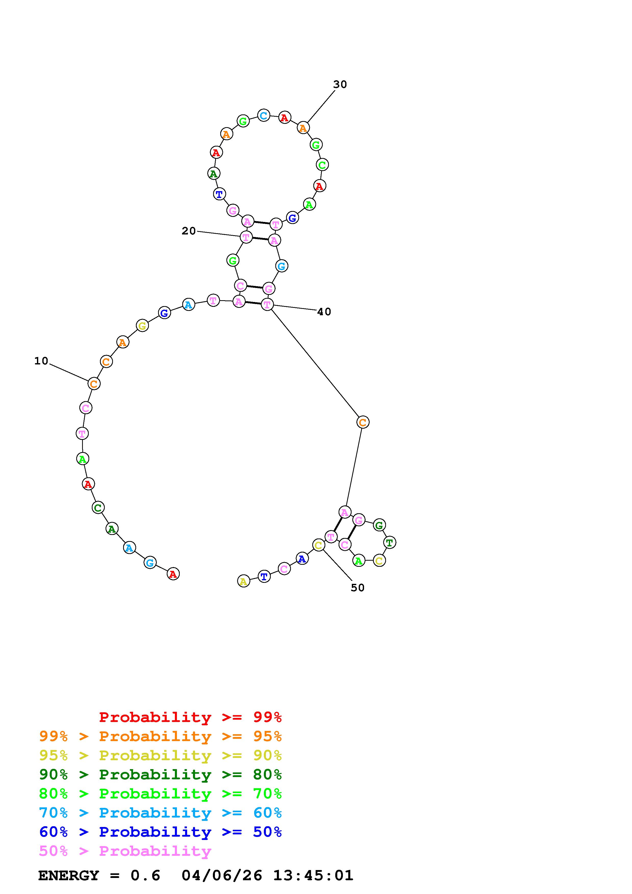 Fold Predict1.fasta Fold.ct --DNA --loop 30 --maximum 20 --percent 10 --temperature 310.15 --window 3