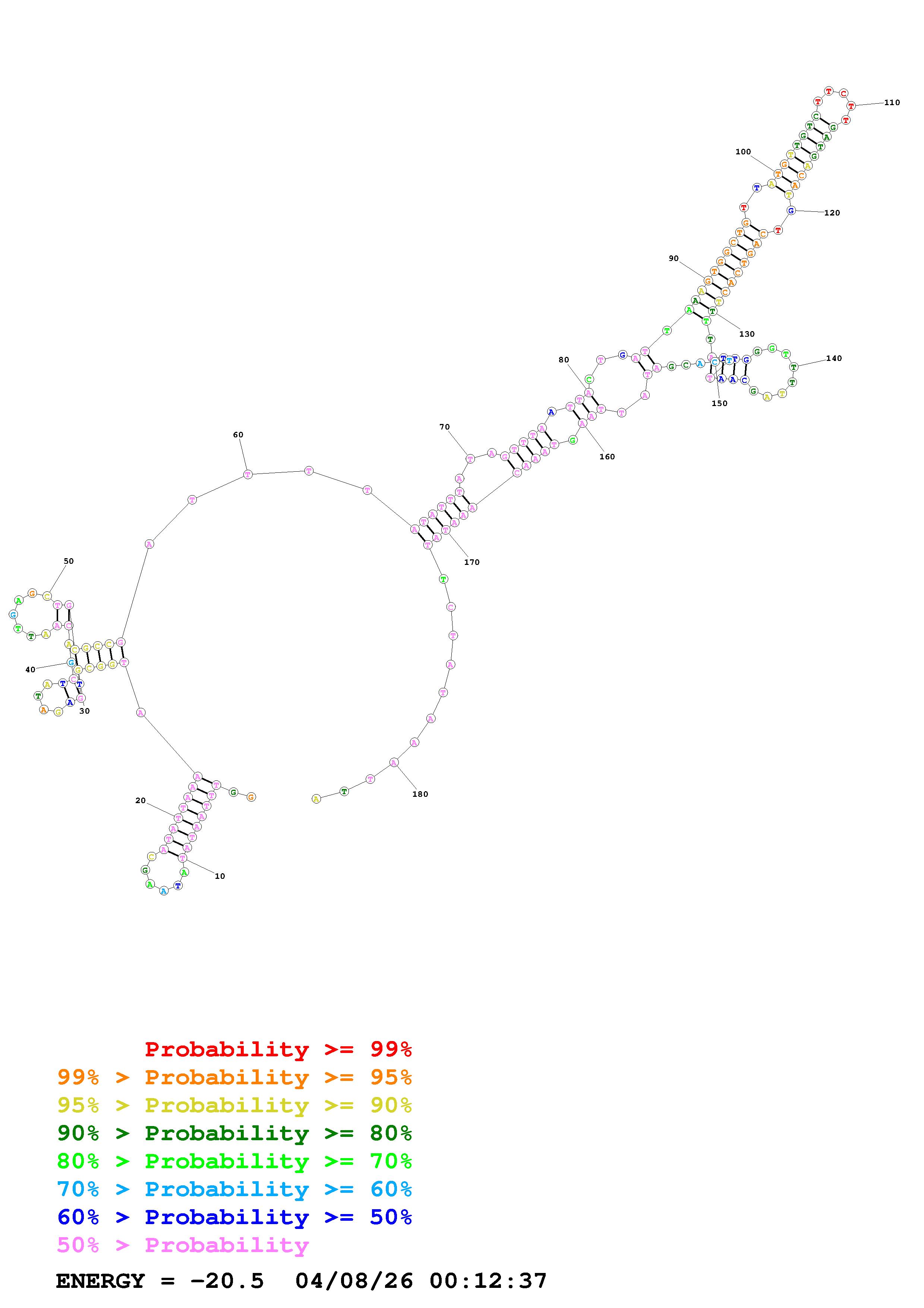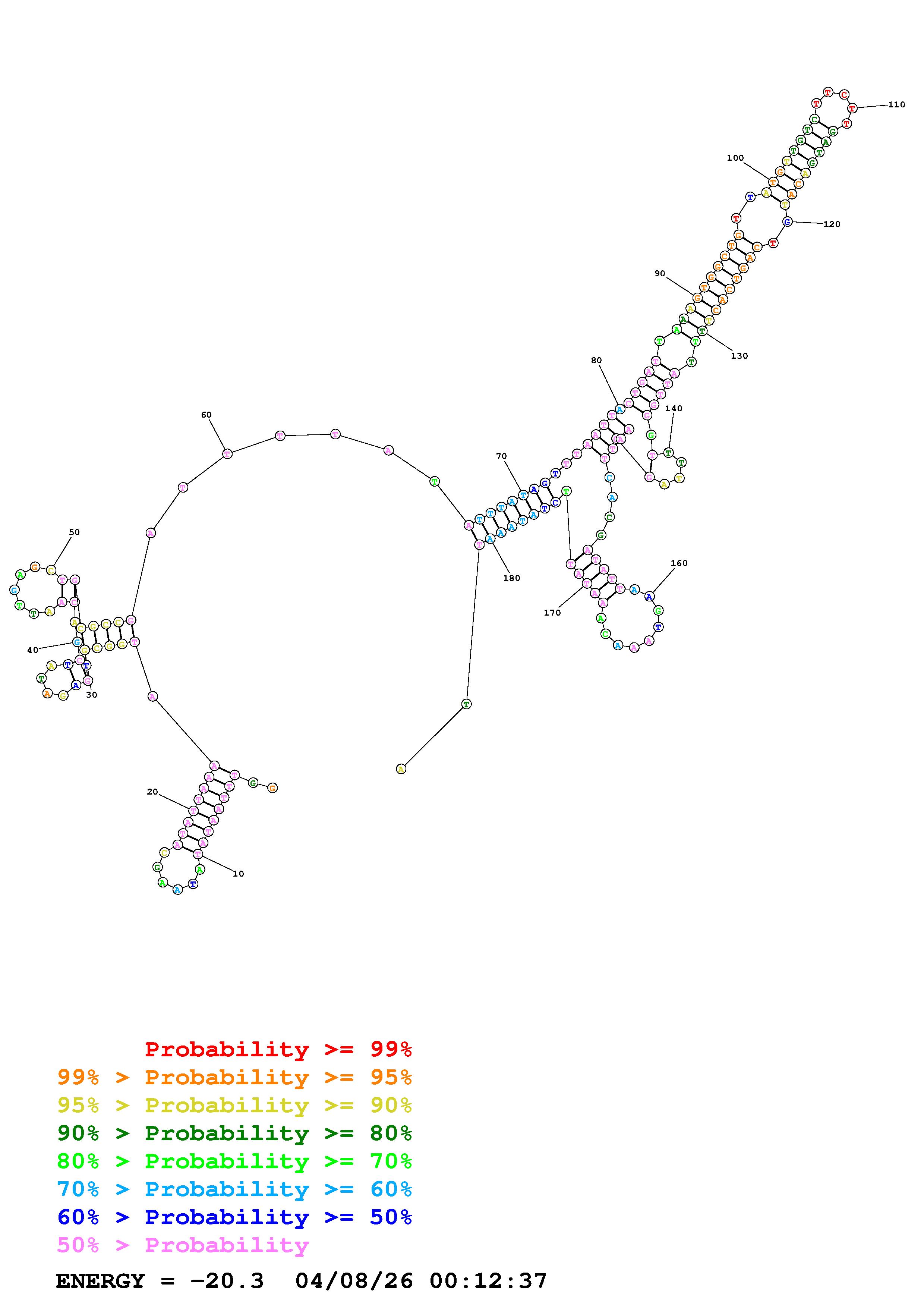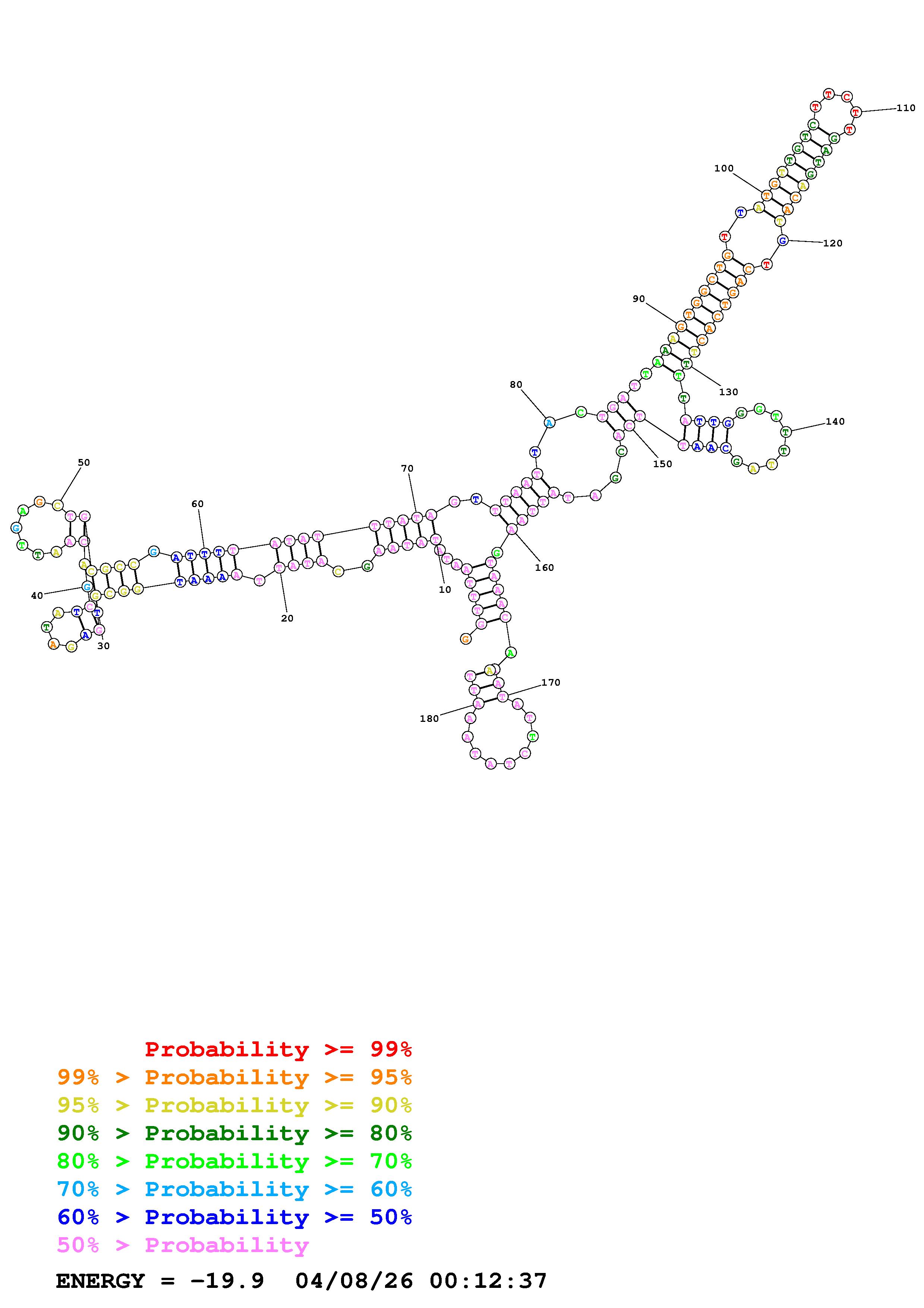 Fold Predict1.fasta Fold.ct --DNA --loop 30 --maximum 20 --percent 10 --temperature 310.15 --window 3