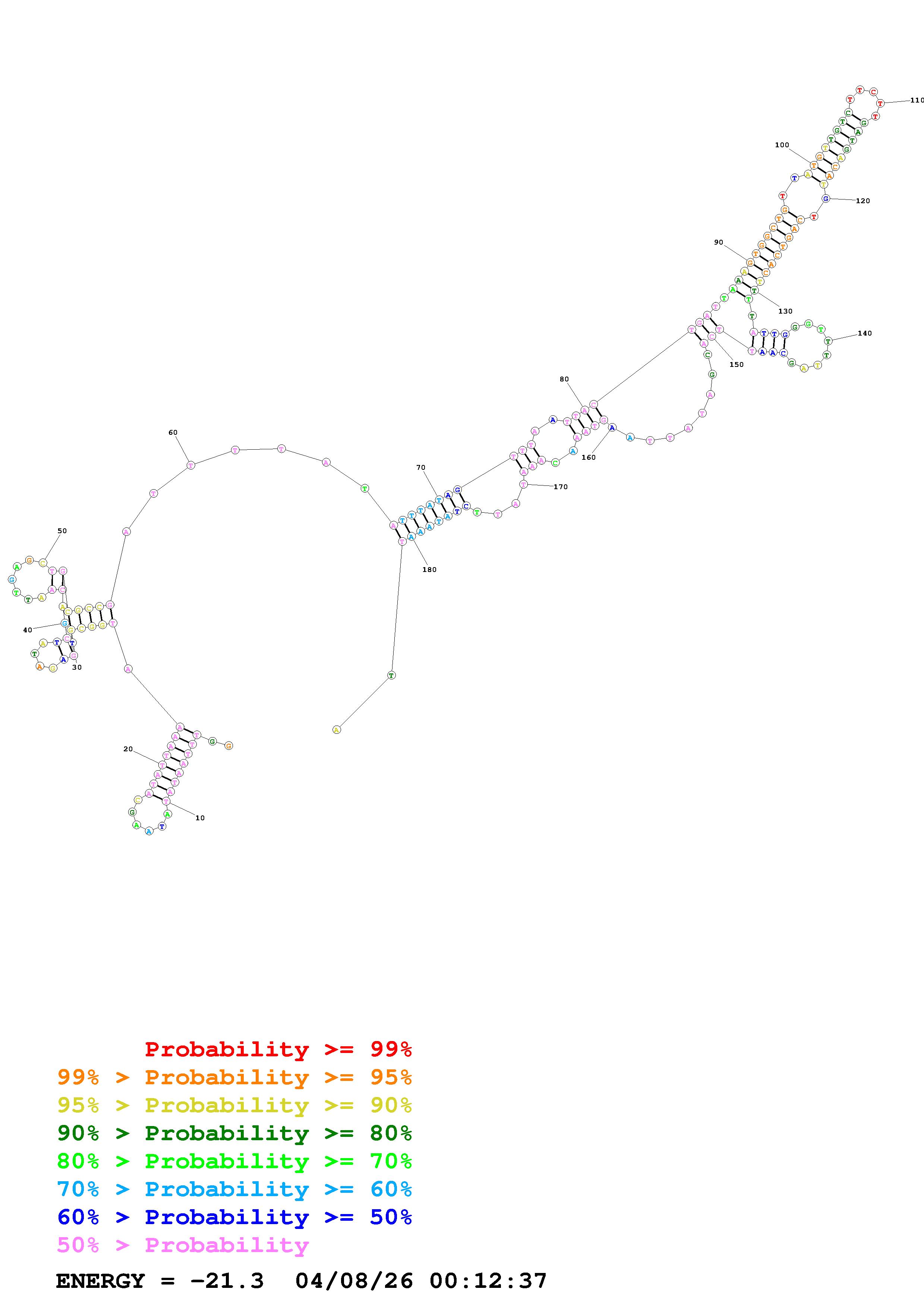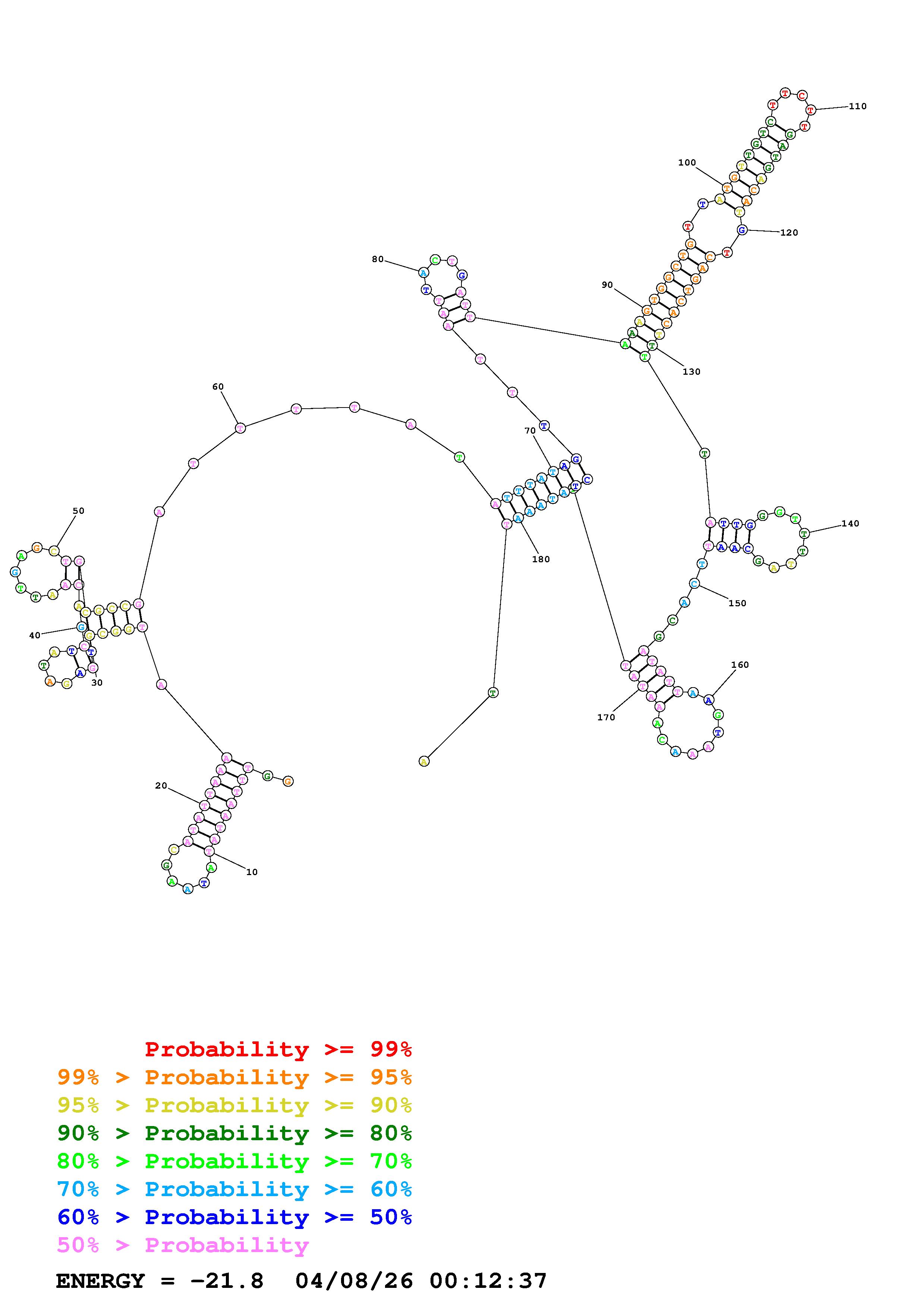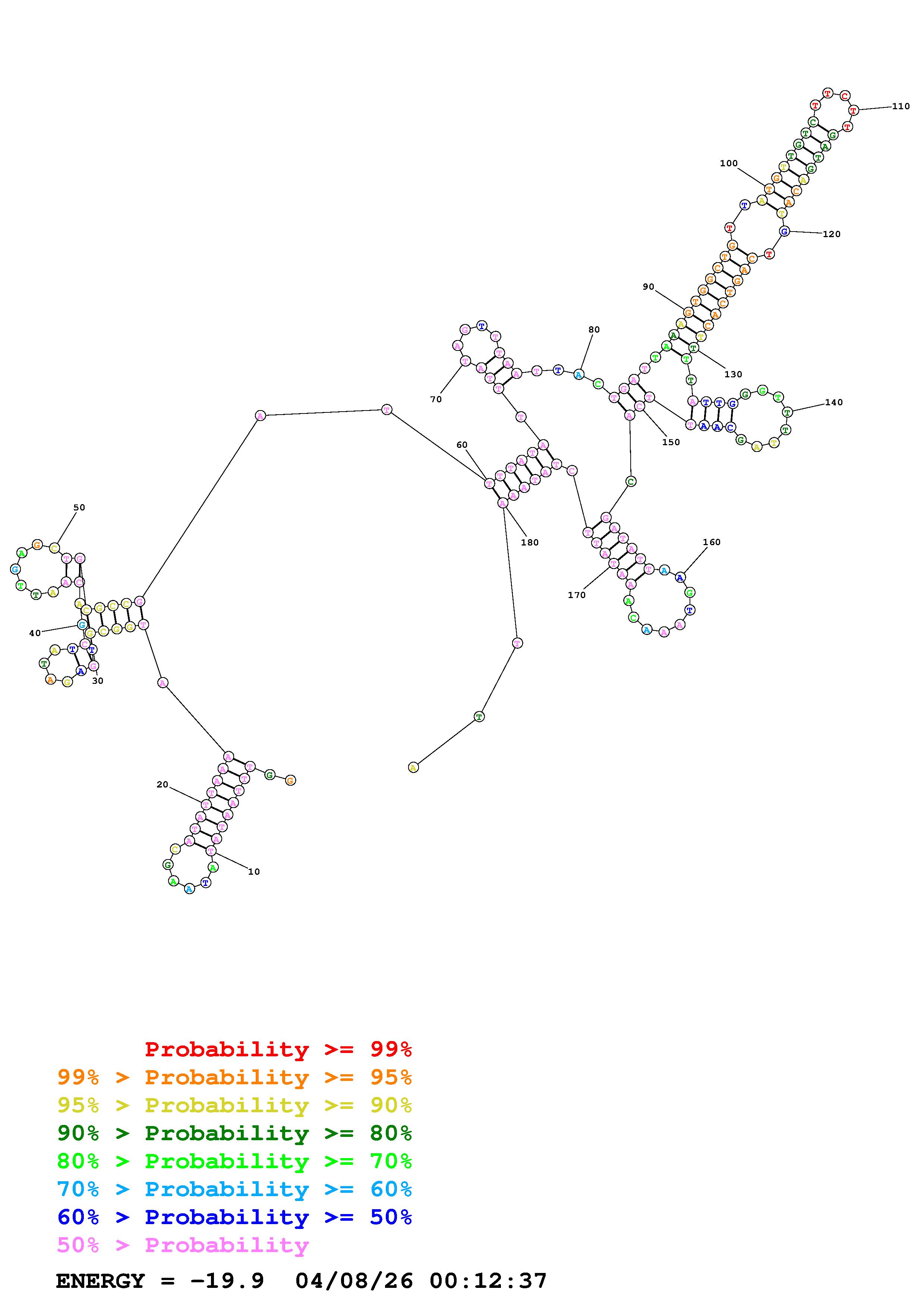 Fold Predict1.fasta Fold.ct --DNA --loop 30 --maximum 20 --percent 10 --temperature 310.15 --window 3