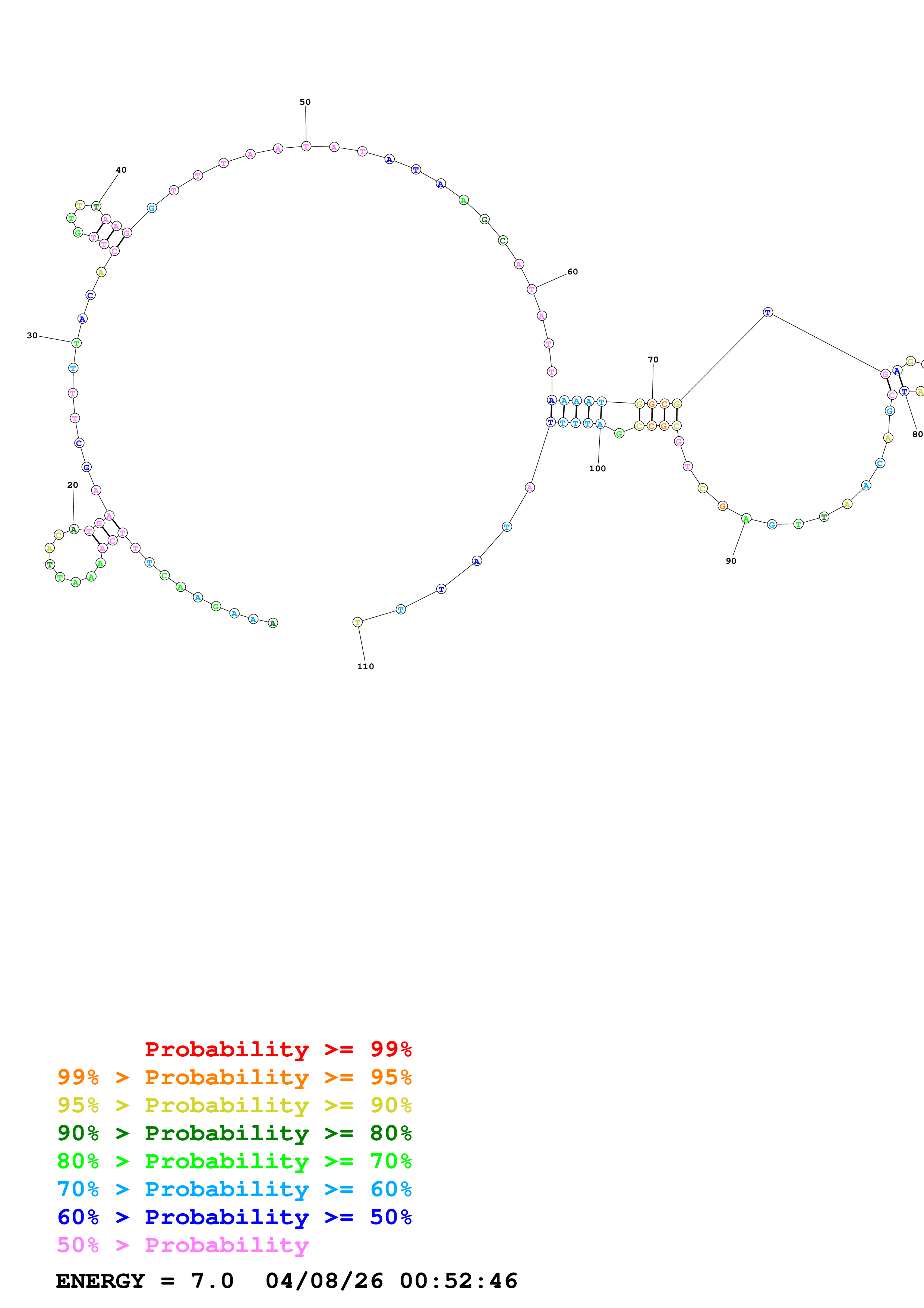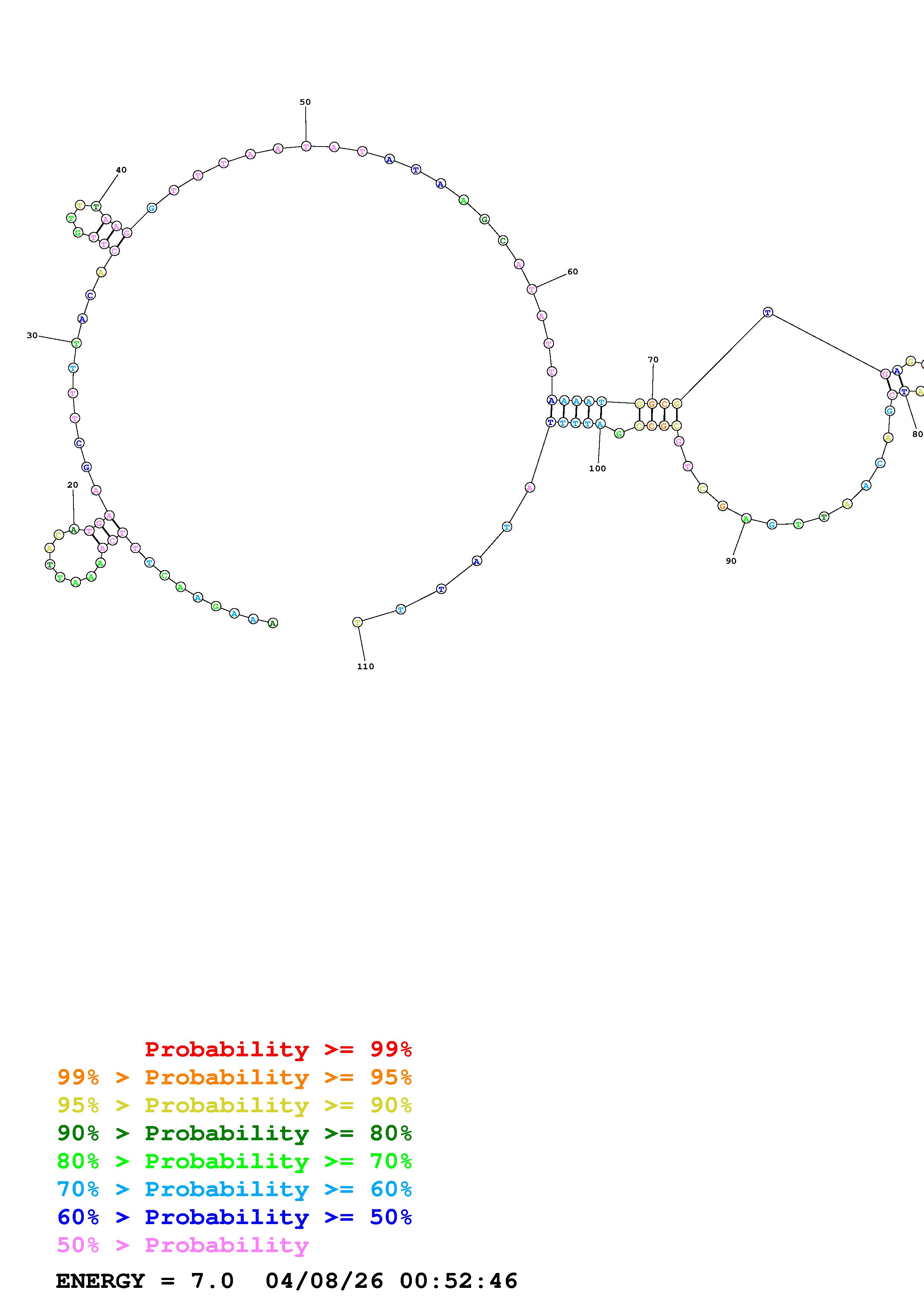 Fold Predict1.fasta Fold.ct --DNA --loop 30 --maximum 20 --percent 10 --temperature 310.15 --window 3