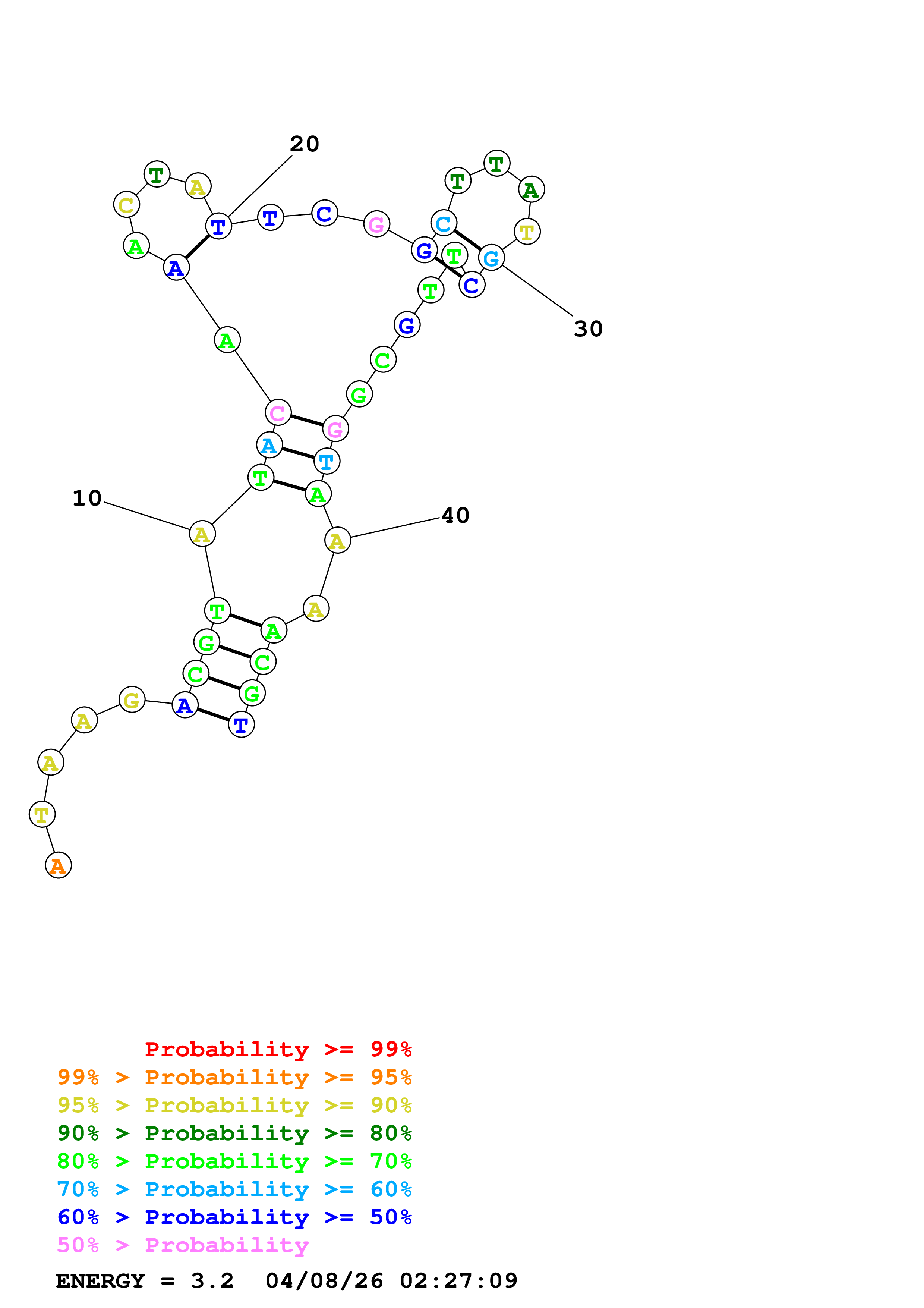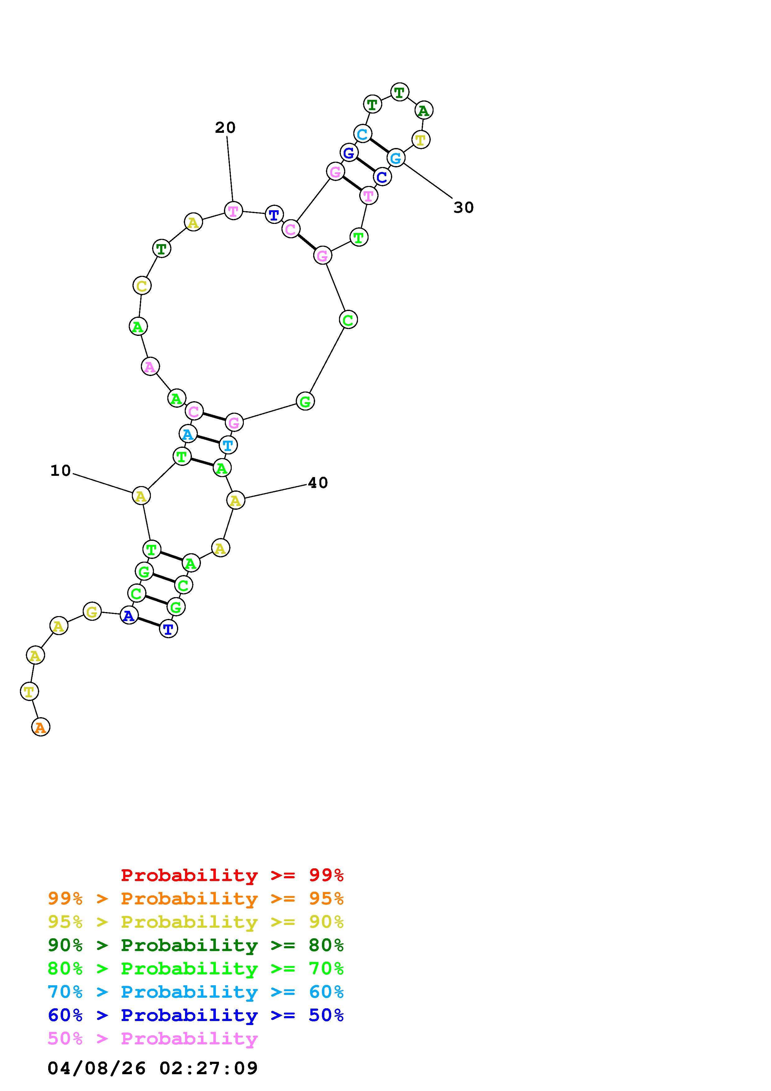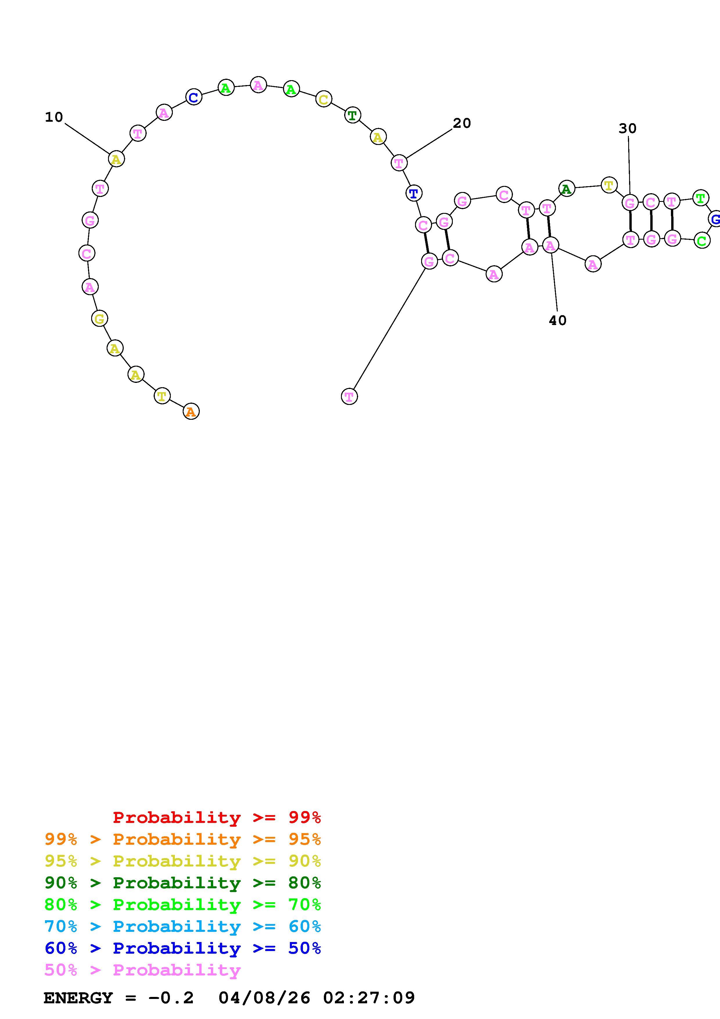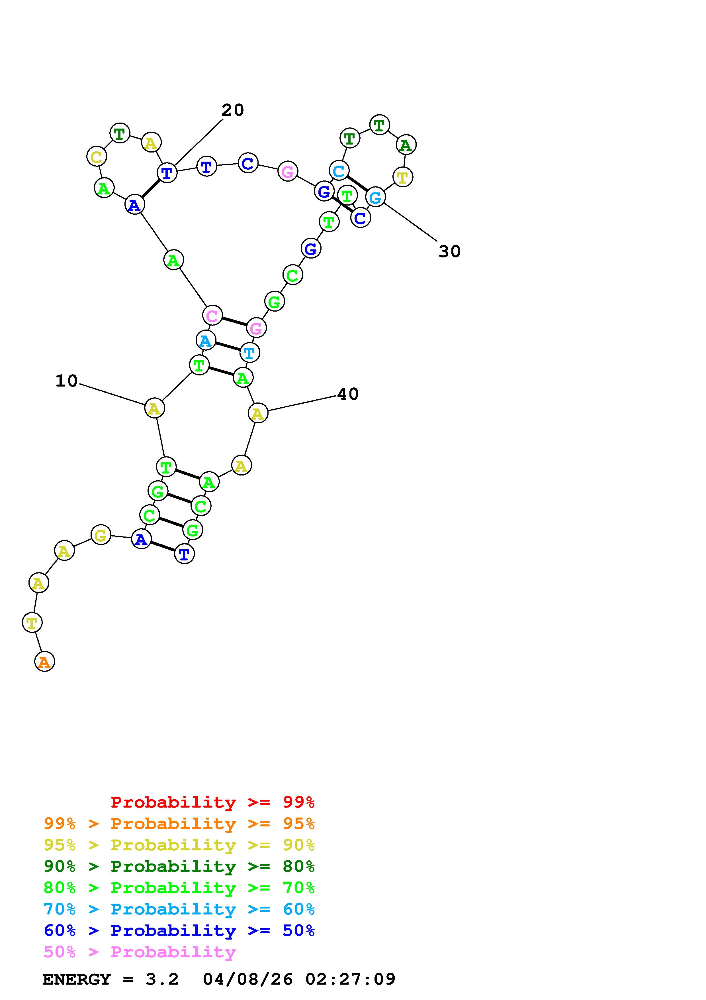Fold Predict1.fasta Fold.ct --DNA --loop 30 --maximum 20 --percent 10 --temperature 338.15 --window 3