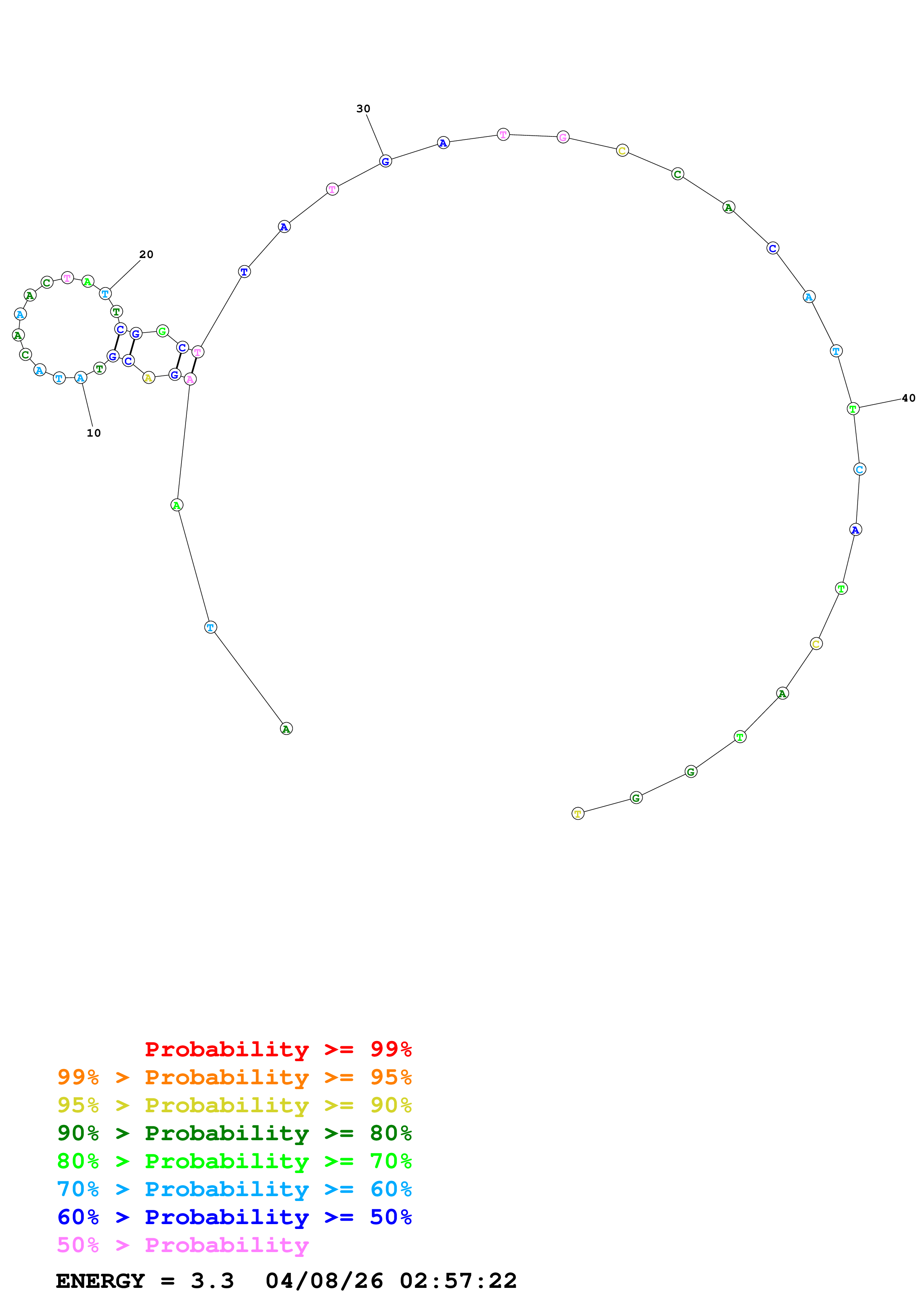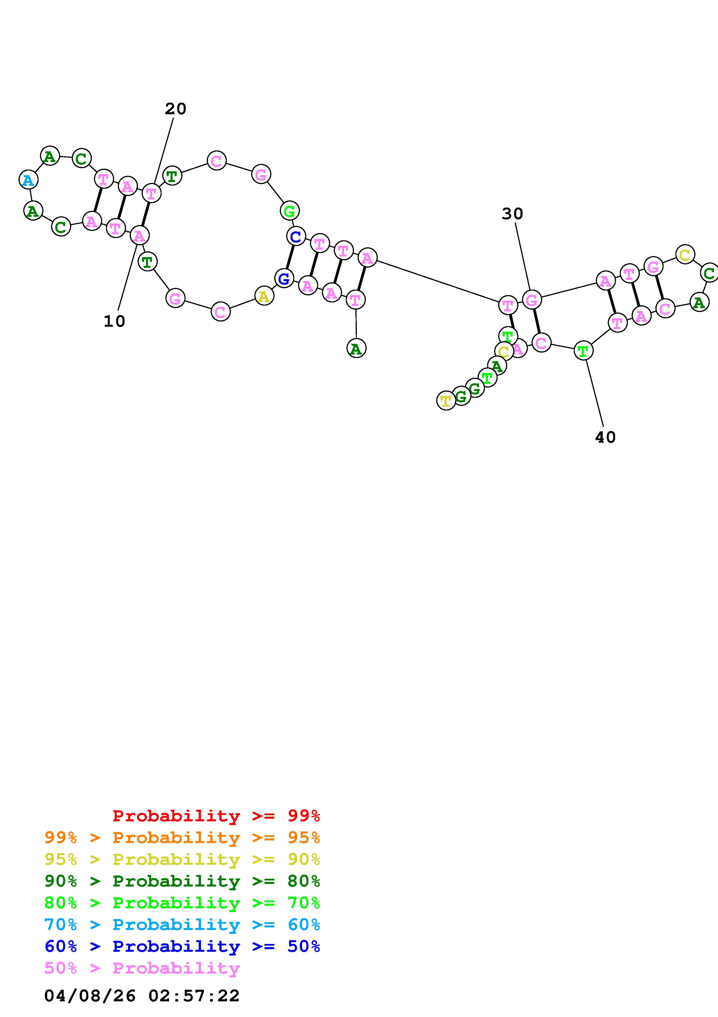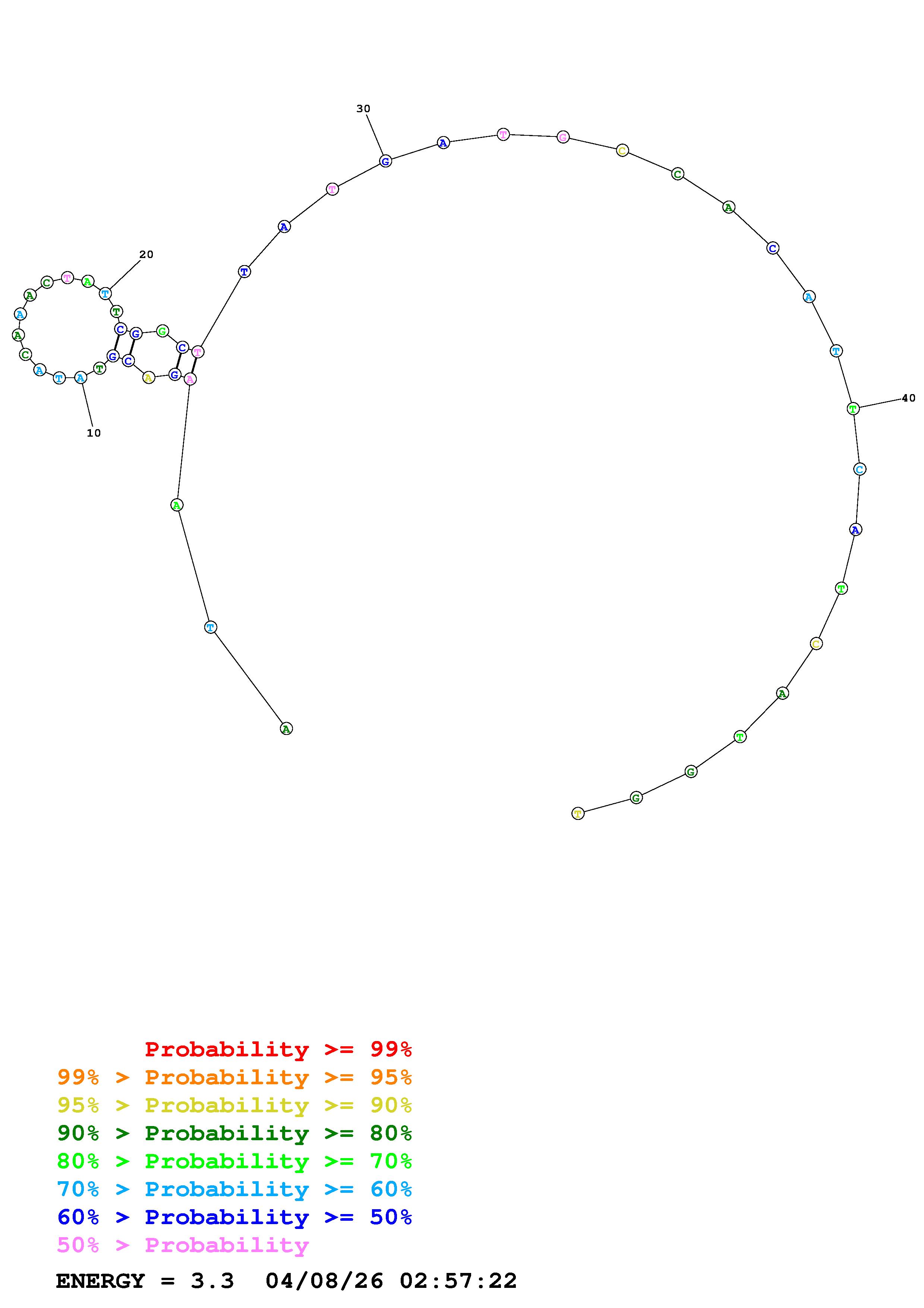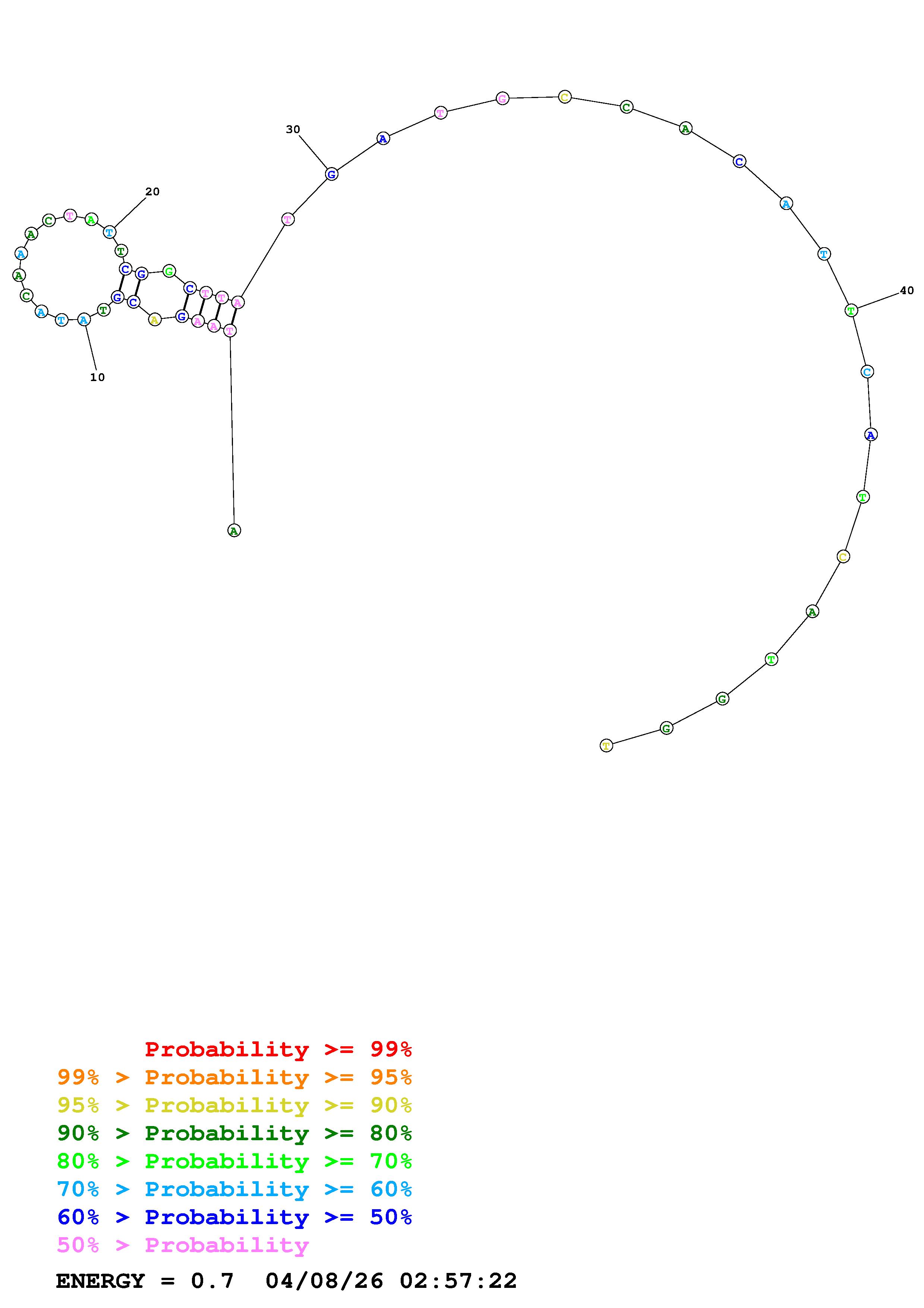 Fold Predict1.fasta Fold.ct --DNA --loop 30 --maximum 20 --percent 10 --temperature 338.15 --window 3