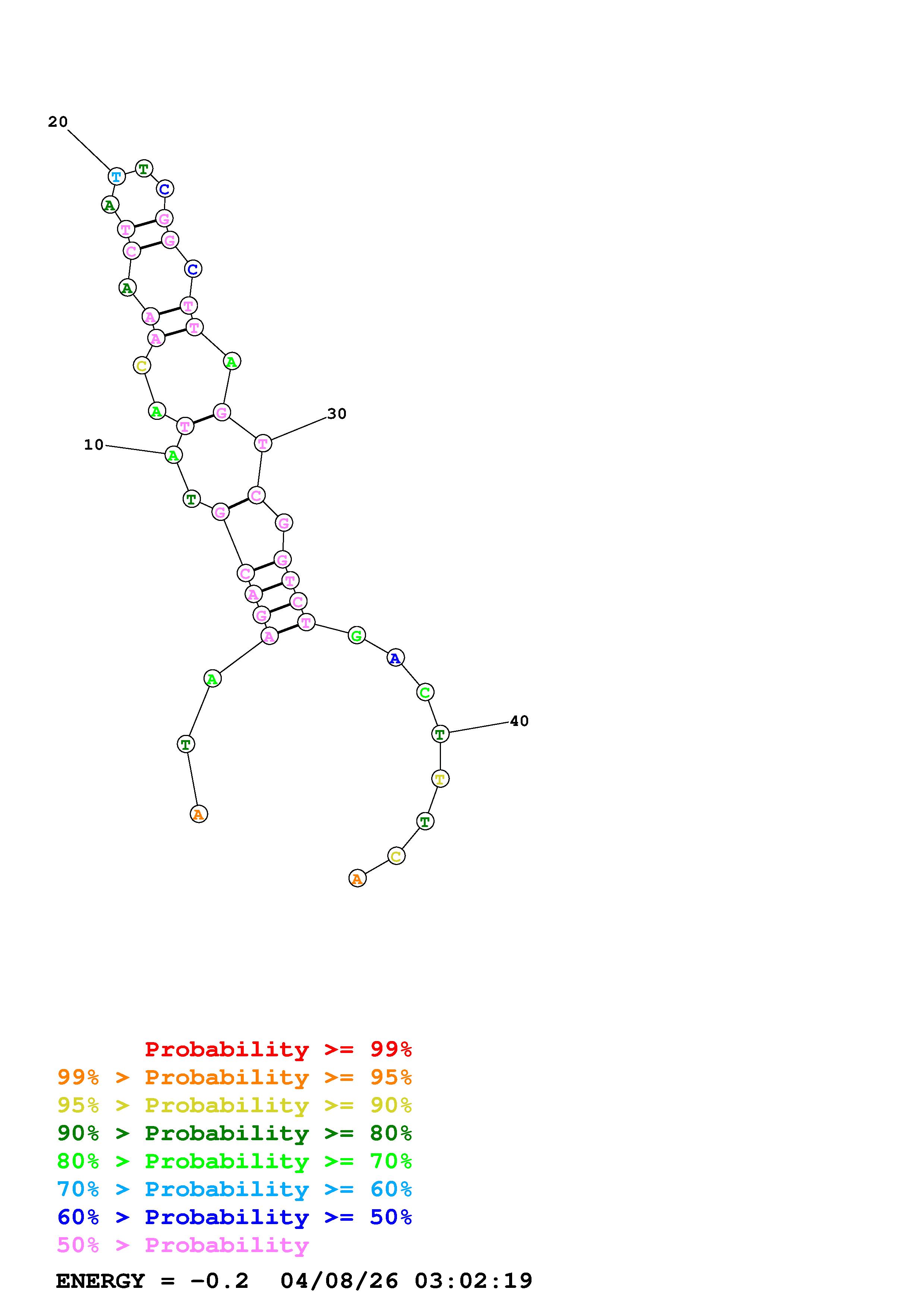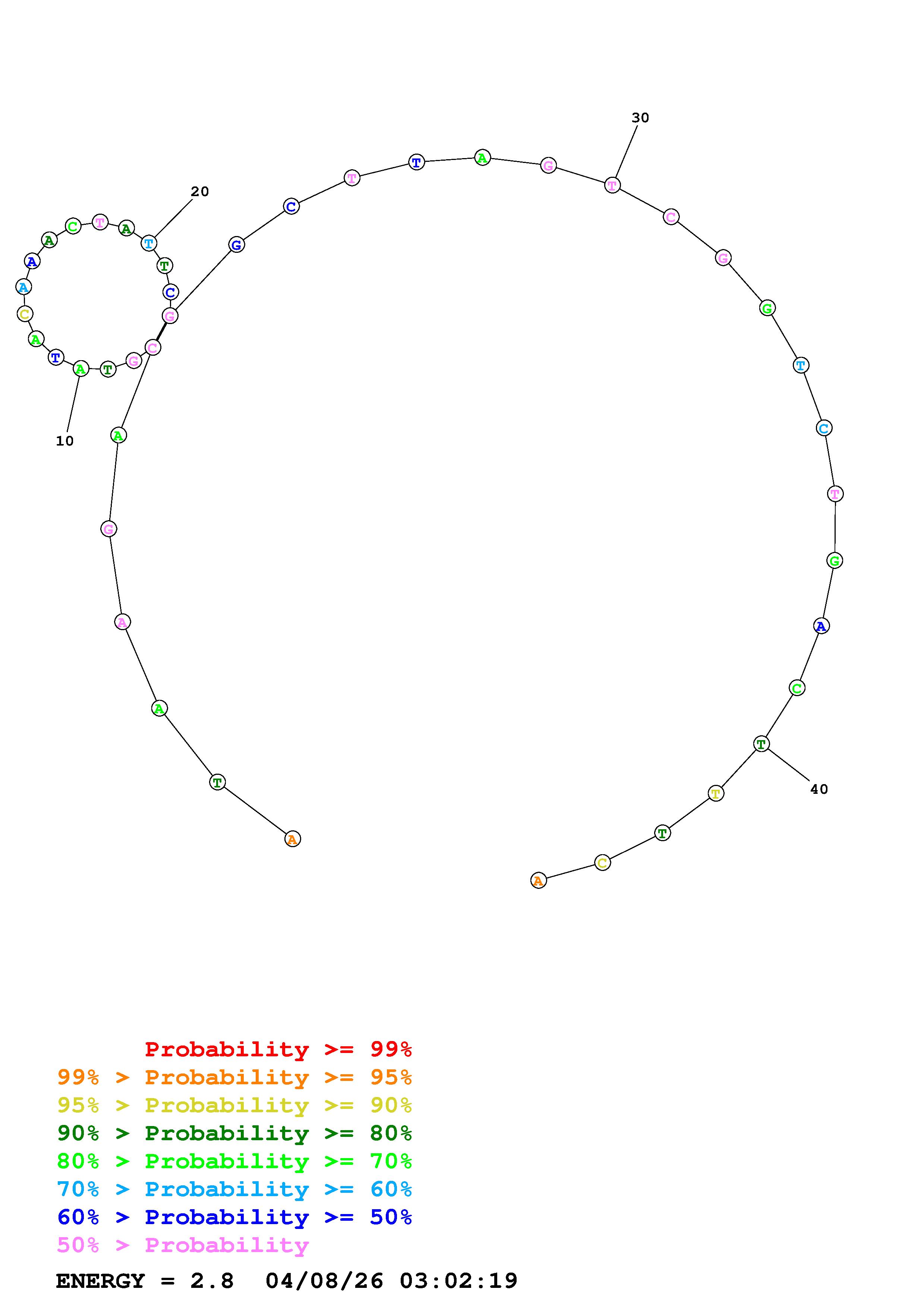 Fold Predict1.fasta Fold.ct --DNA --loop 30 --maximum 20 --percent 10 --temperature 338.15 --window 3