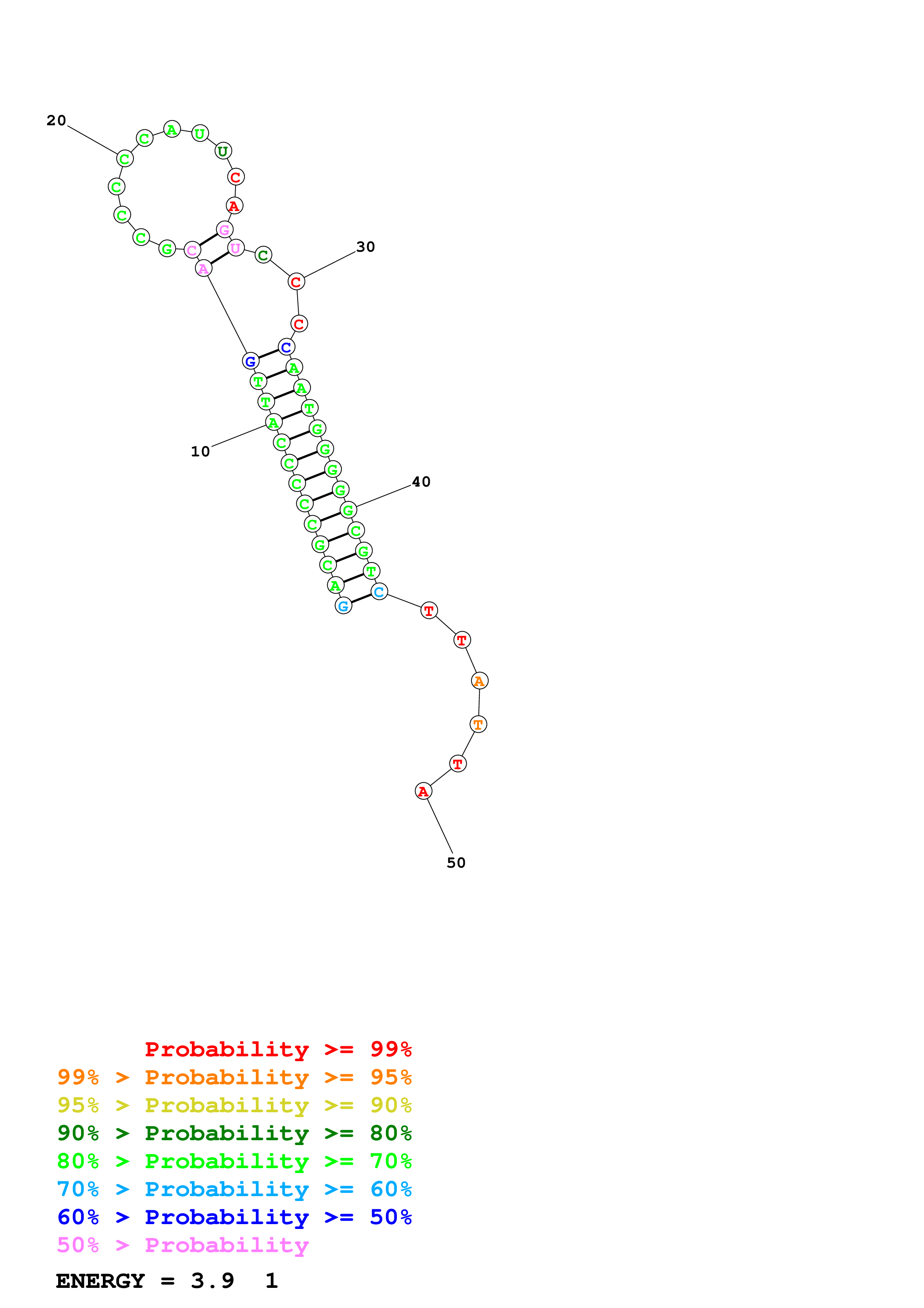 Fold Predict1.fasta Fold.ct --DNA --loop 30 --maximum 20 --percent 10 --temperature 310.15 --window 3