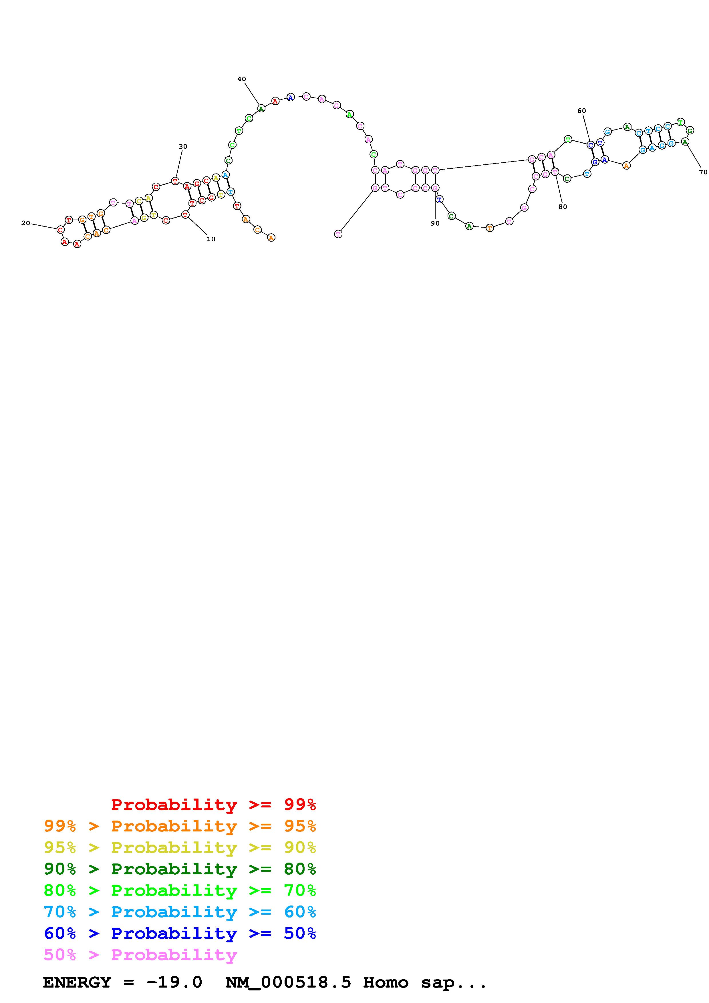 Fold 2sequenceHBB Fold.ct --loop 30 --maximum 20 --percent 10 --temperature 310.15 --window 3