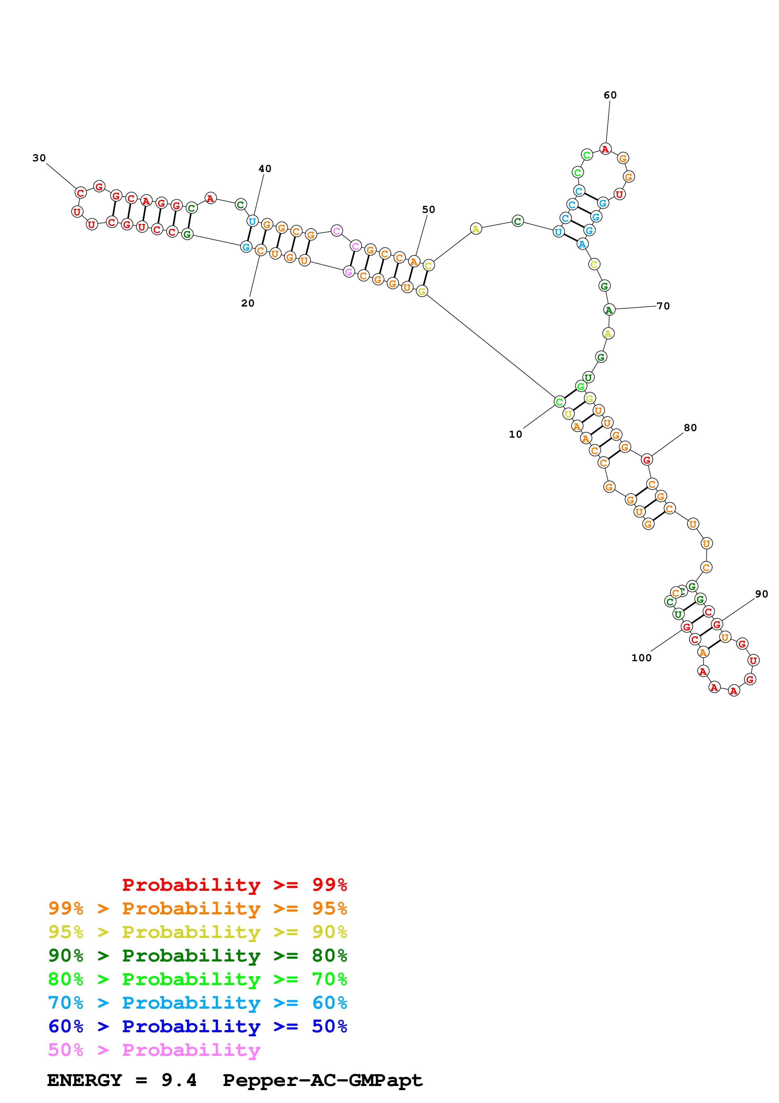 (Generate a structure or structures composed of highly probable base pairs. This is an alternative method for structure prediction that may have higher fidelity in structure prediction.)