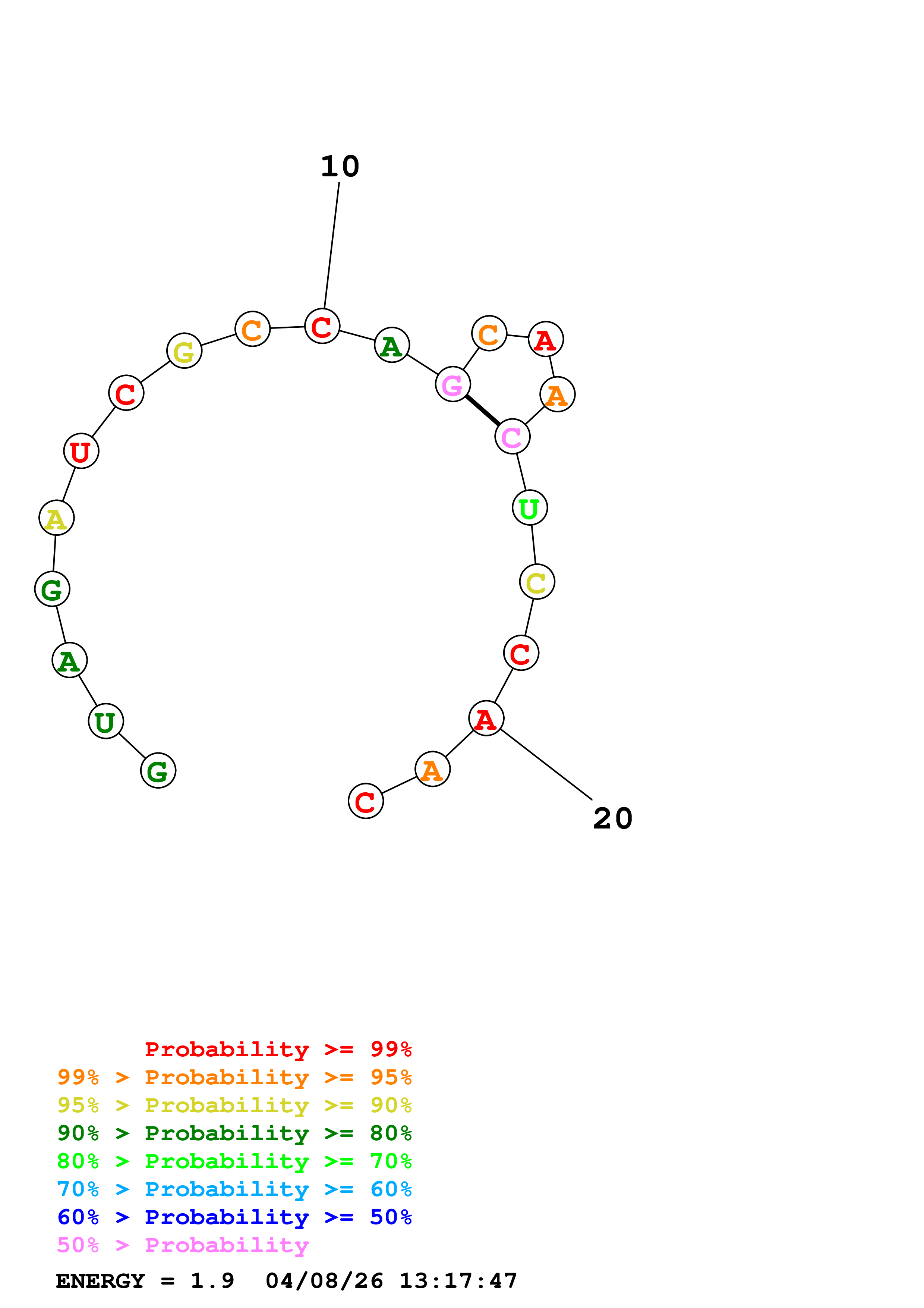 (Generate a structure or structures composed of highly probable base pairs. This is an alternative method for structure prediction that may have higher fidelity in structure prediction.)
