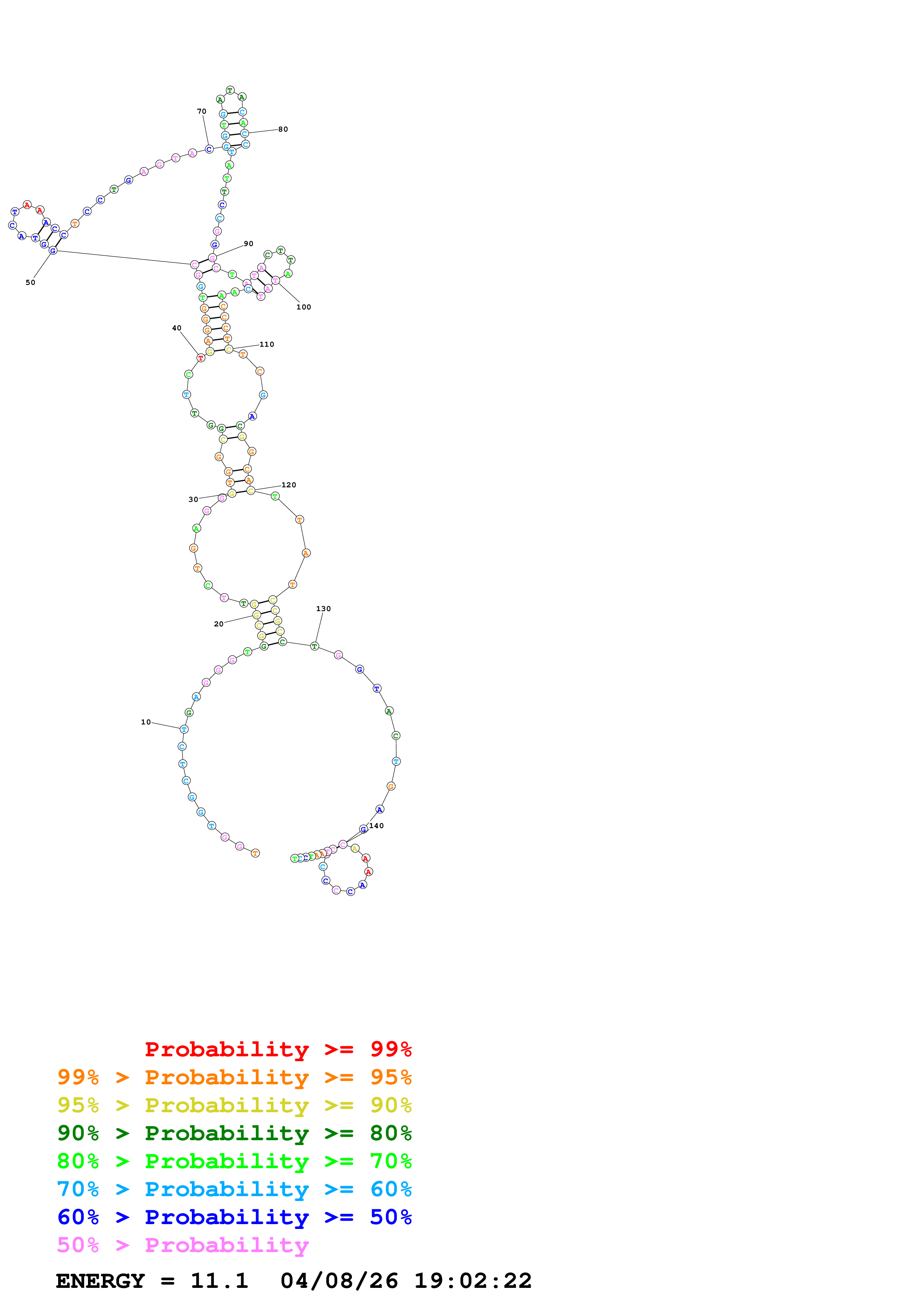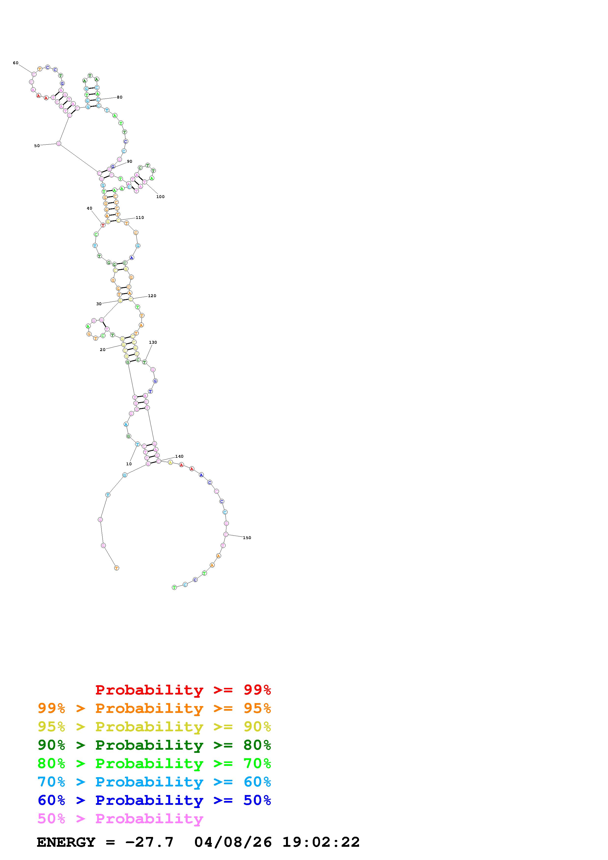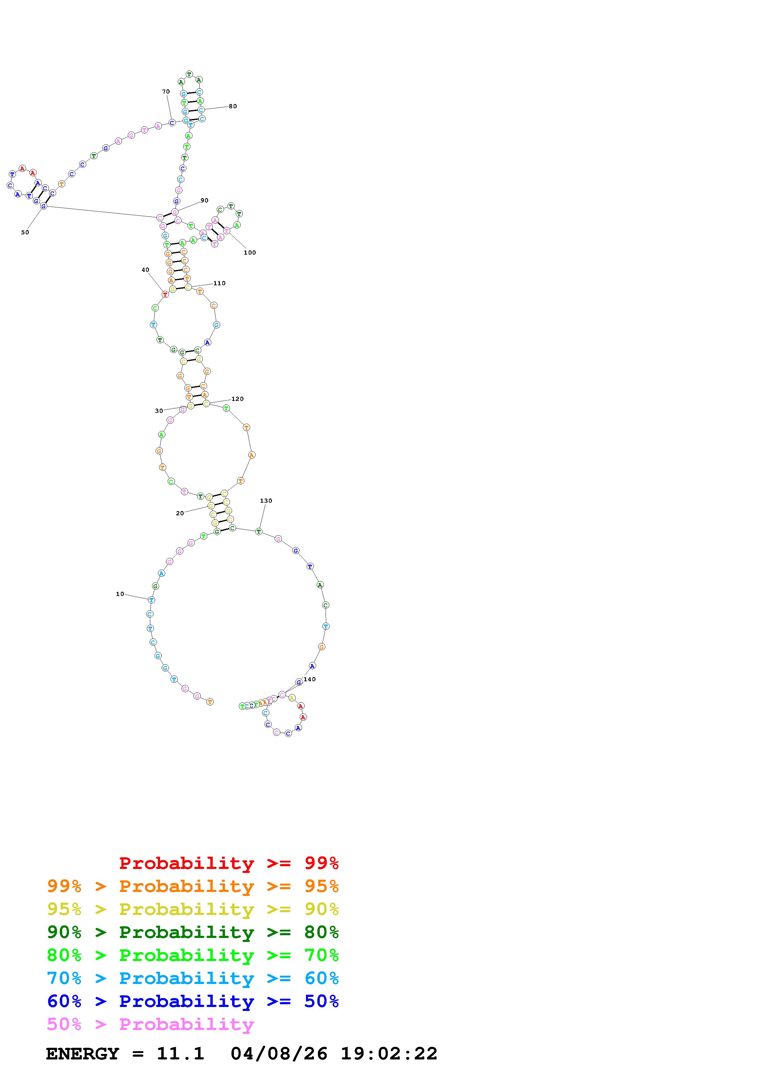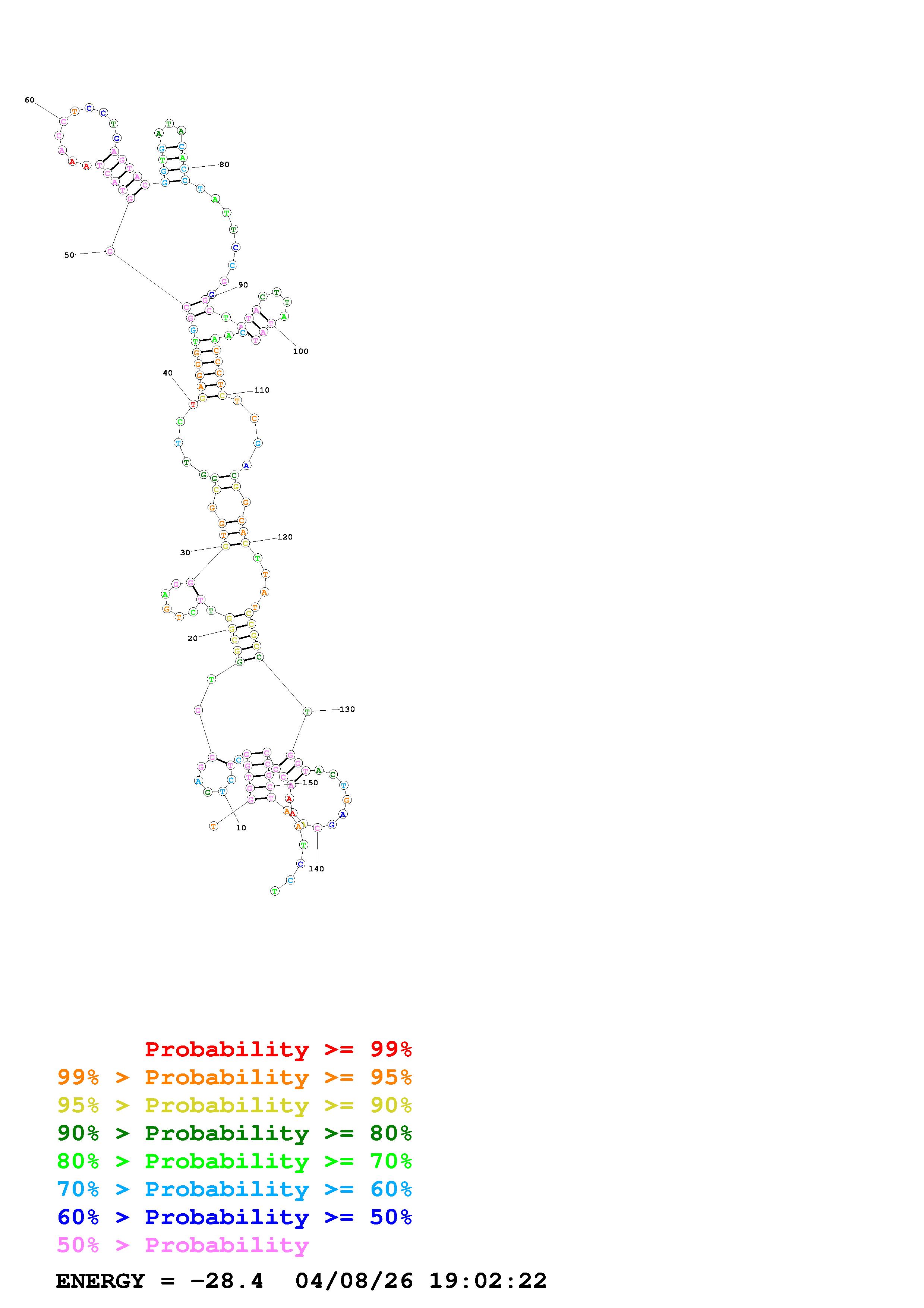 Fold Predict1.fasta Fold.ct --DNA --loop 30 --maximum 20 --percent 10 --temperature 300 --window 3