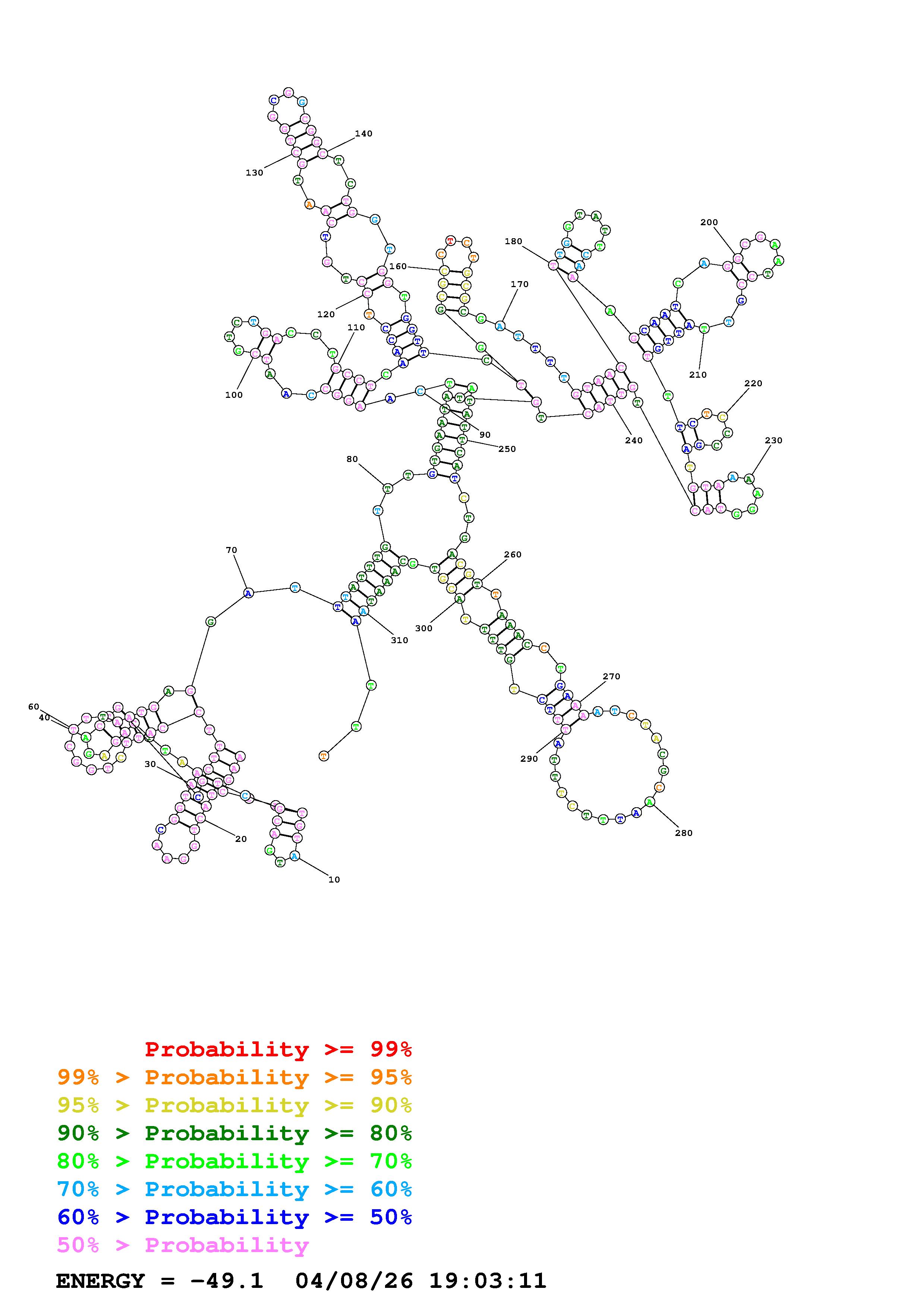Fold Predict1.fasta Fold.ct --DNA --loop 30 --maximum 20 --percent 10 --temperature 300 --window 3